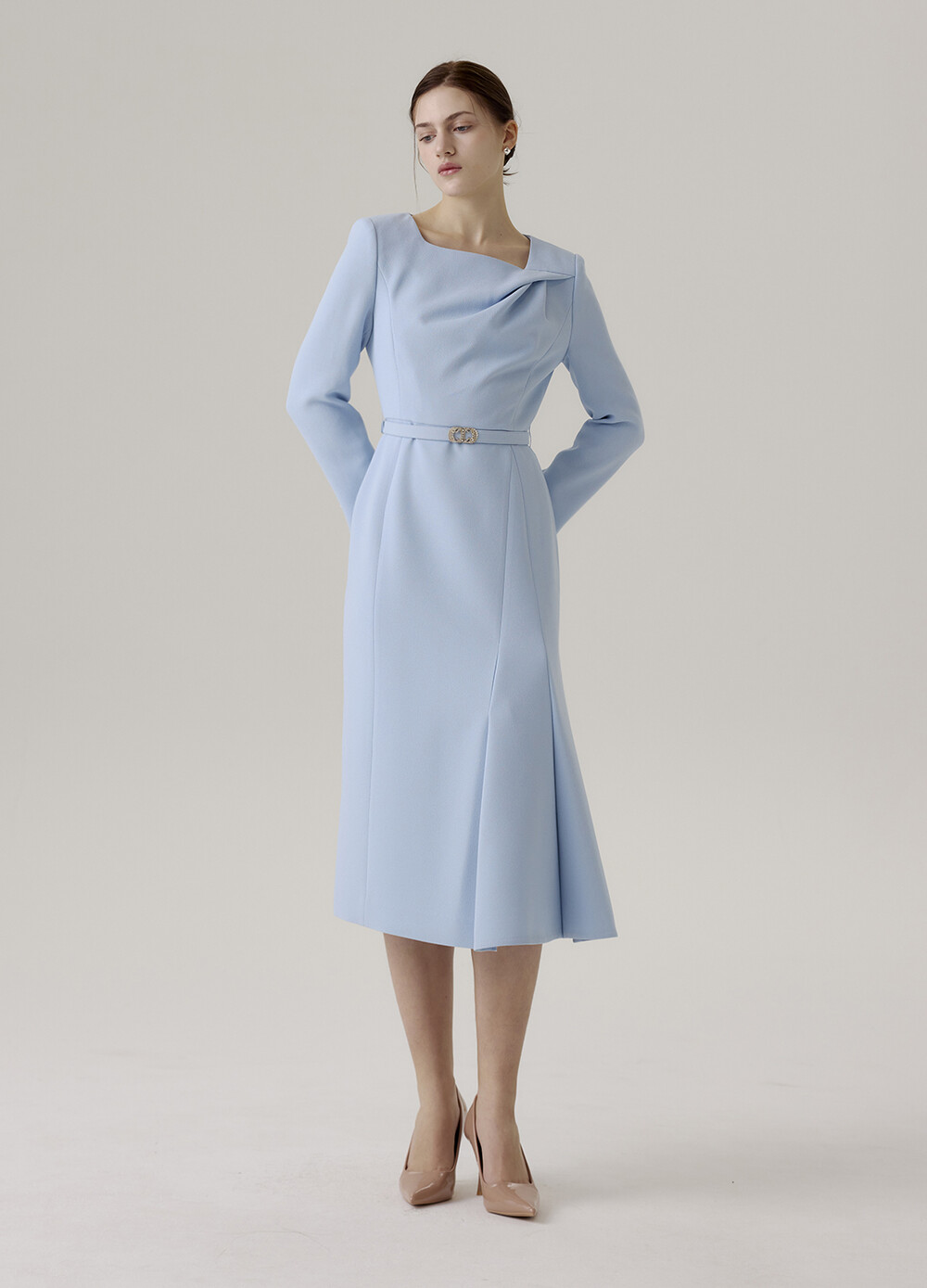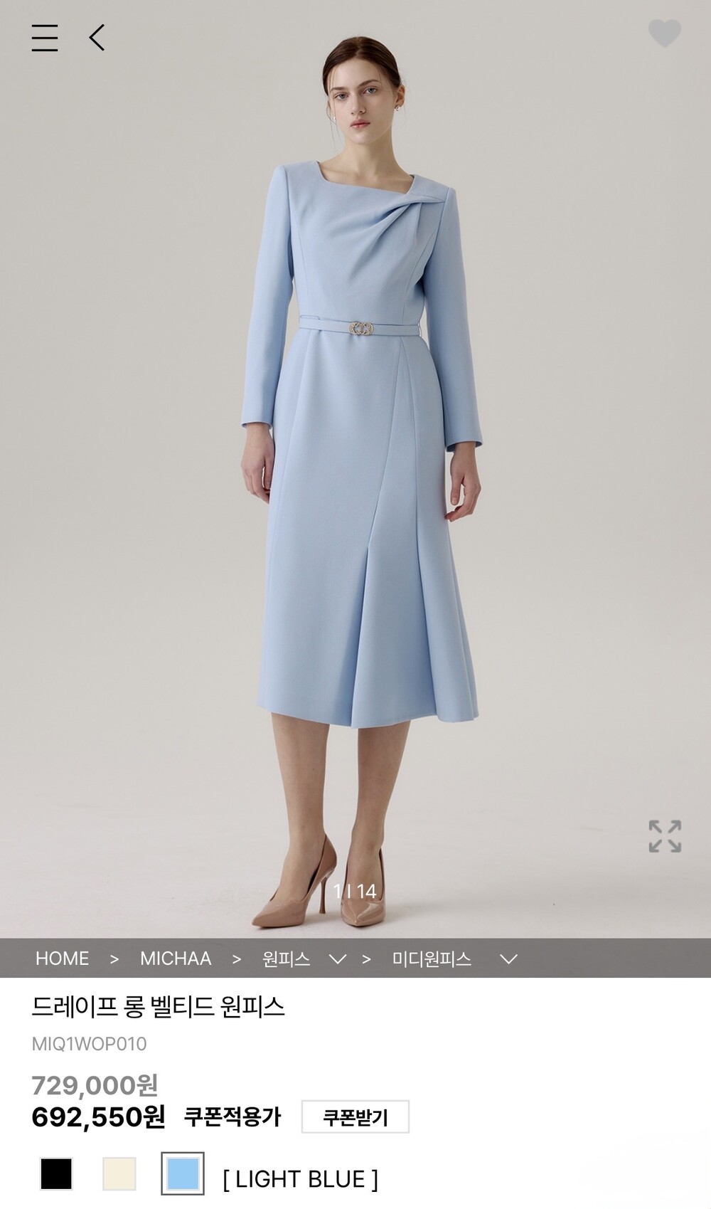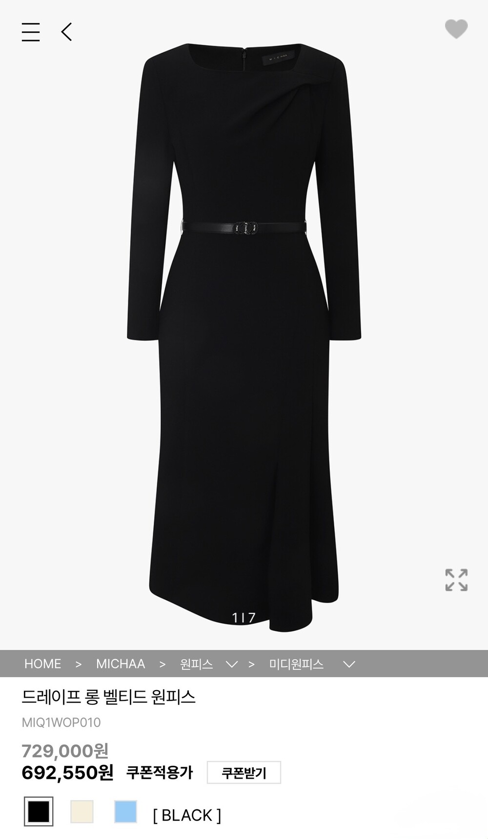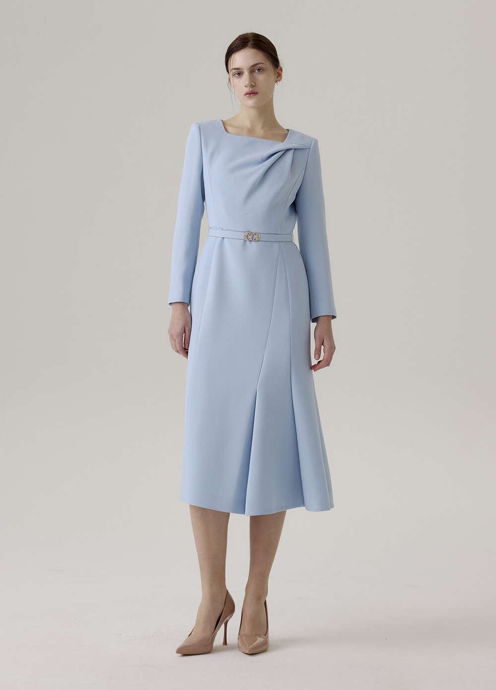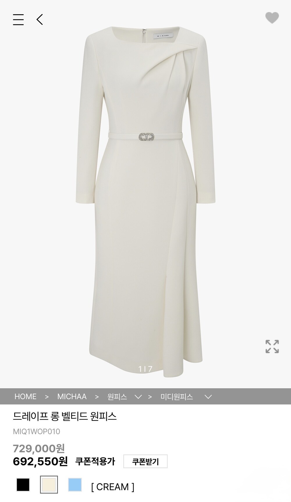 드레이프 디테일과 벨트 포인트가
