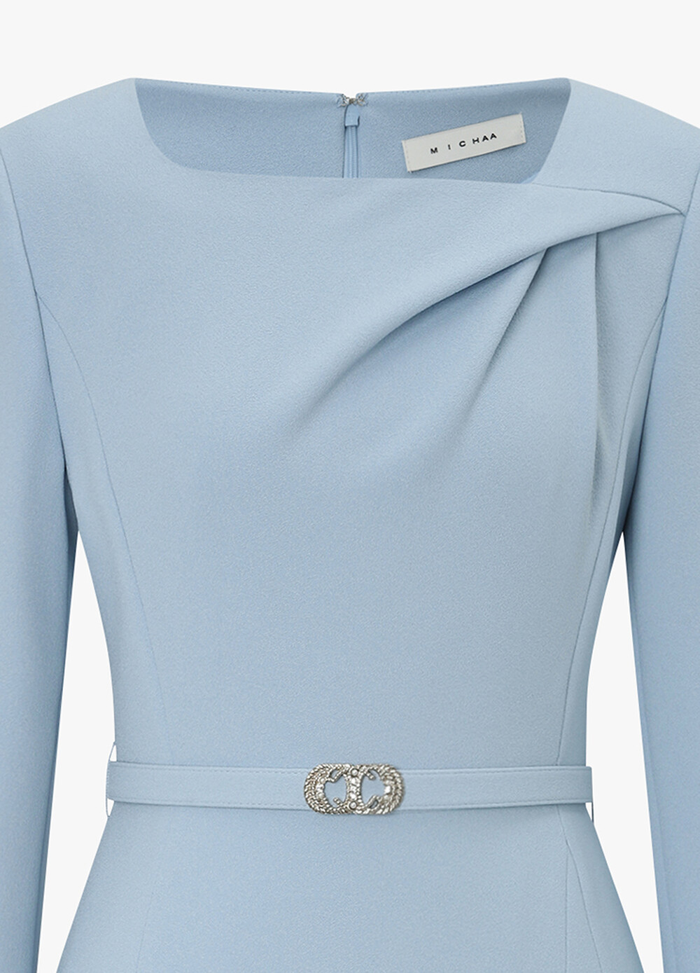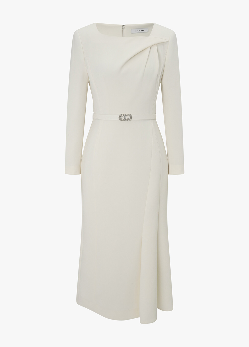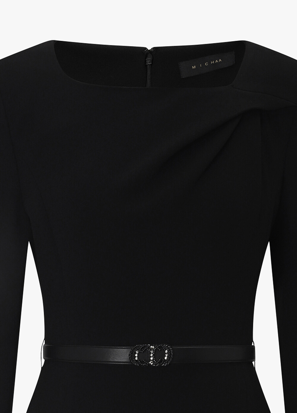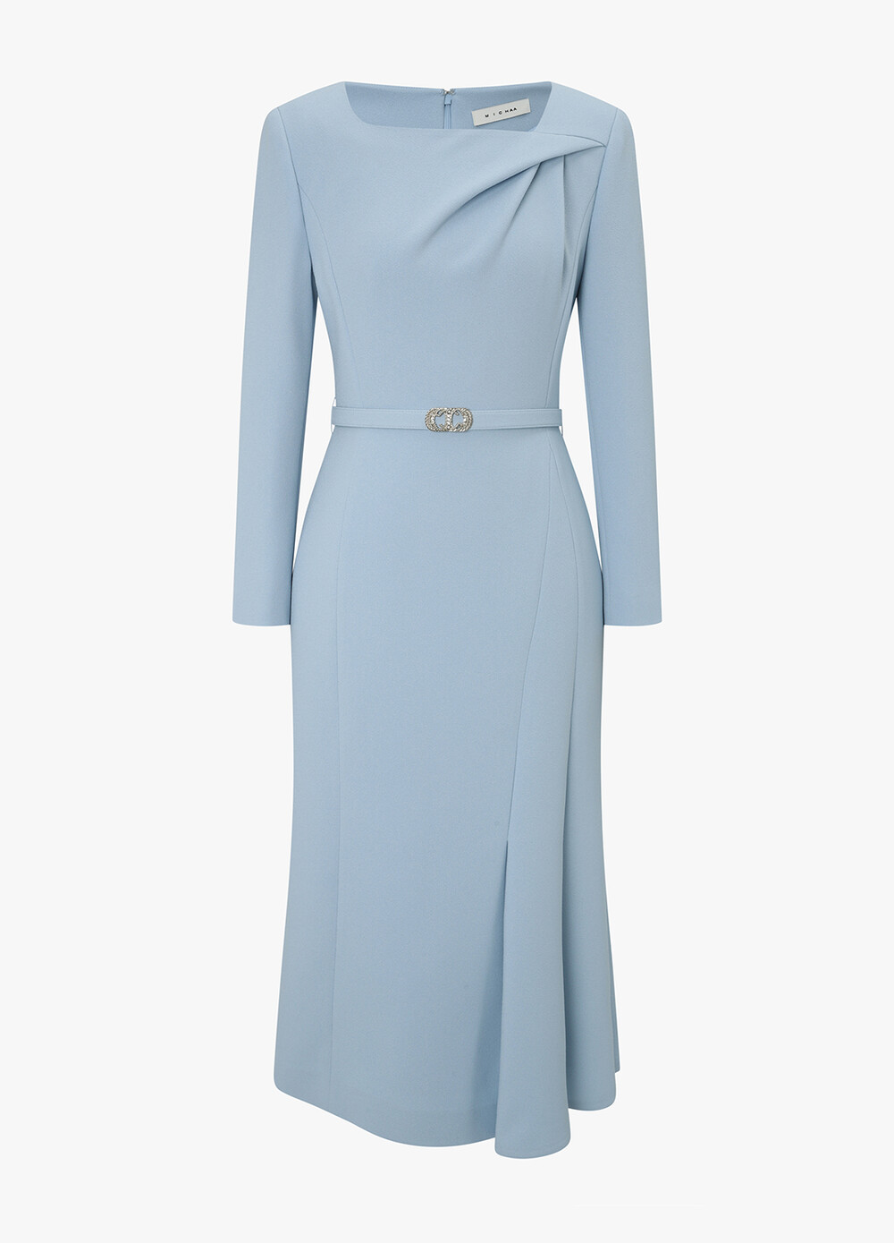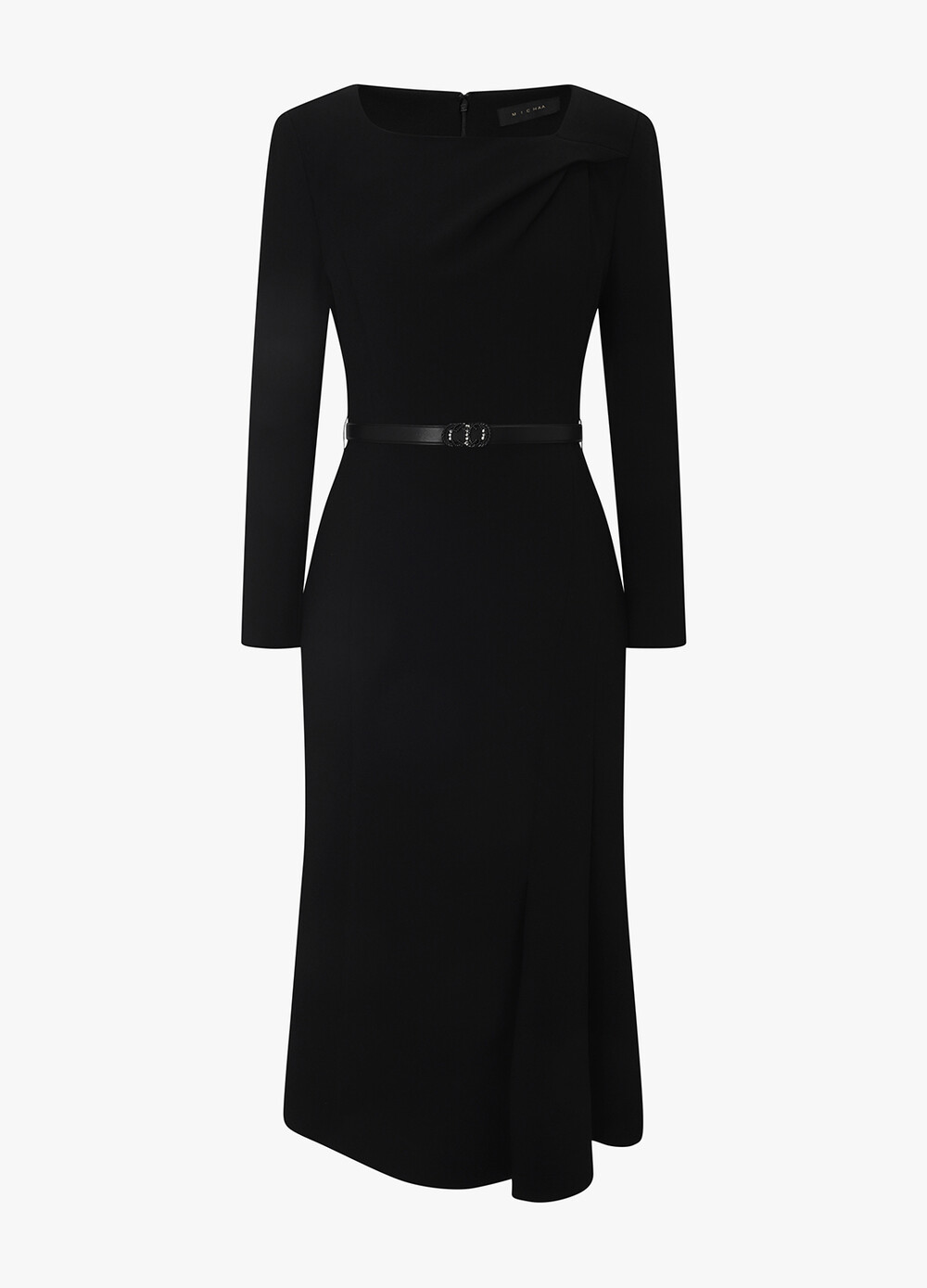 MICHAA. Drape Long Belted Dress