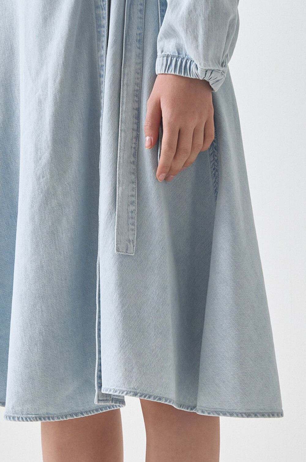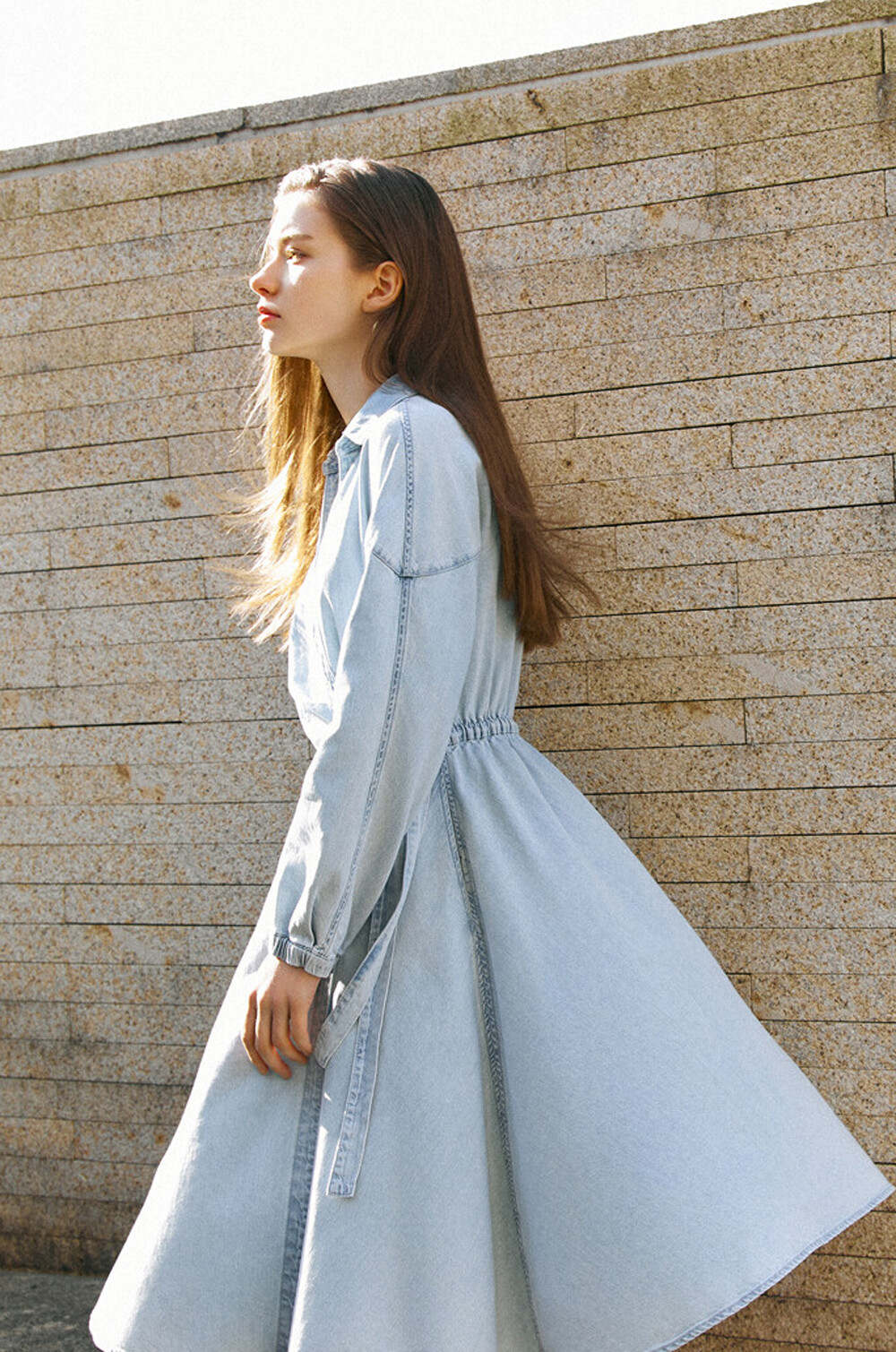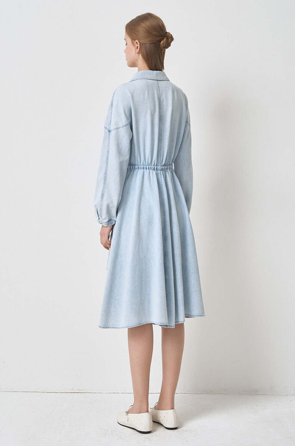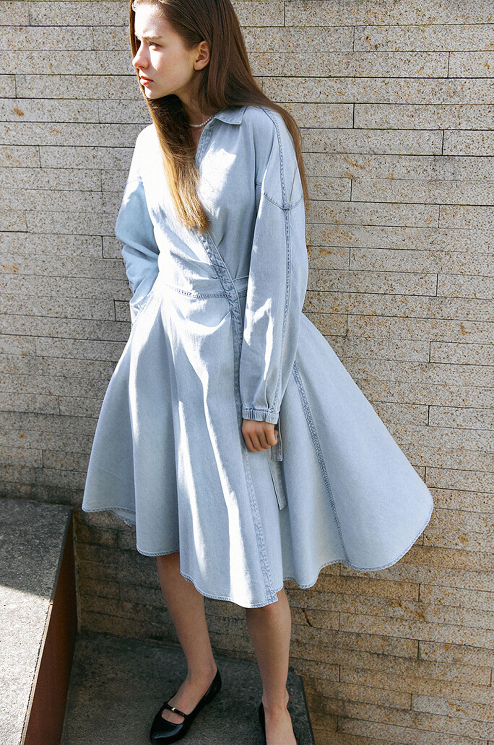플레어 실루엣의 데님 드레스입니다.