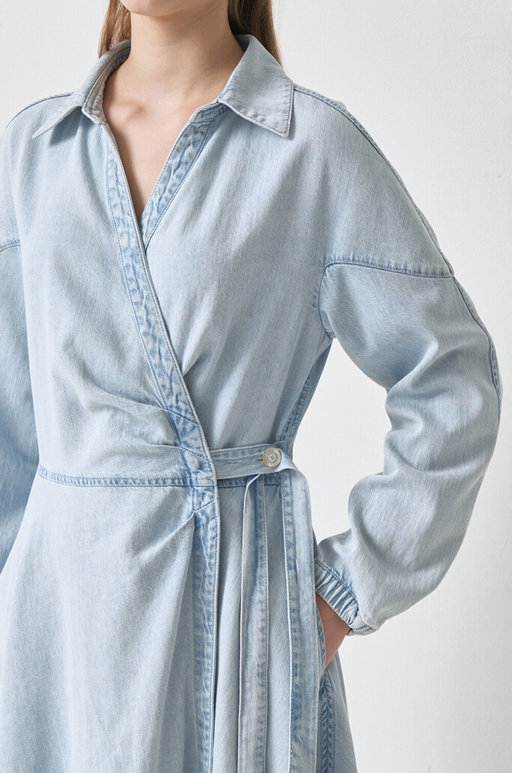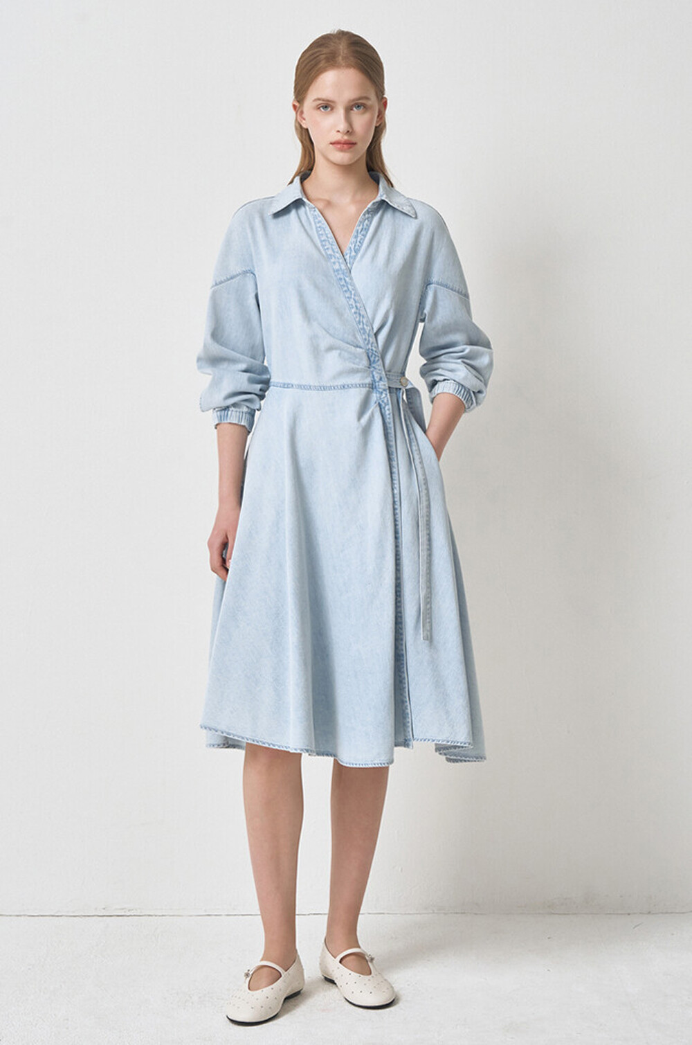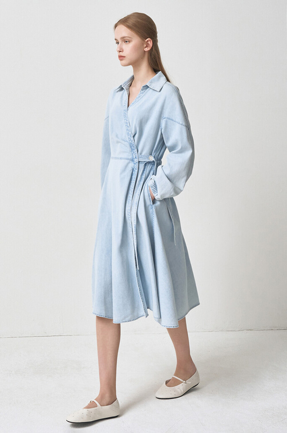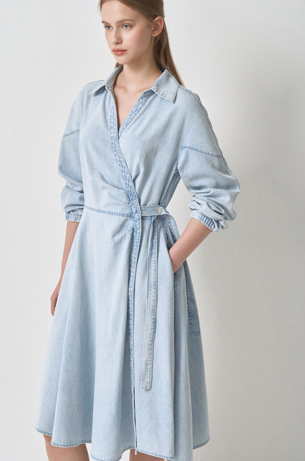 마인 데님 랩 플레어 드레스
