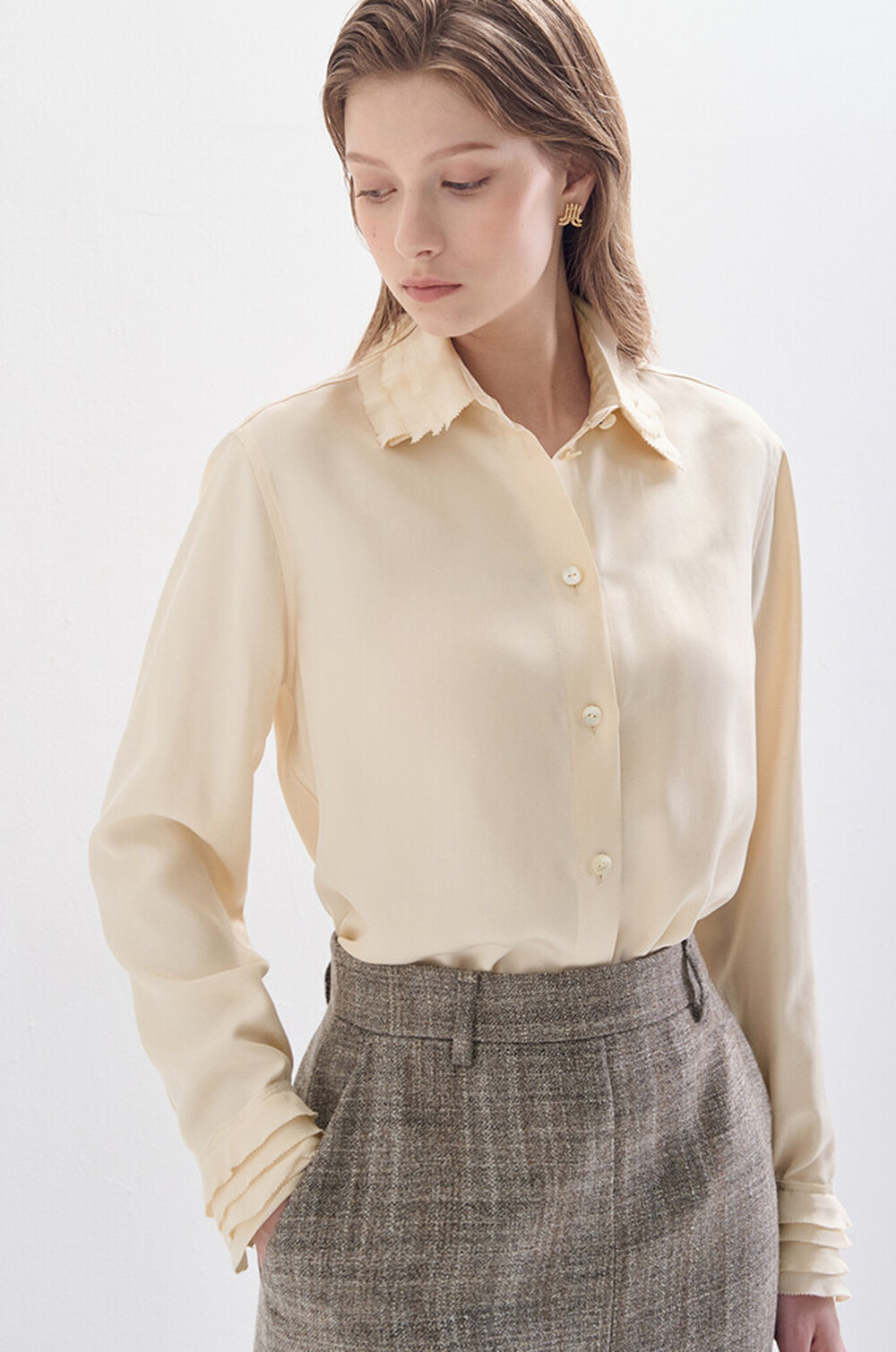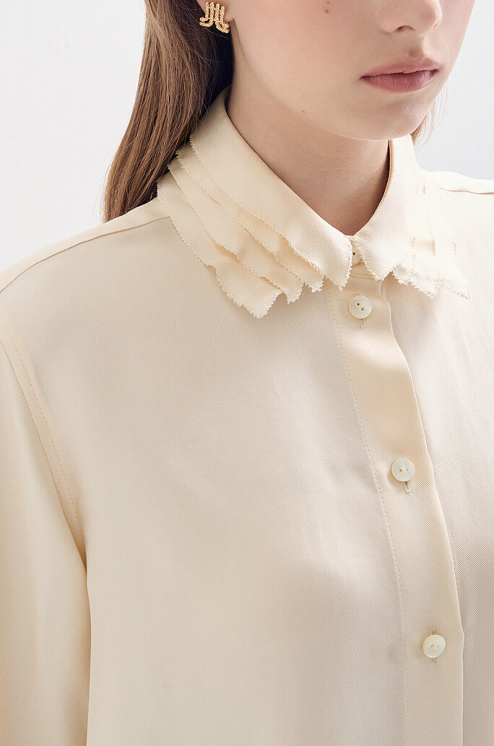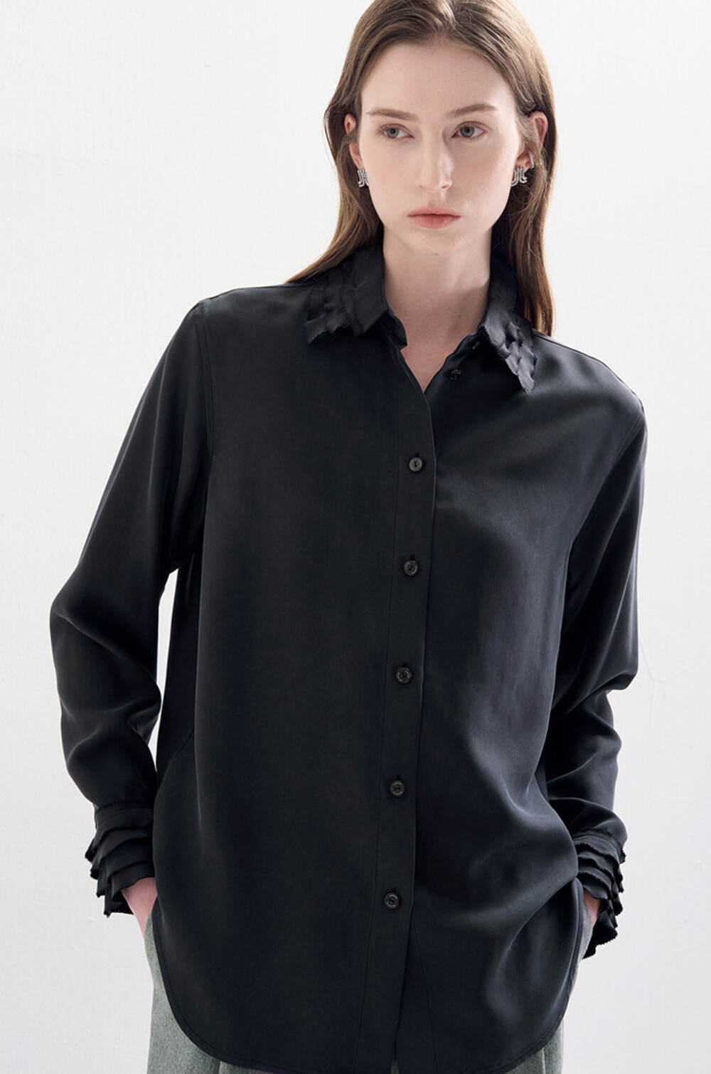 랑방컬렉션 실크 프릴 패널 셔츠