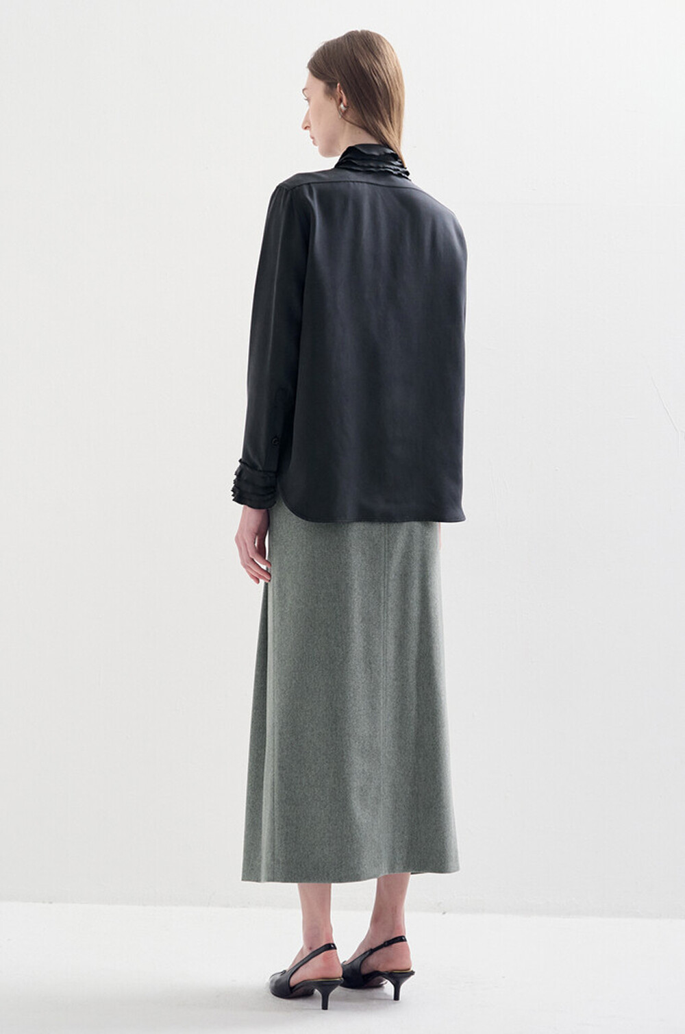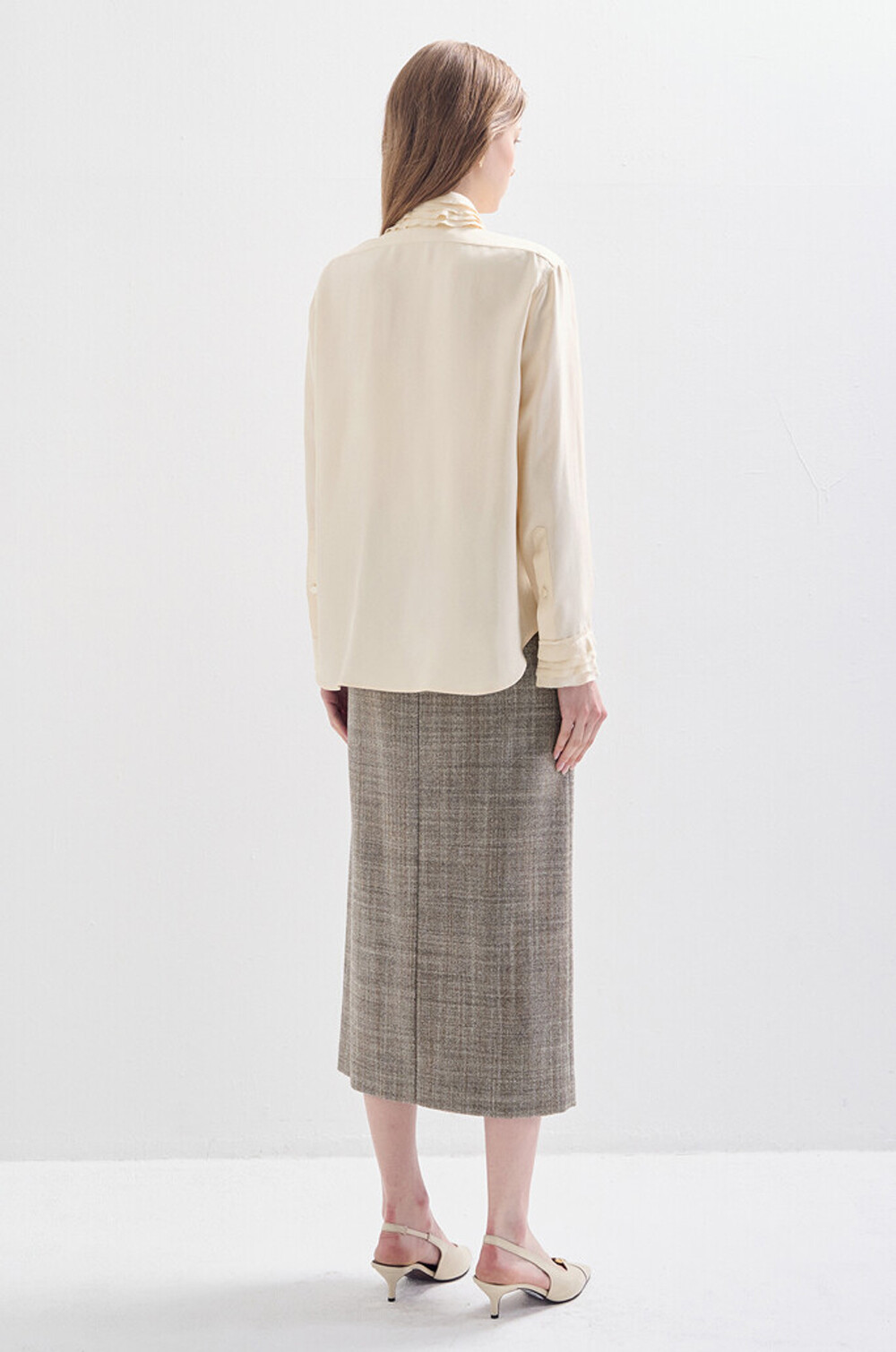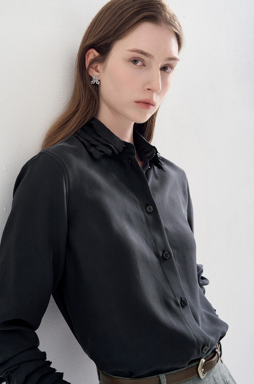 랑방컬렉션 실크 프릴 패널 셔츠