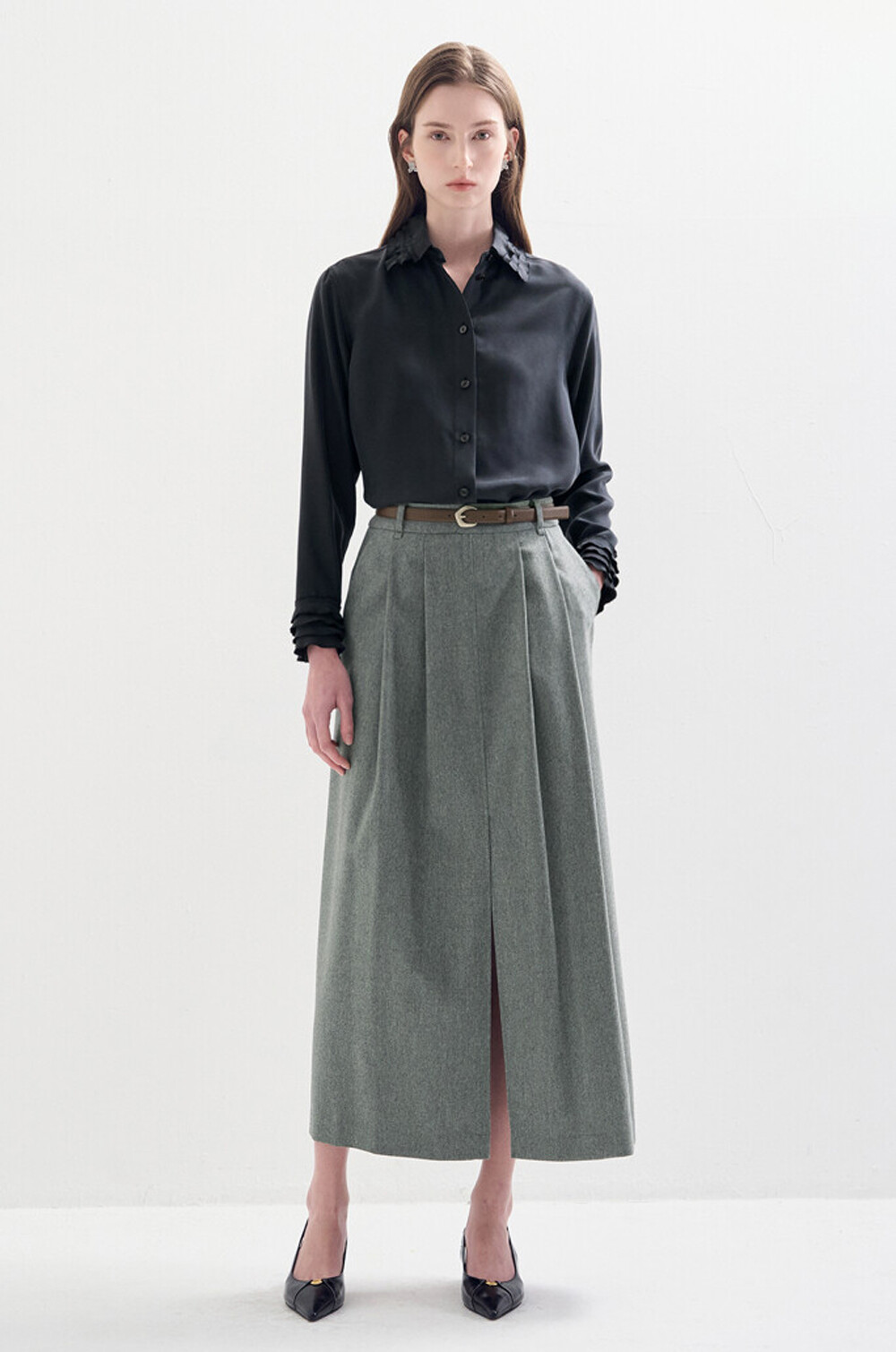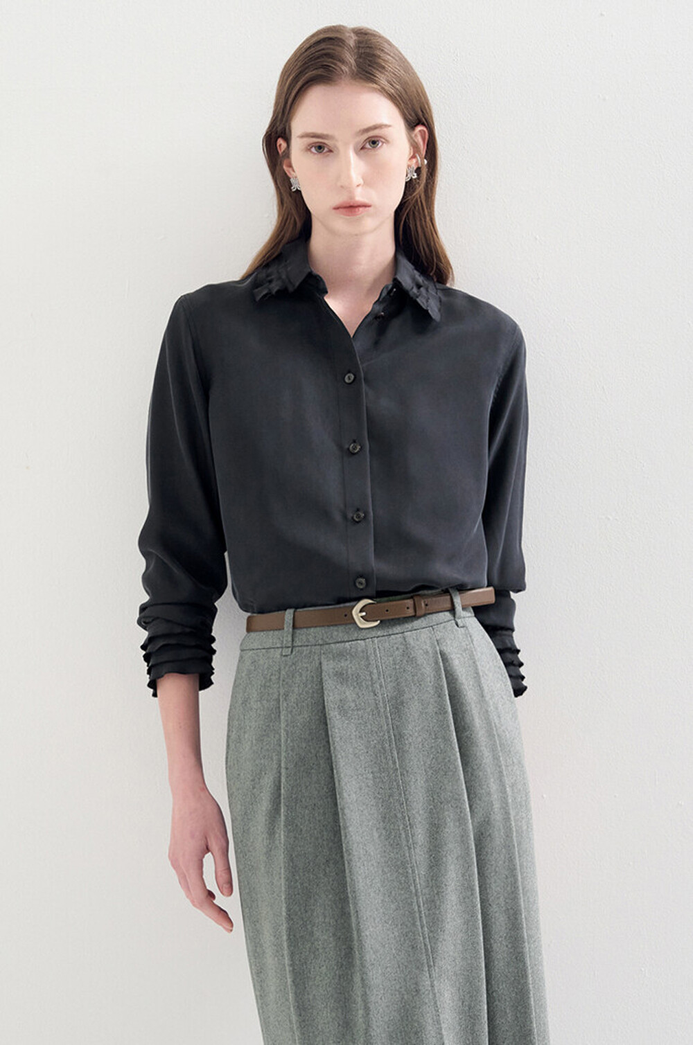 은은한 광택의 실크 셔츠로,