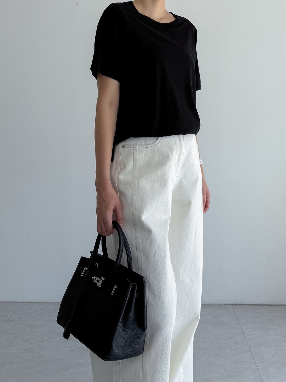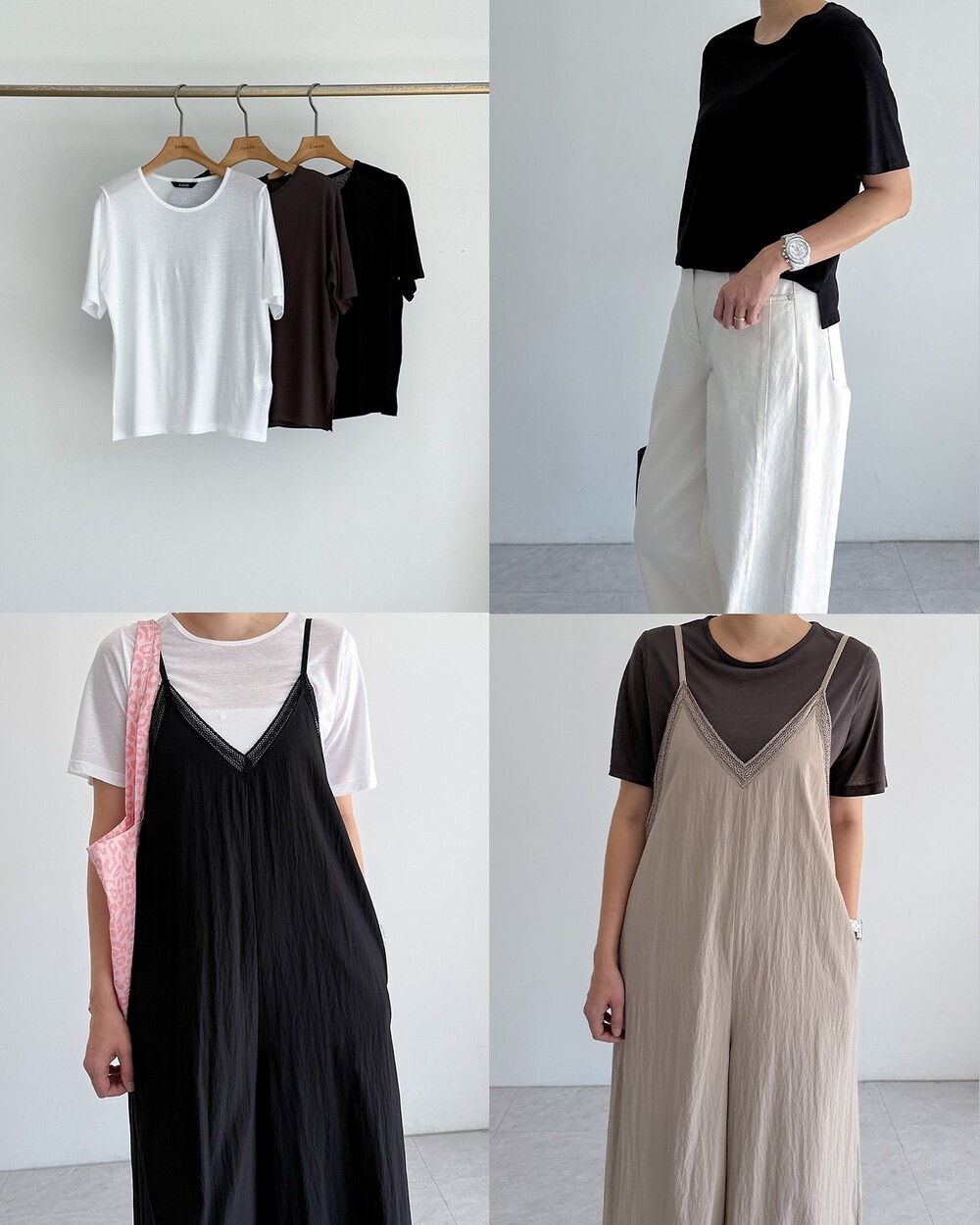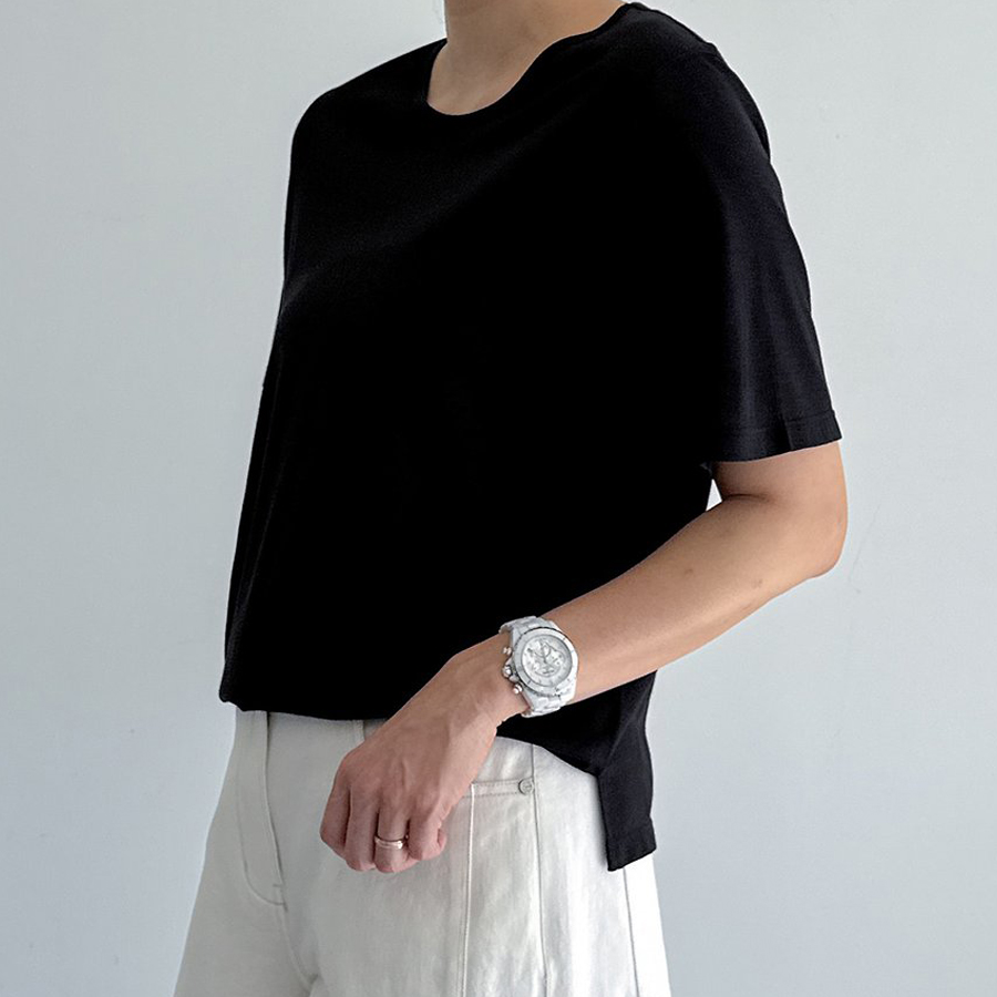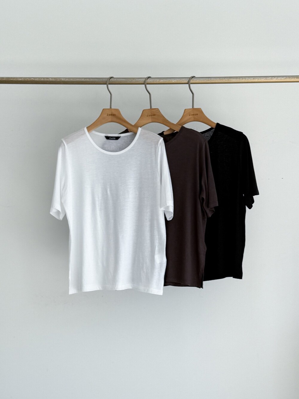 제이코코. 텐셀 라운드넥 하프 슬리브 티셔츠