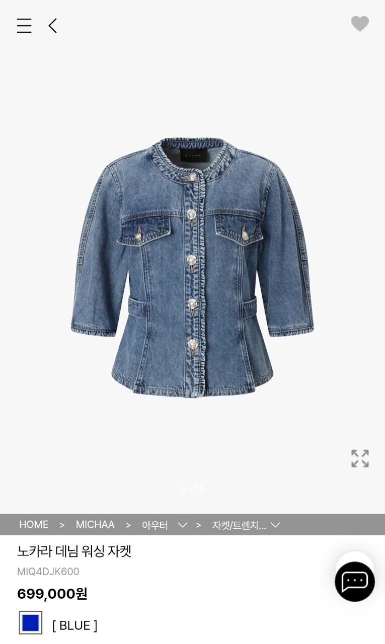 미샤 노카라 데님 워싱 자켓