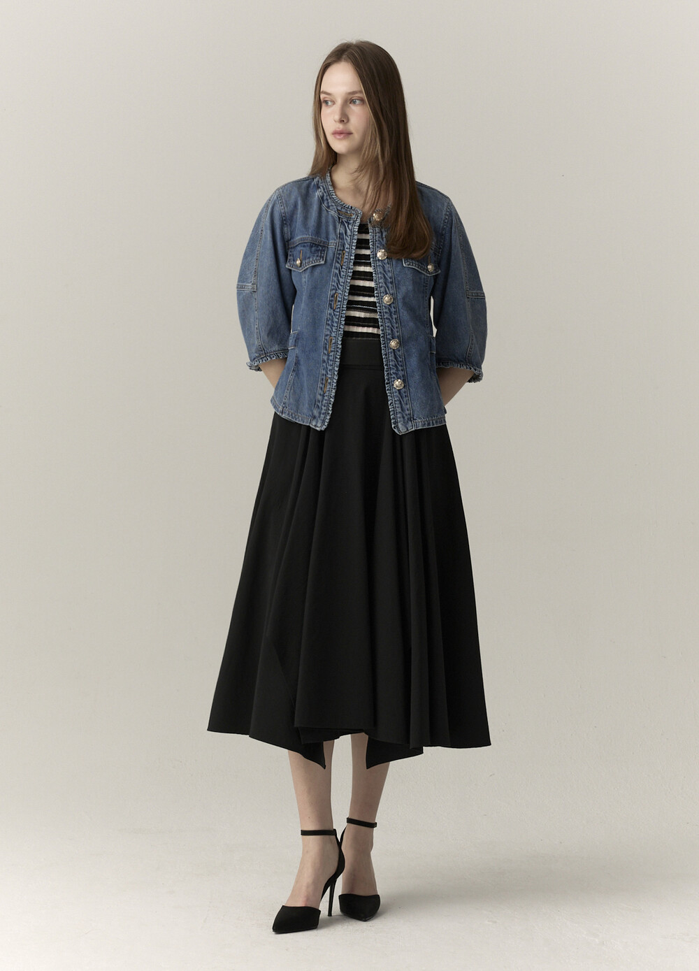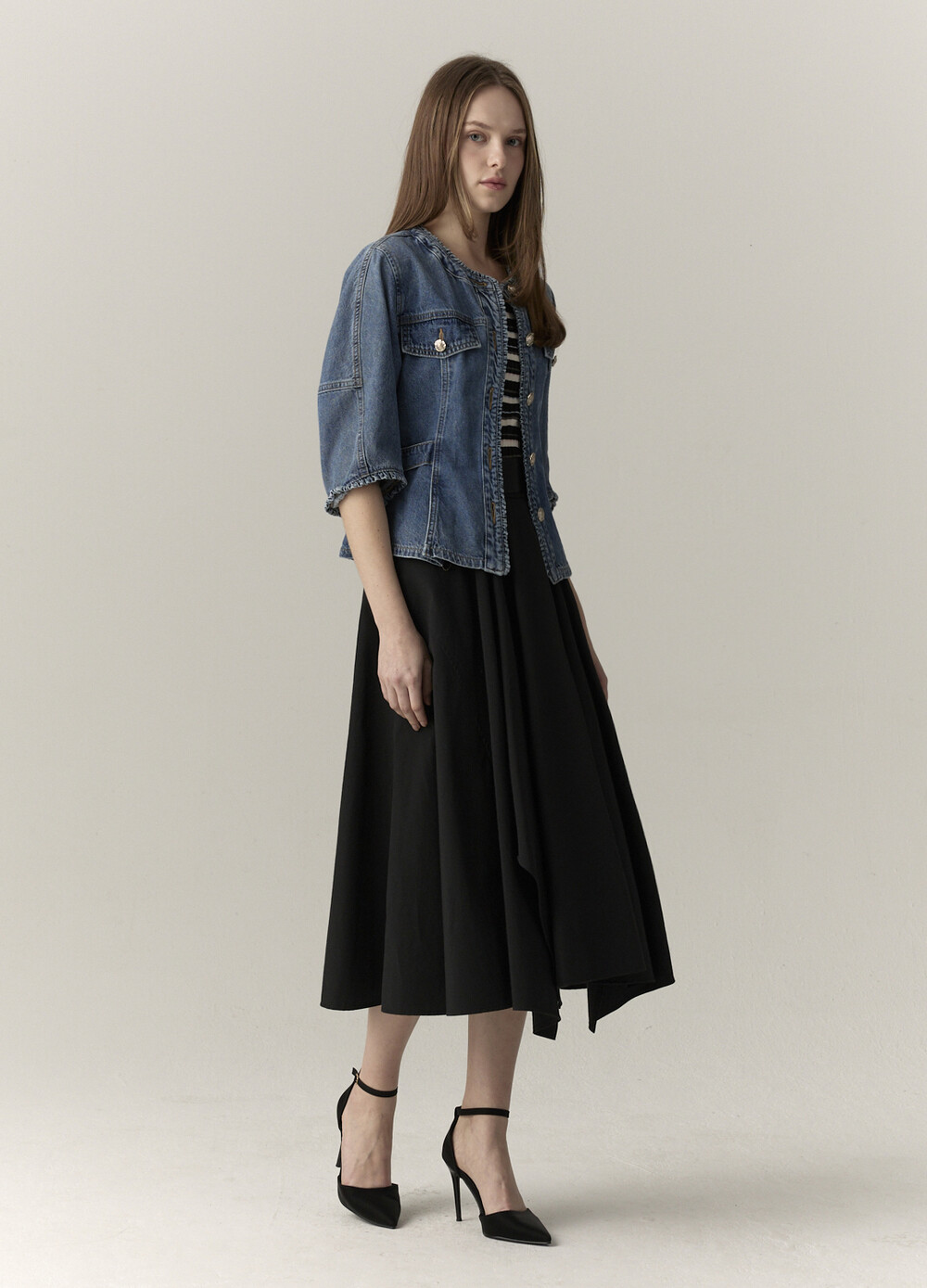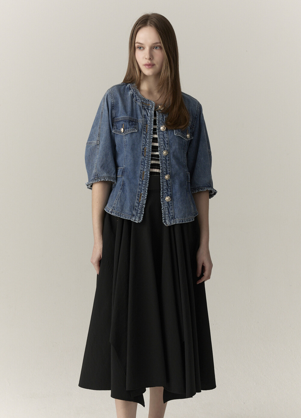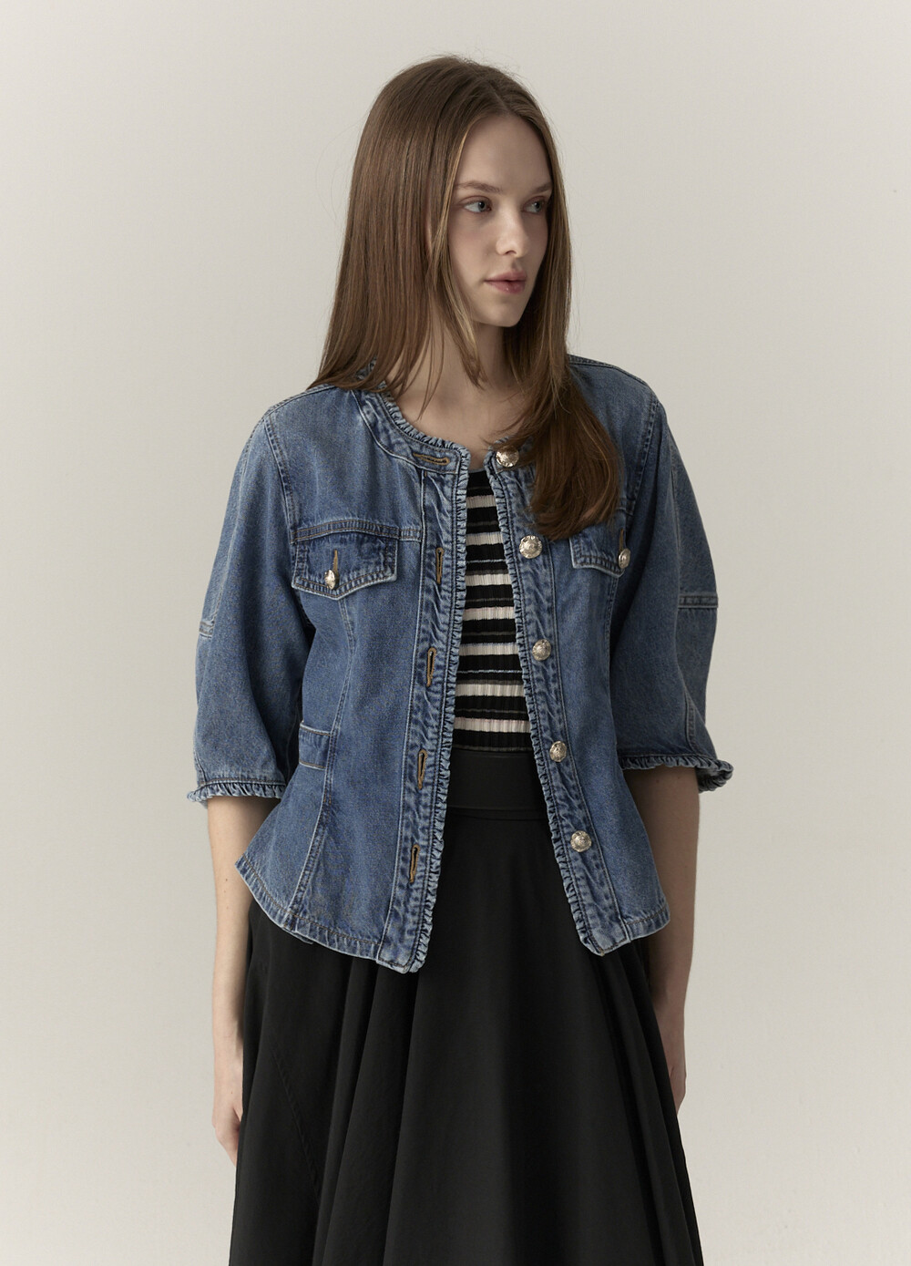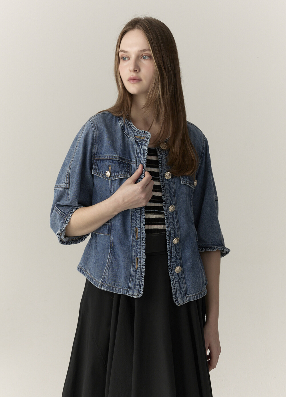 연출하는 데님 자켓입니다.