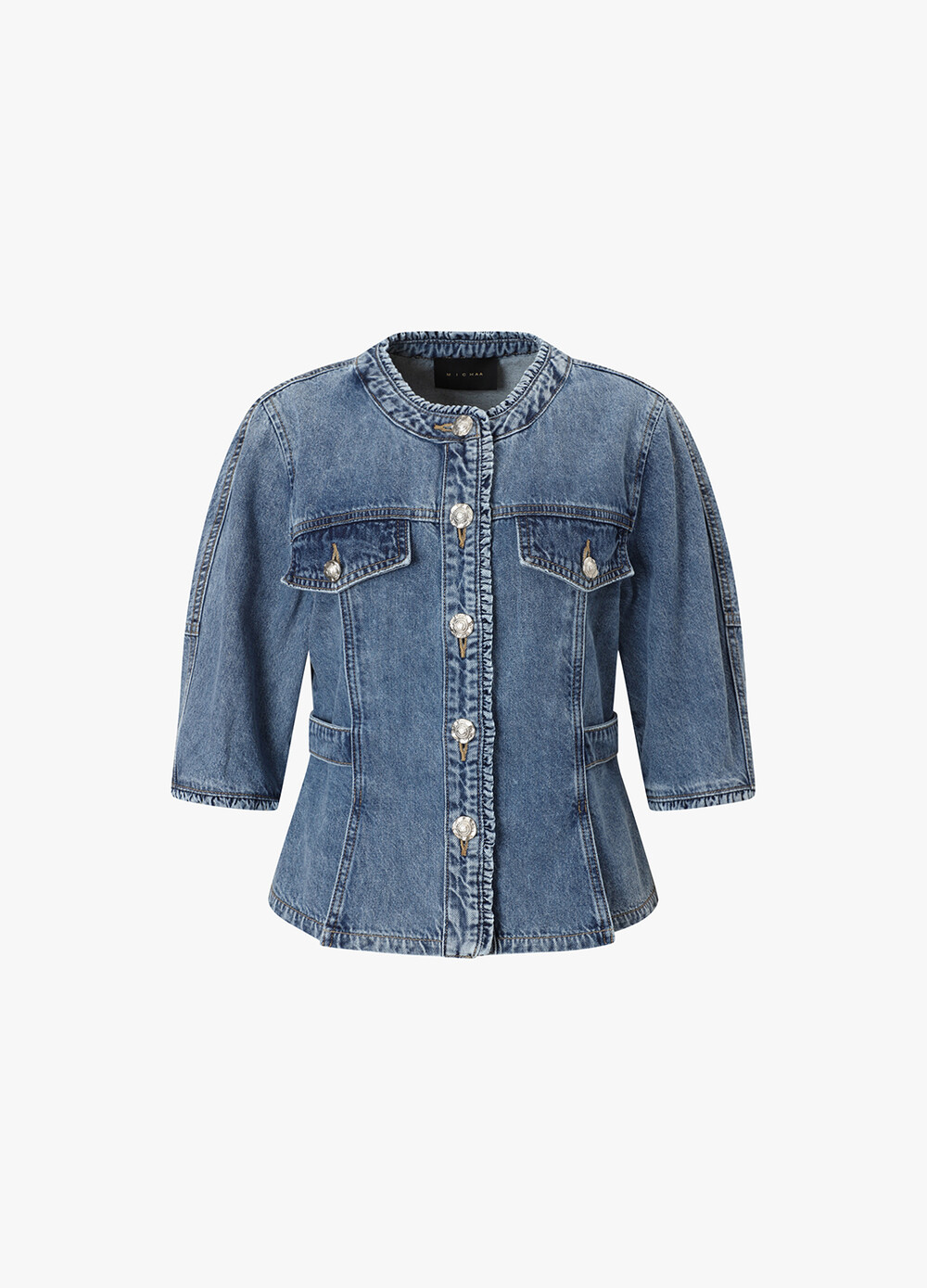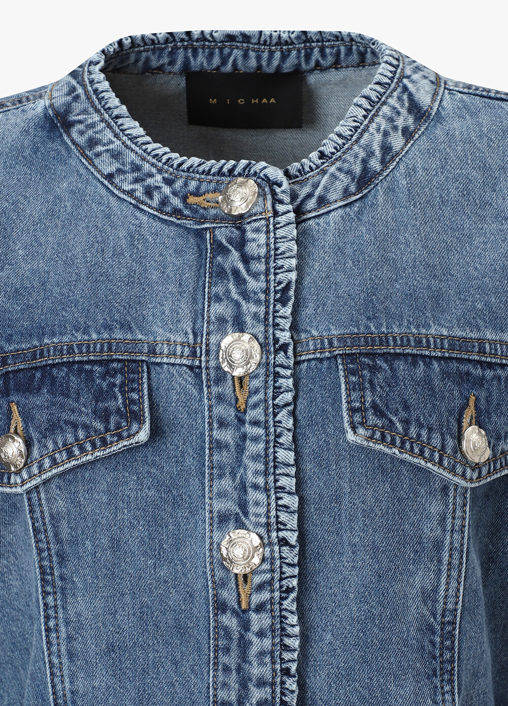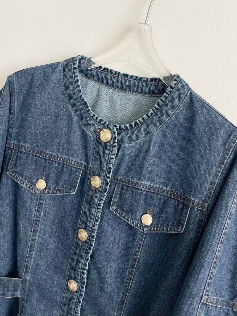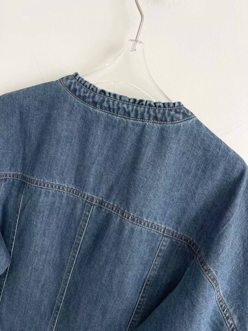 MICHAA. No Collar Denim Washing Jacket