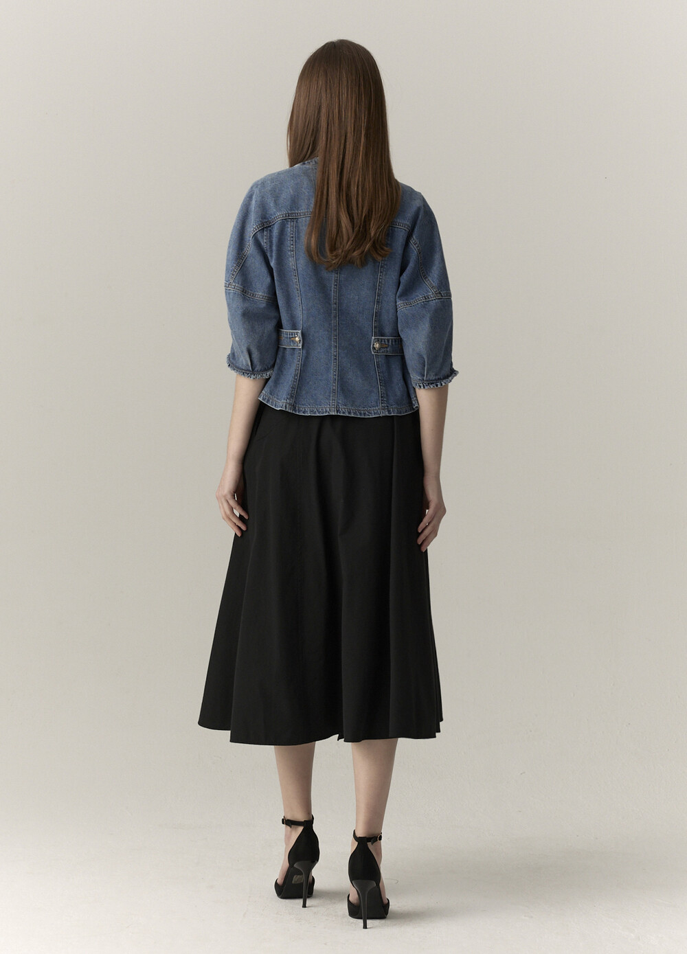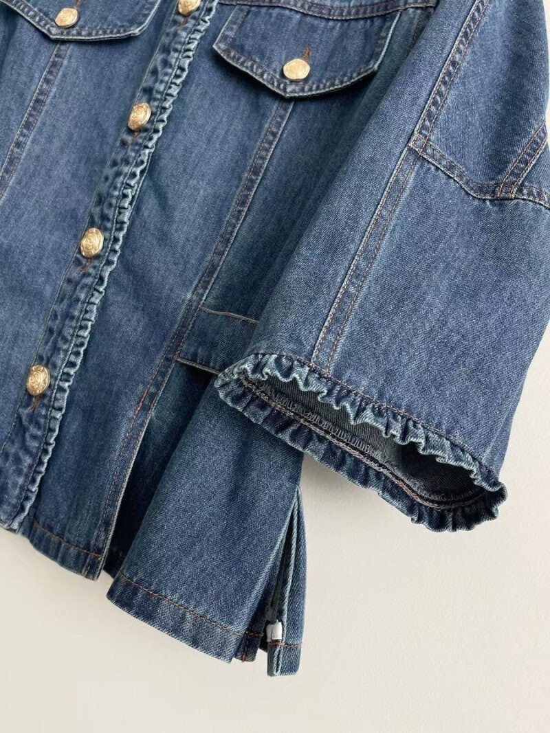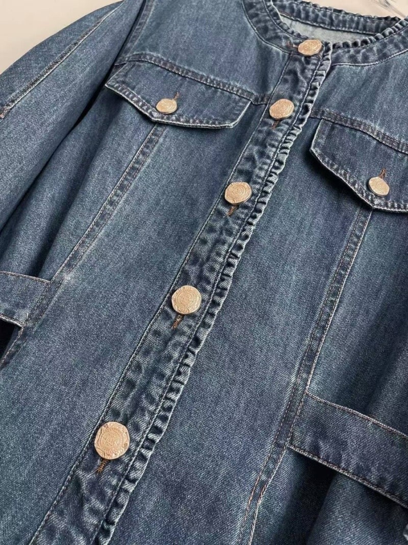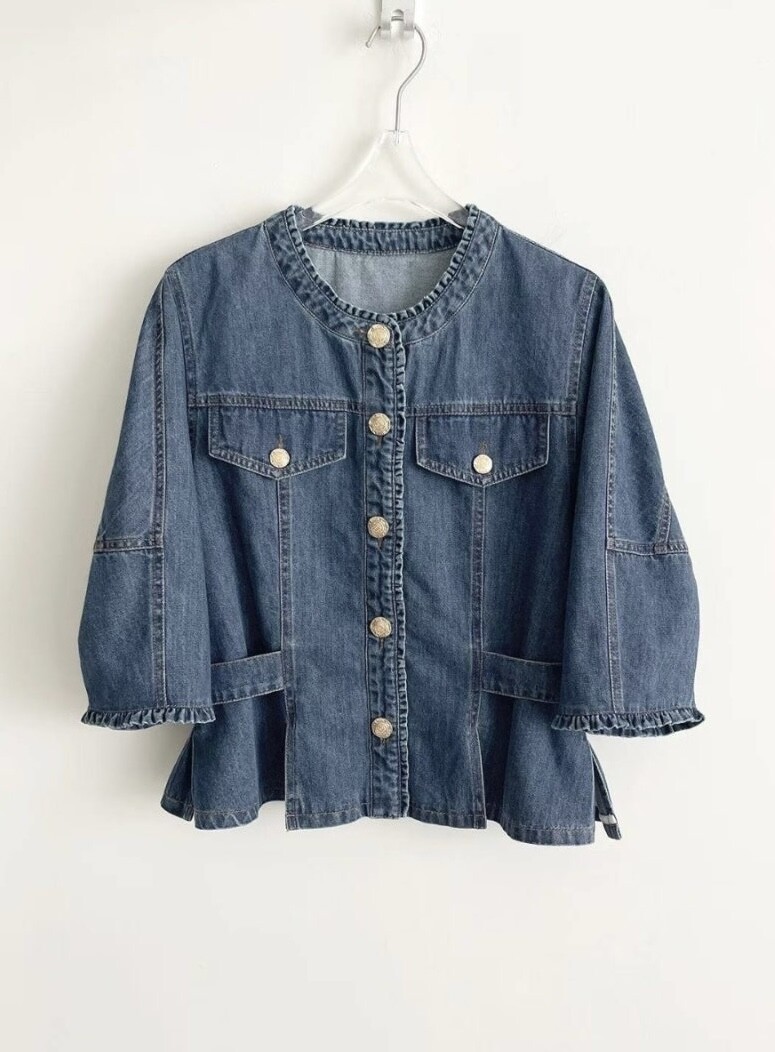 MICHAA. No Collar Denim Washing Jacket