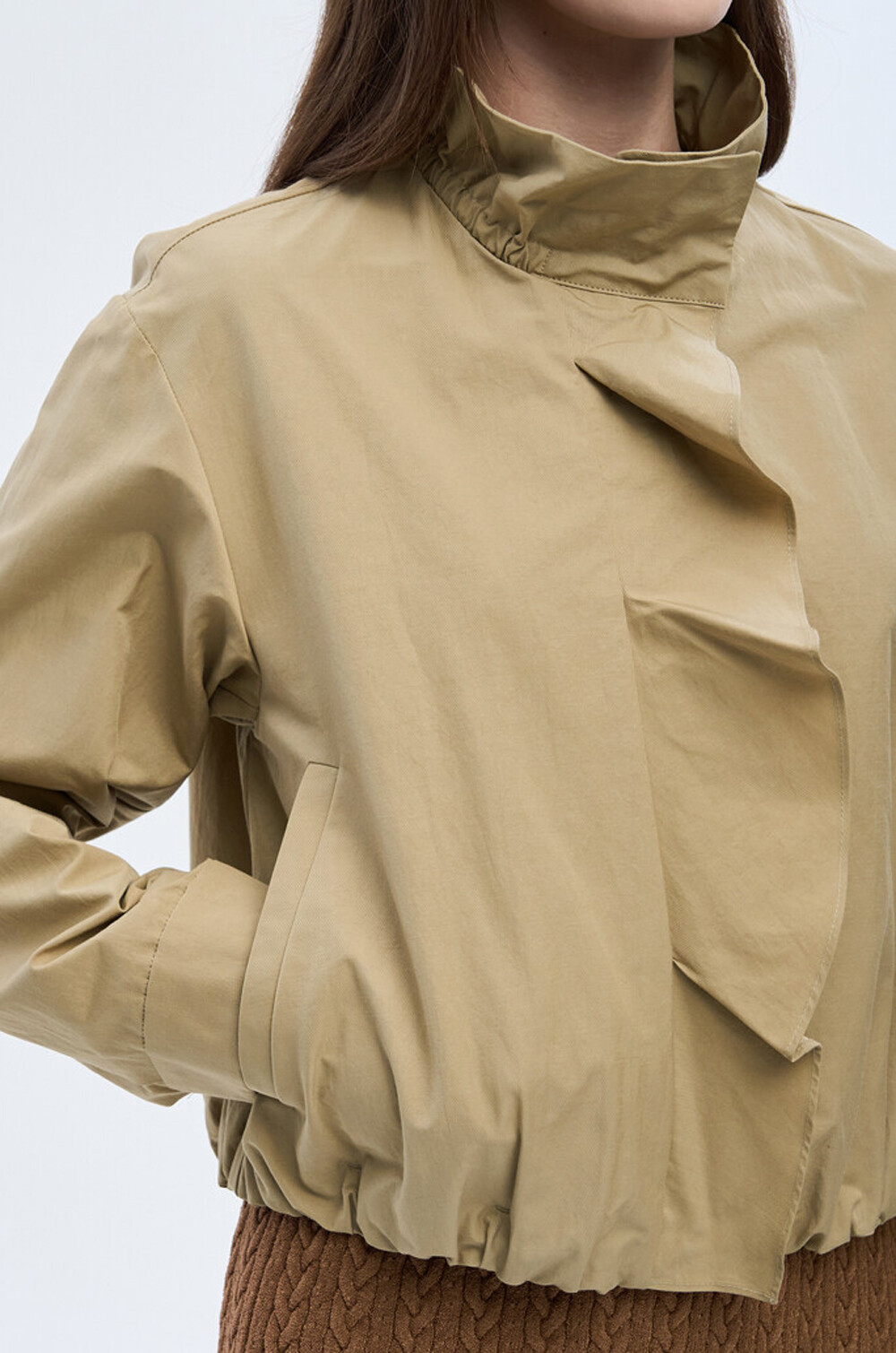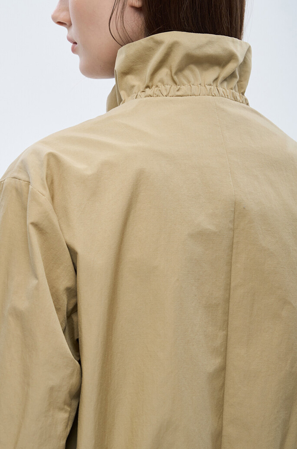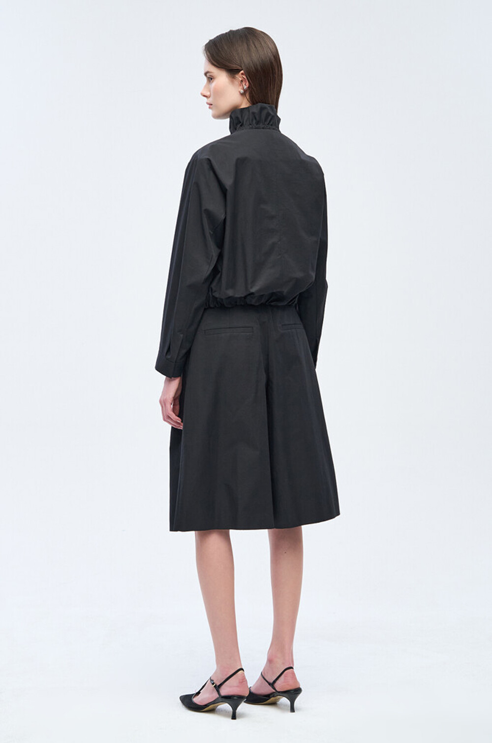 하이넥 디자인에 밴딩과 셔링을 더해