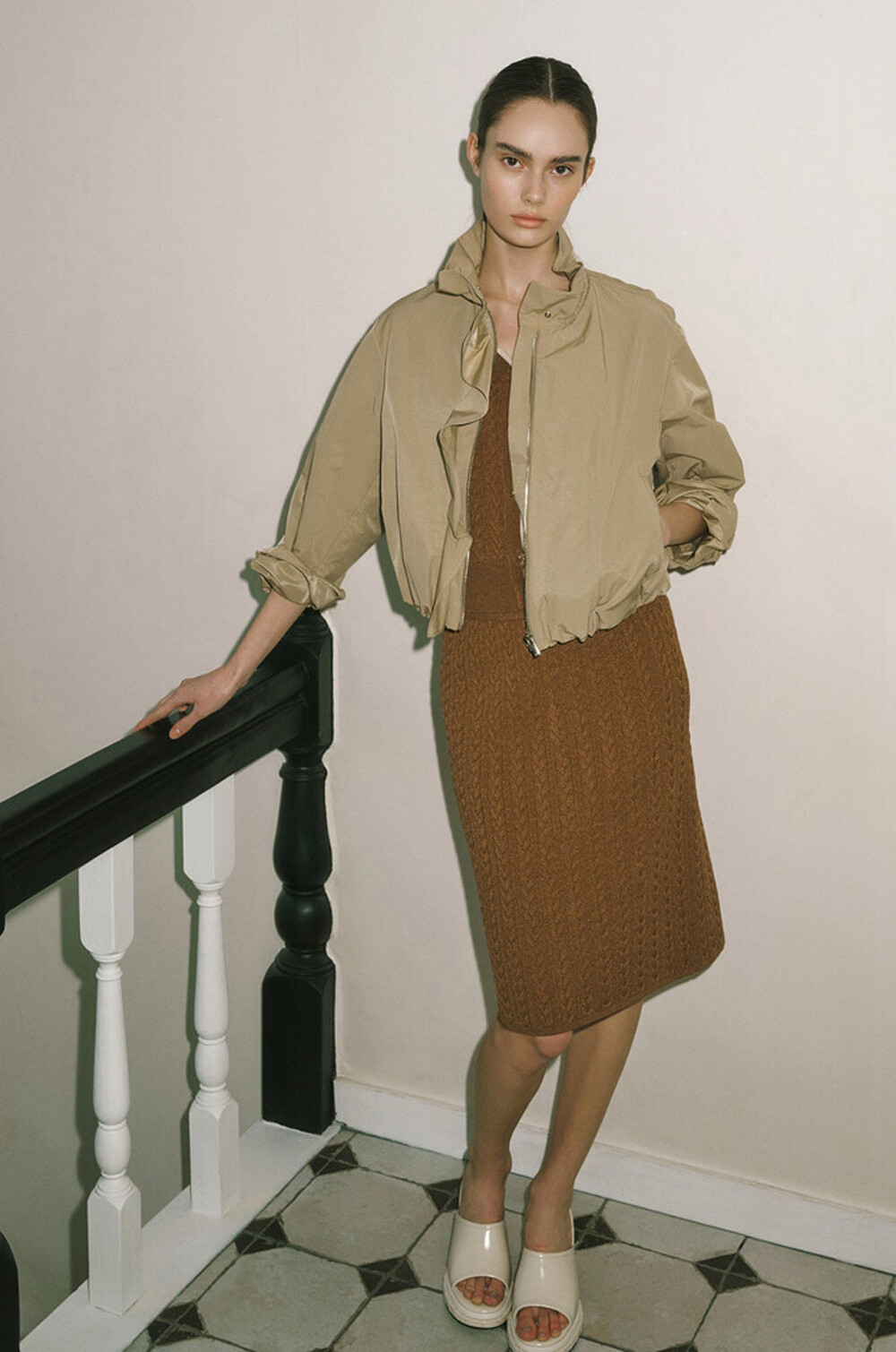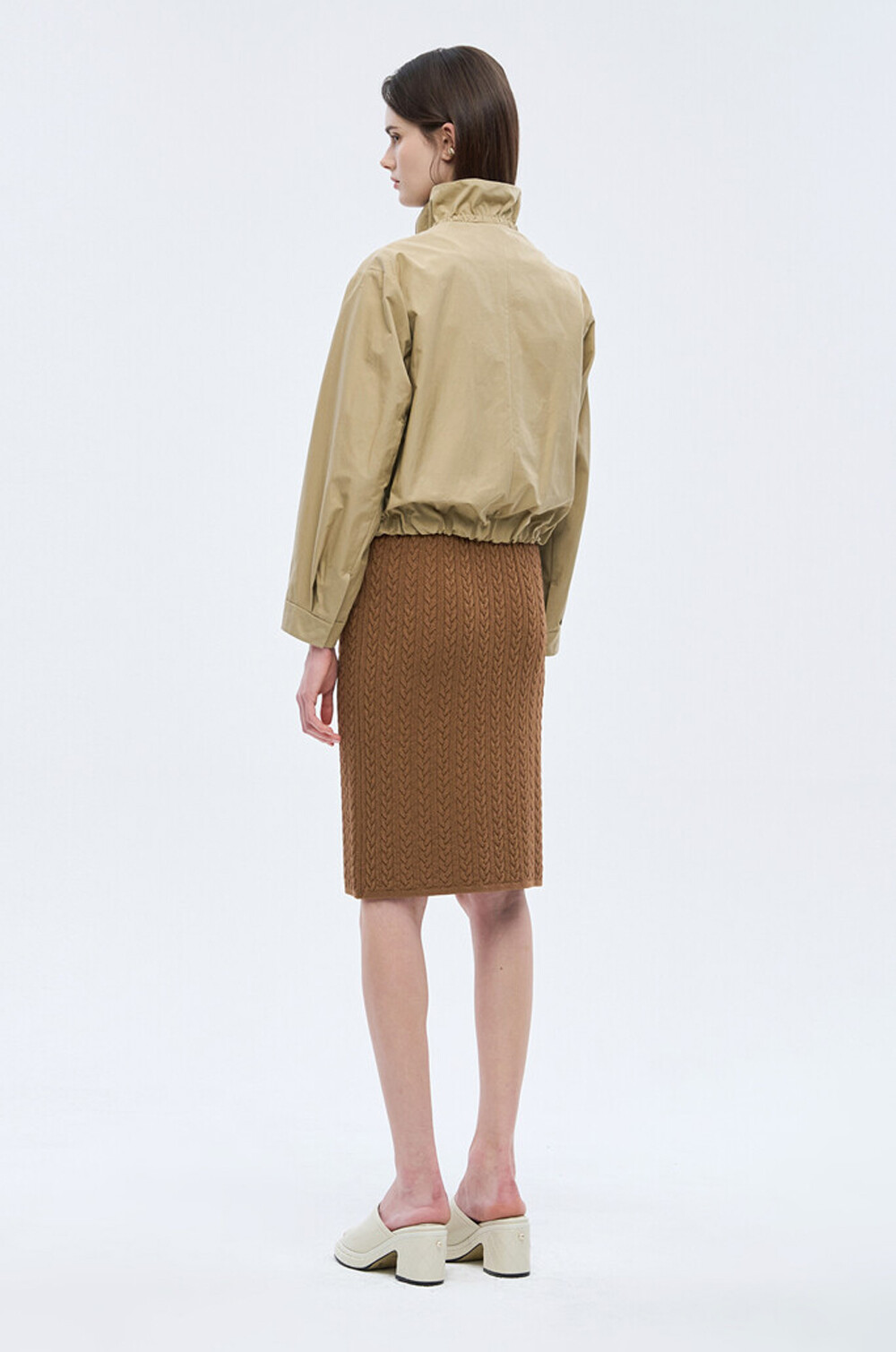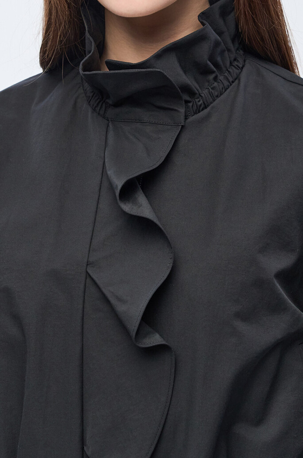 하이넥 디자인에 밴딩과 셔링을 더해