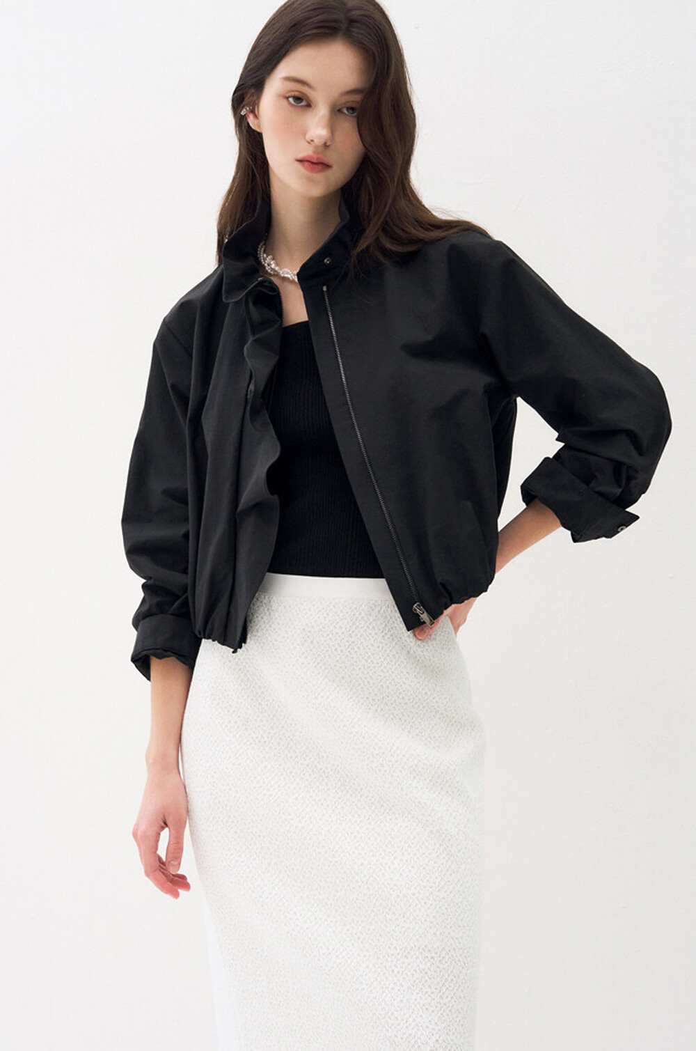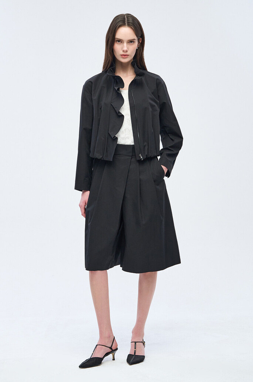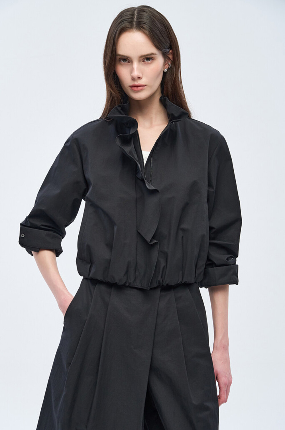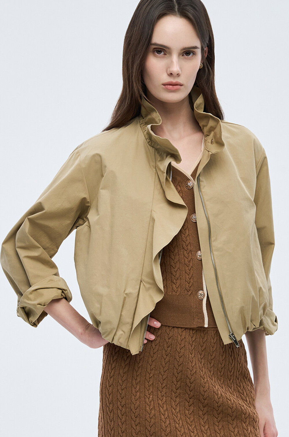 오브제 하이넥 러플 집업 점퍼 & 팬츠