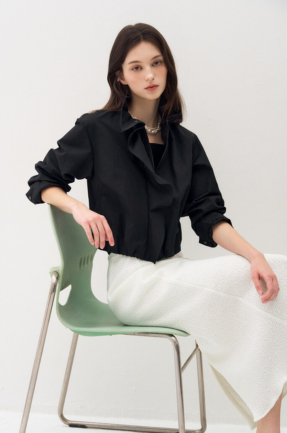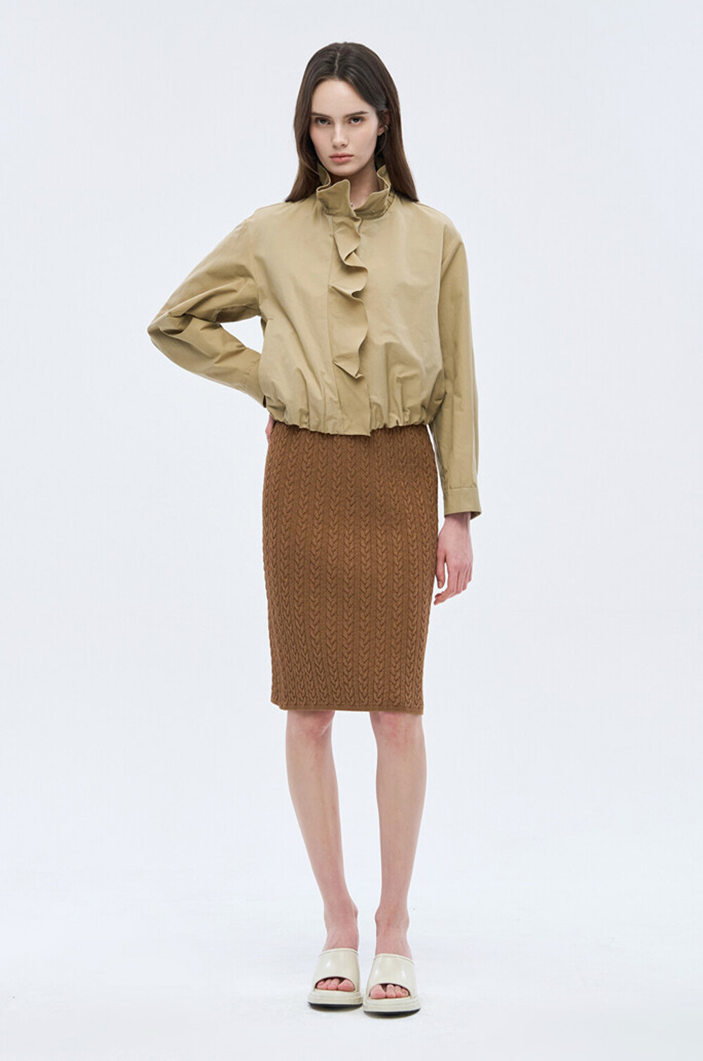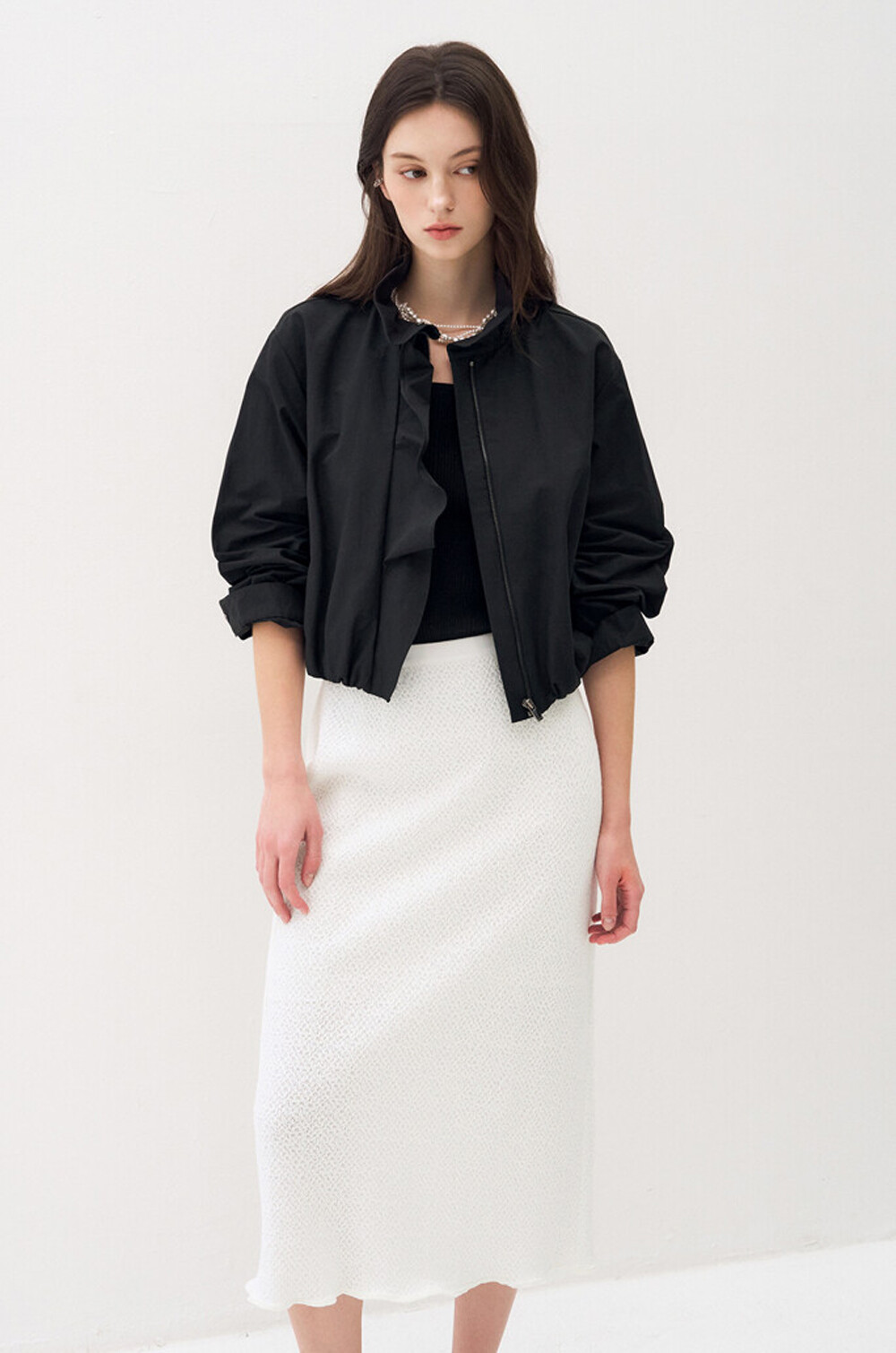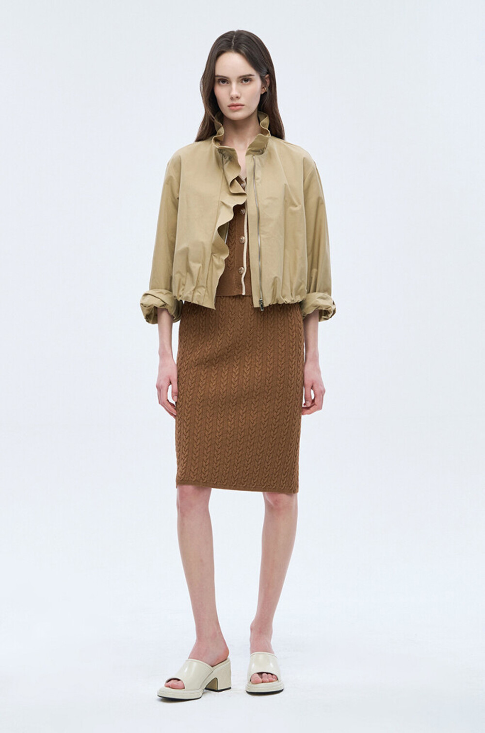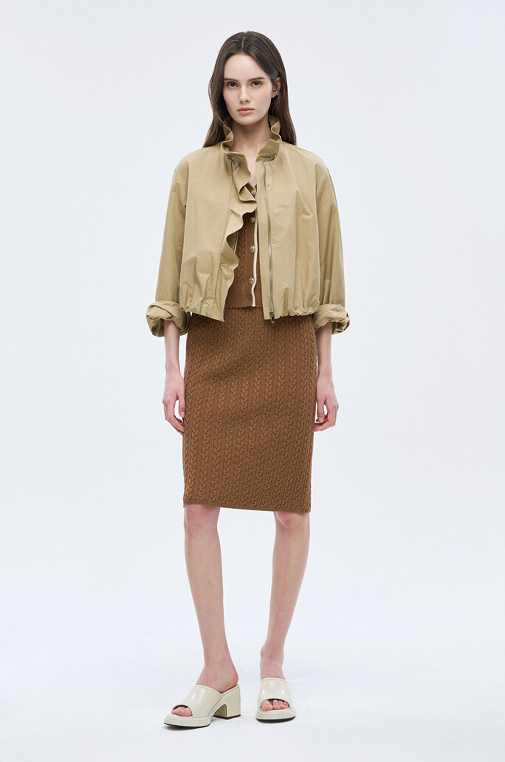 오브제 하이넥 러플 집업 점퍼 & 팬츠