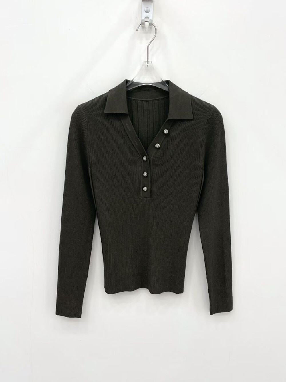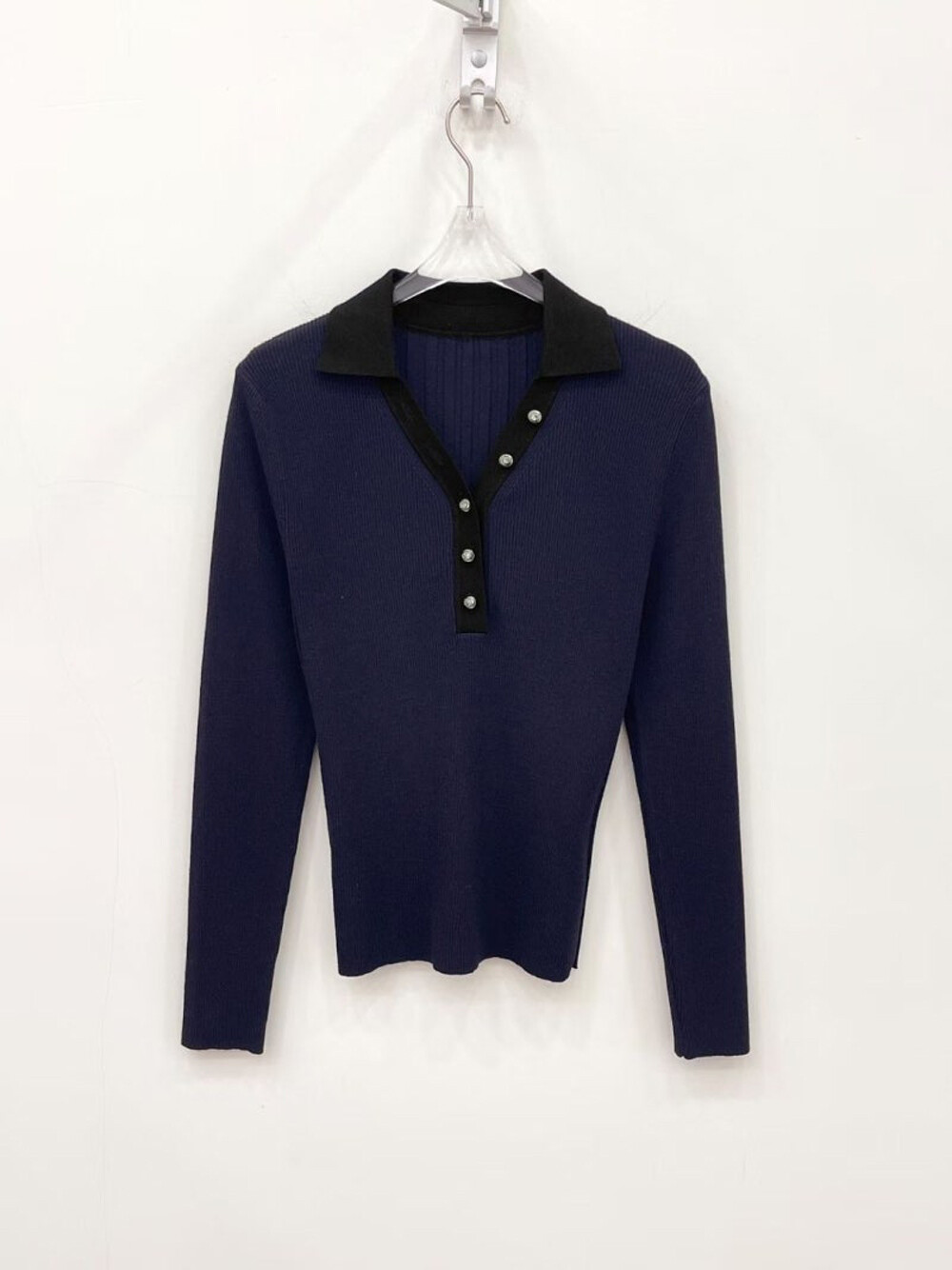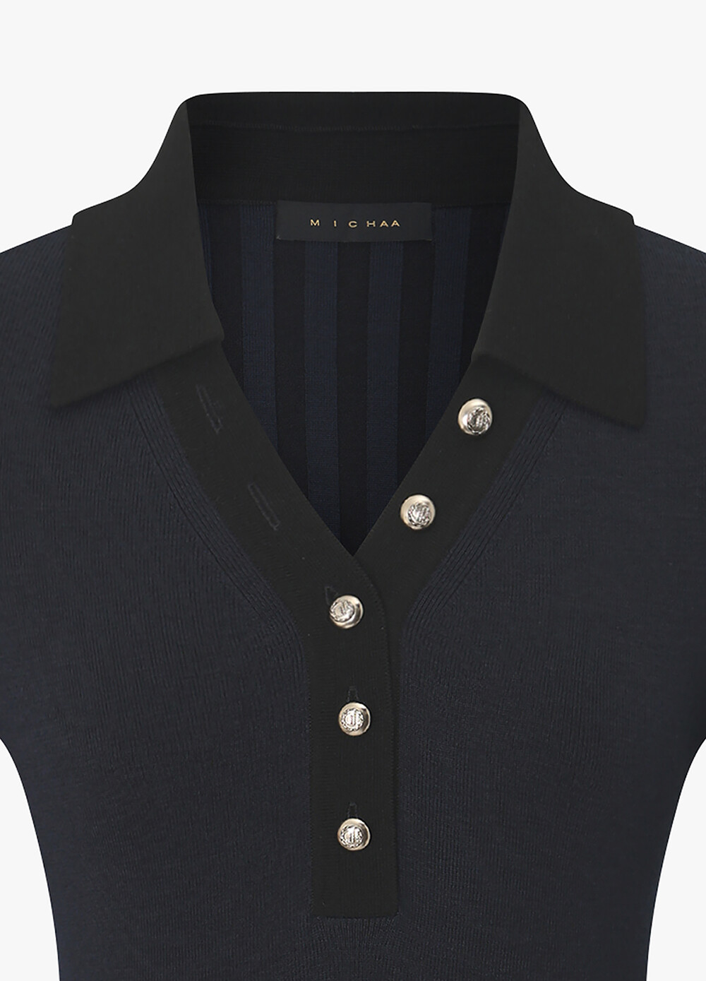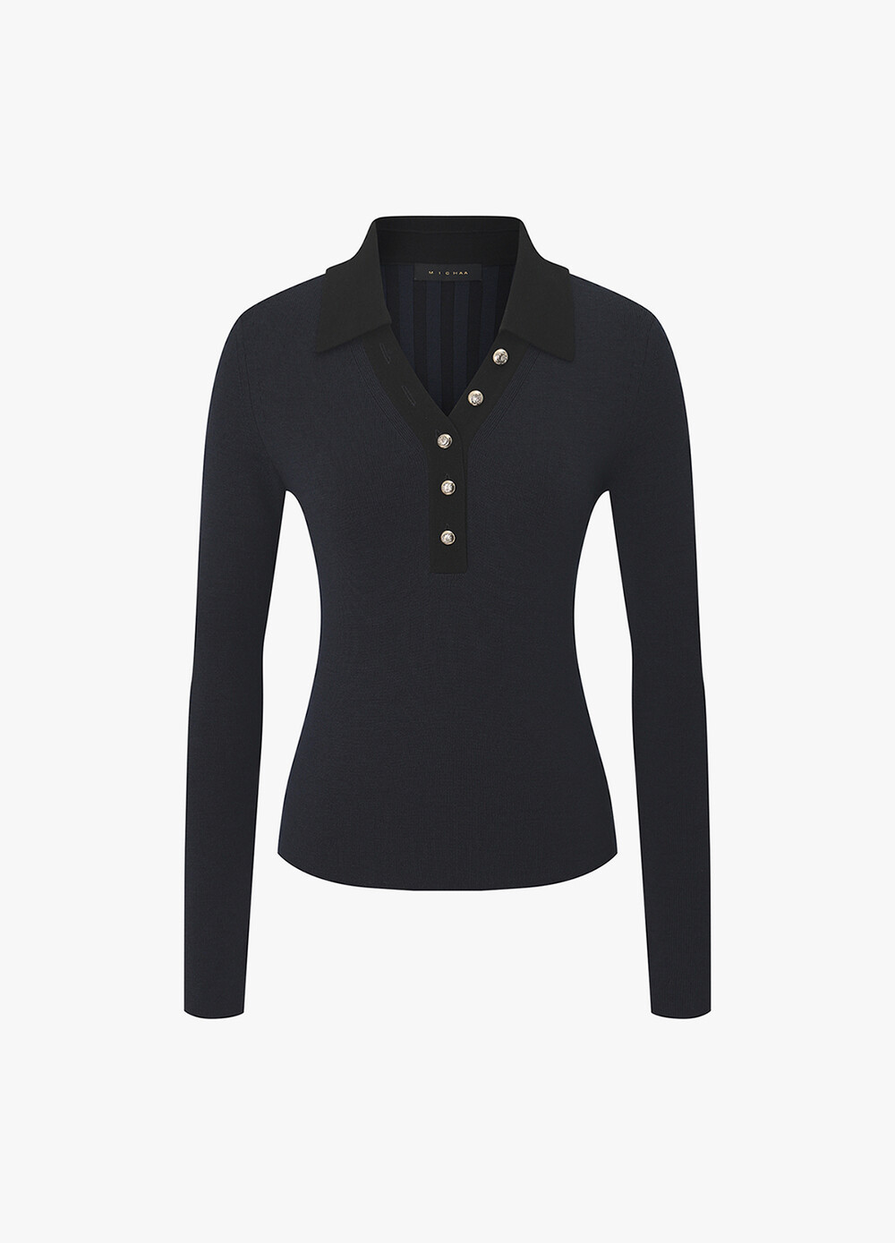 MICHAA. Notch Neck Collar Knit Top