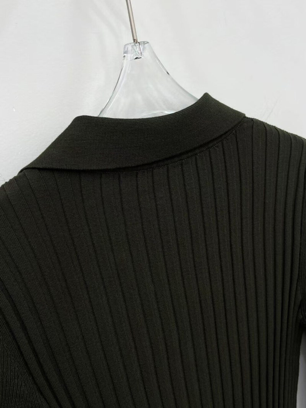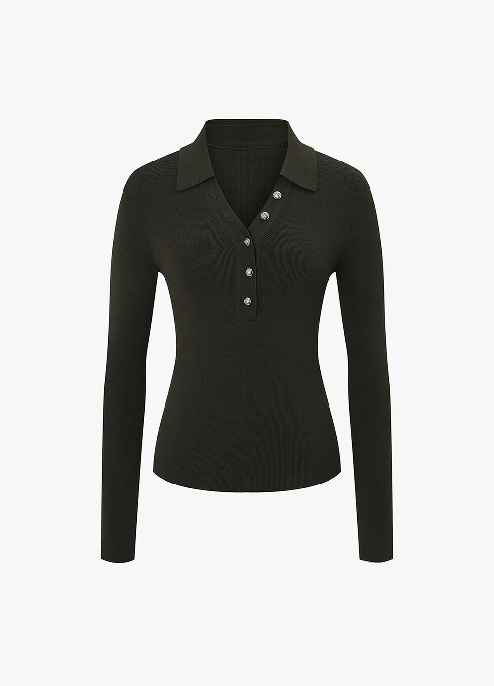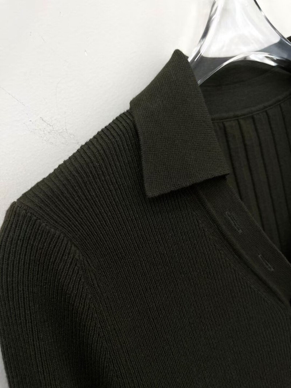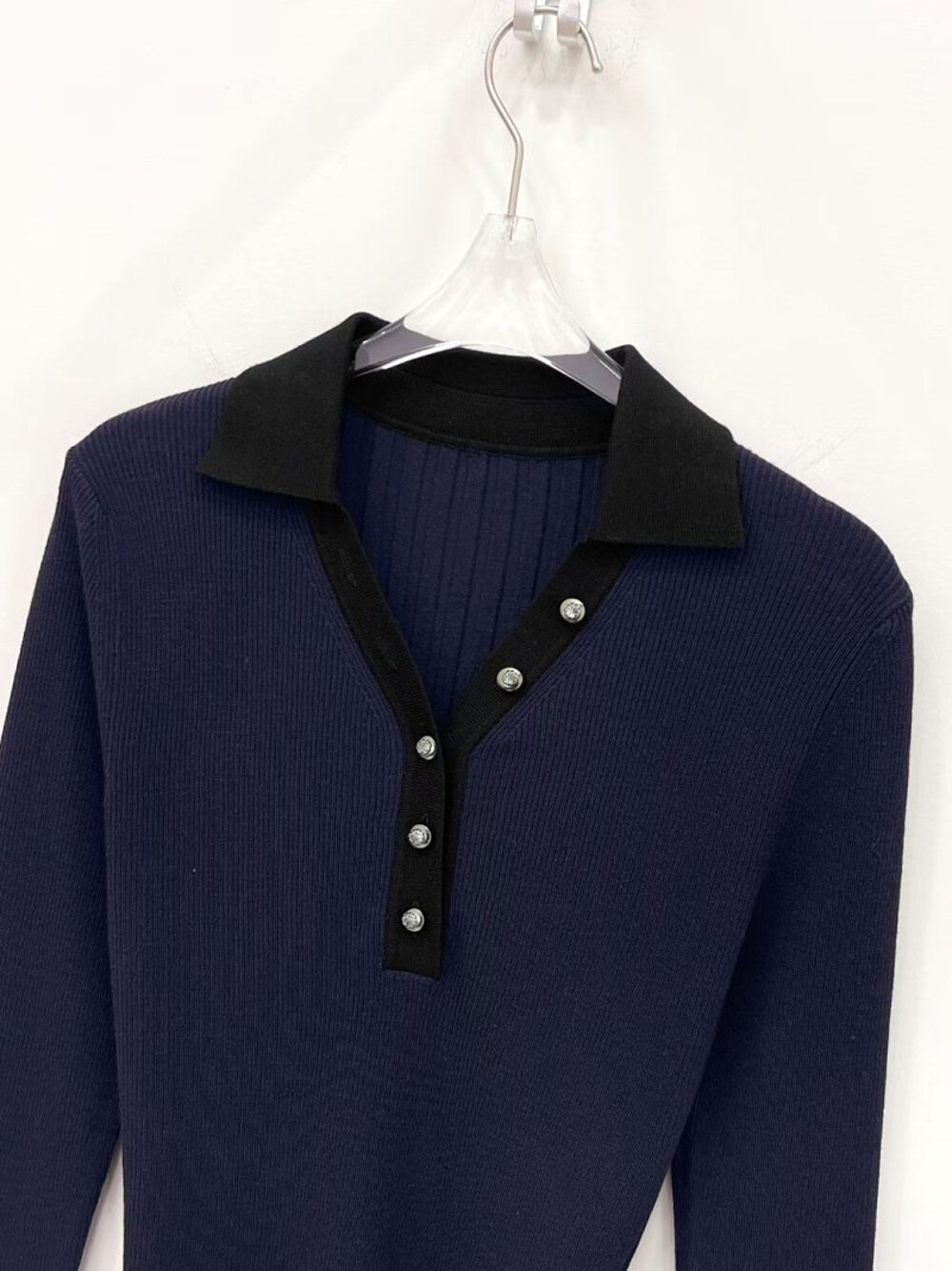 MICHAA. Notch Neck Collar Knit Top