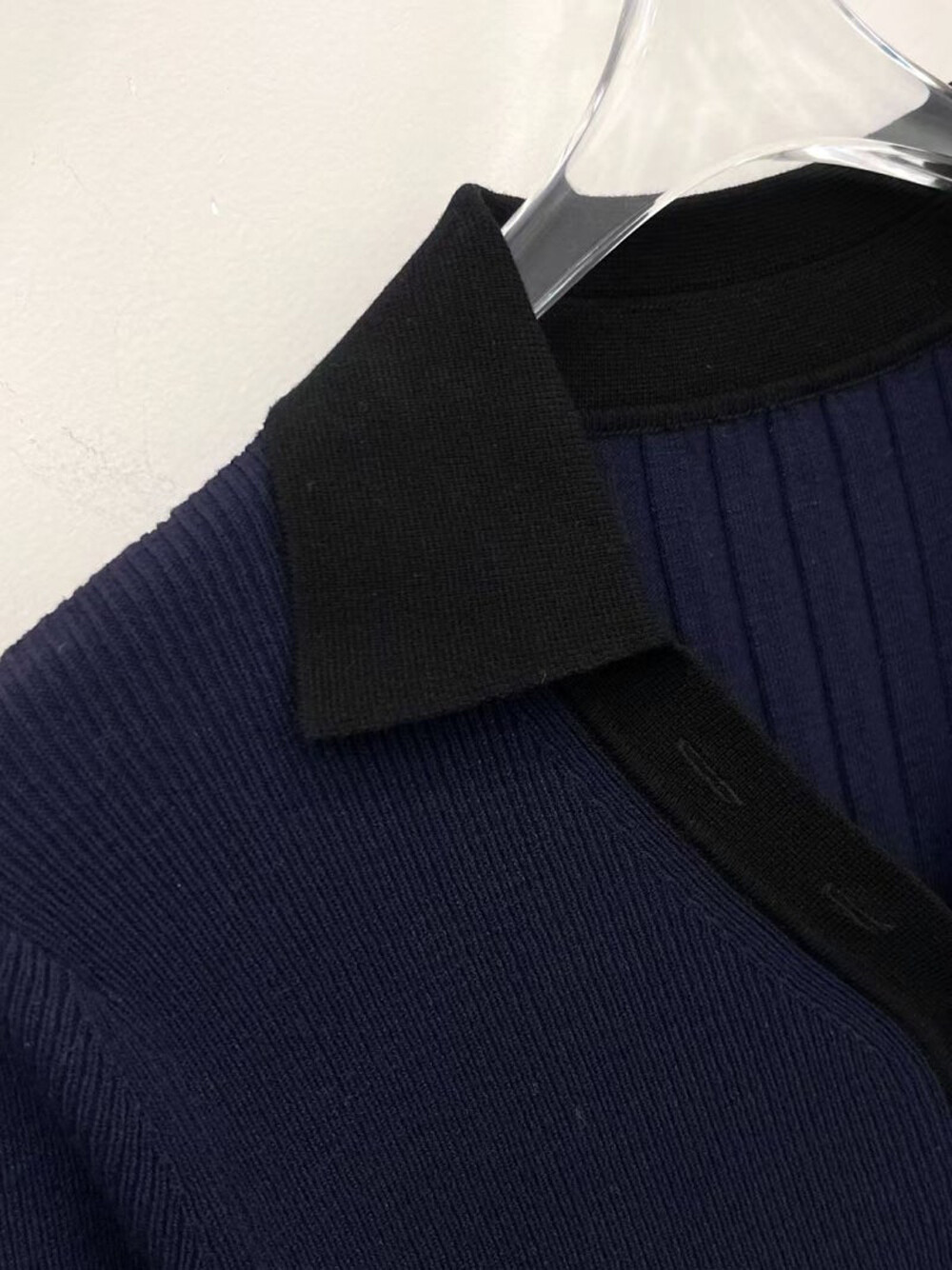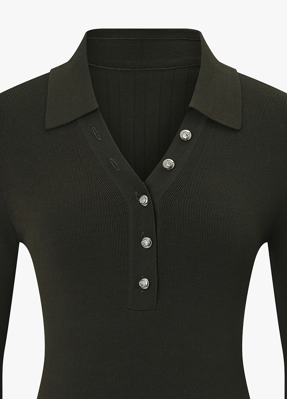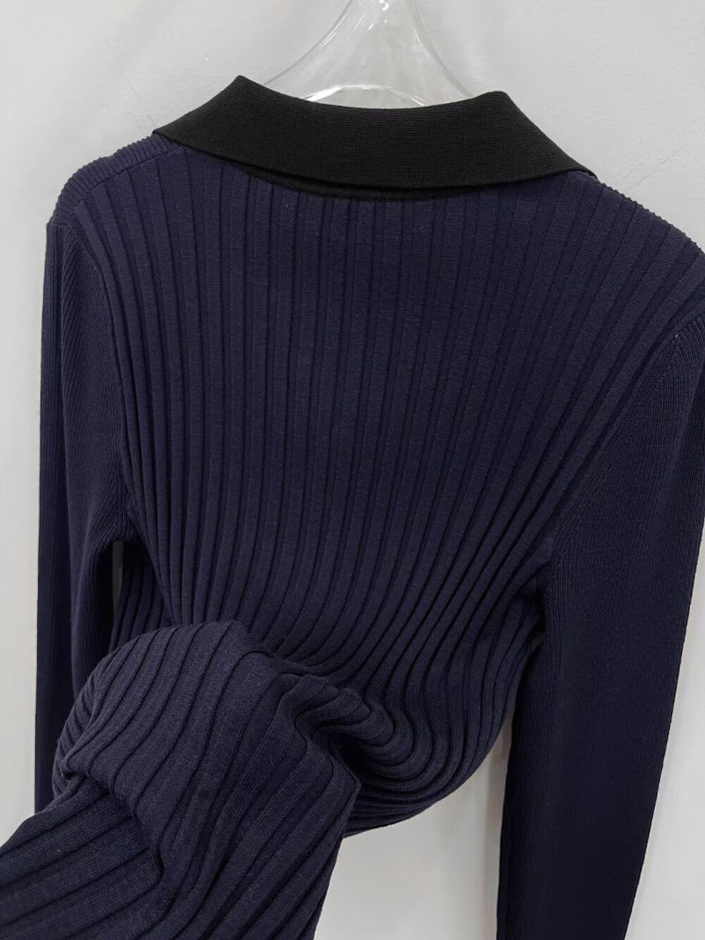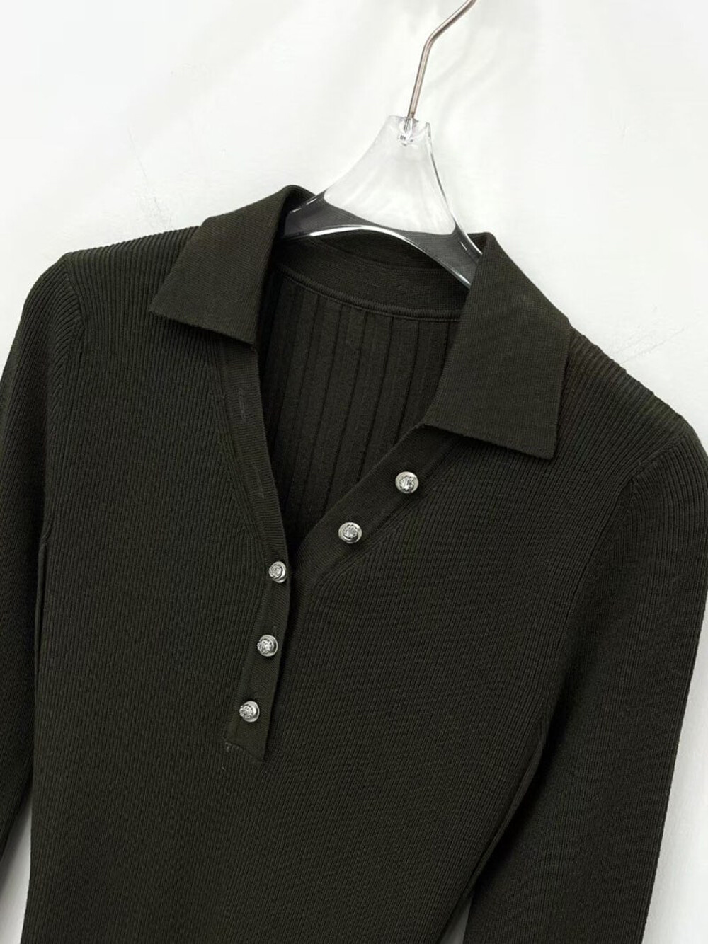 MICHAA. Notch Neck Collar Knit Top