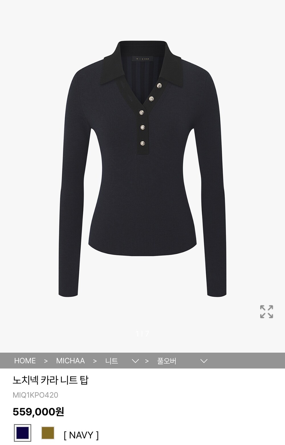 미샤 노치넥 카라 니트 탑