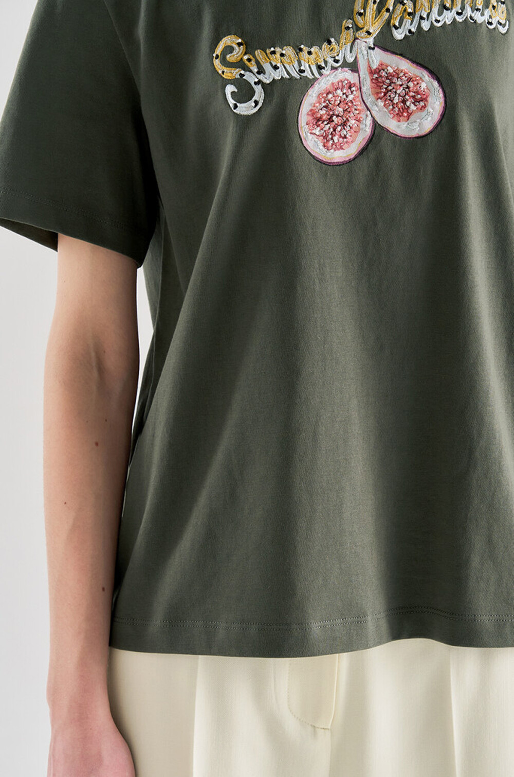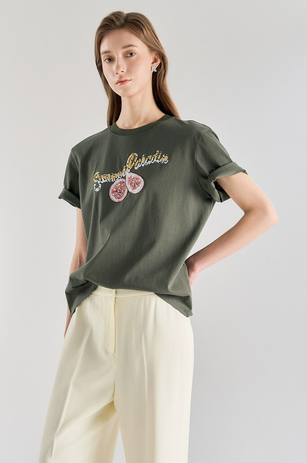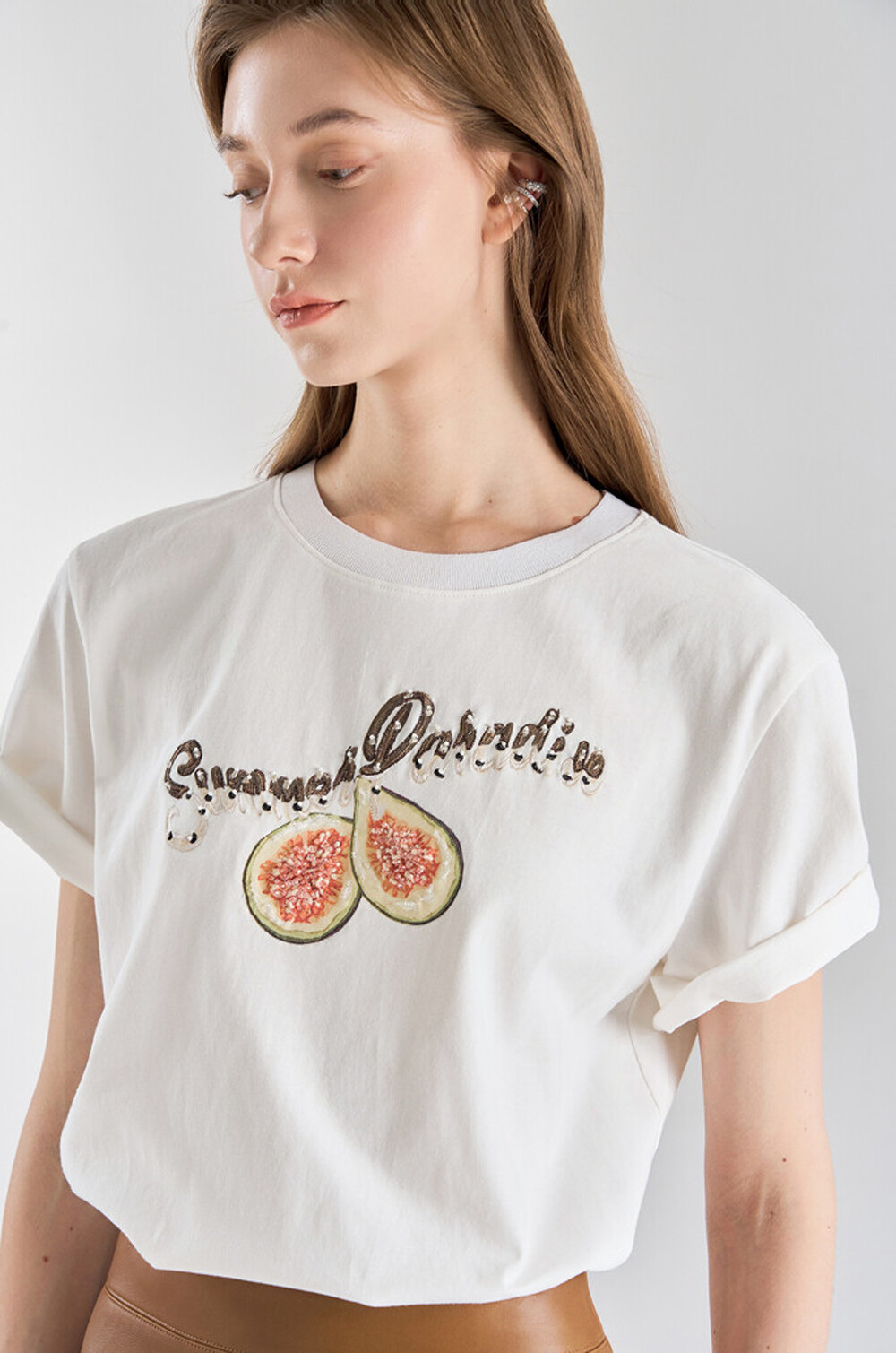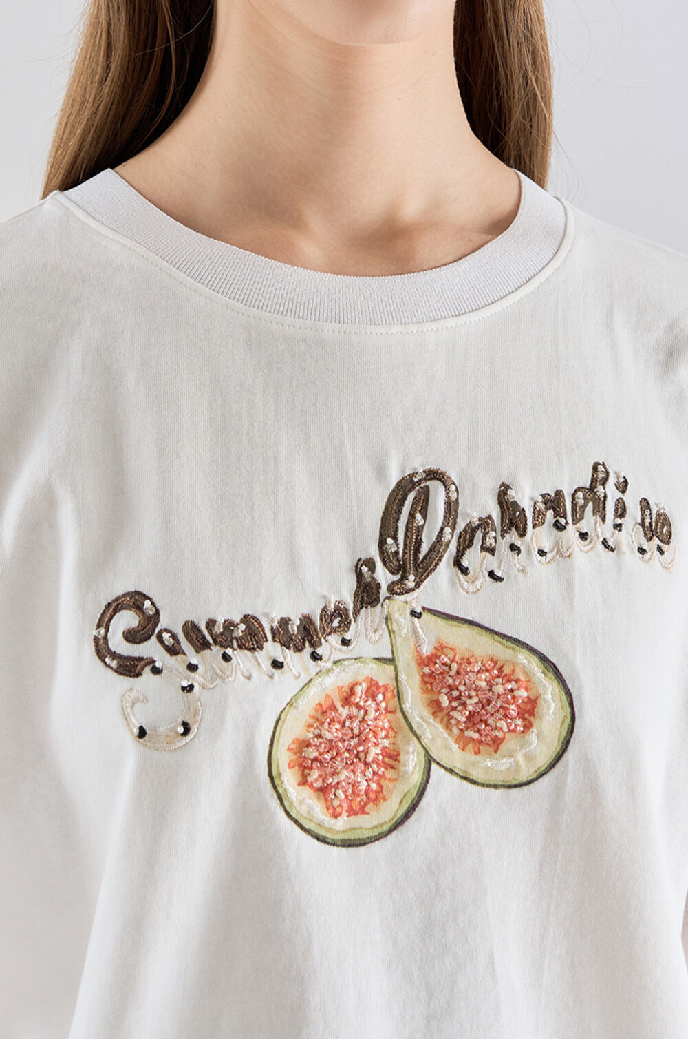 랑방컬렉션 자수 & 비딩 하프 슬리브 티셔츠