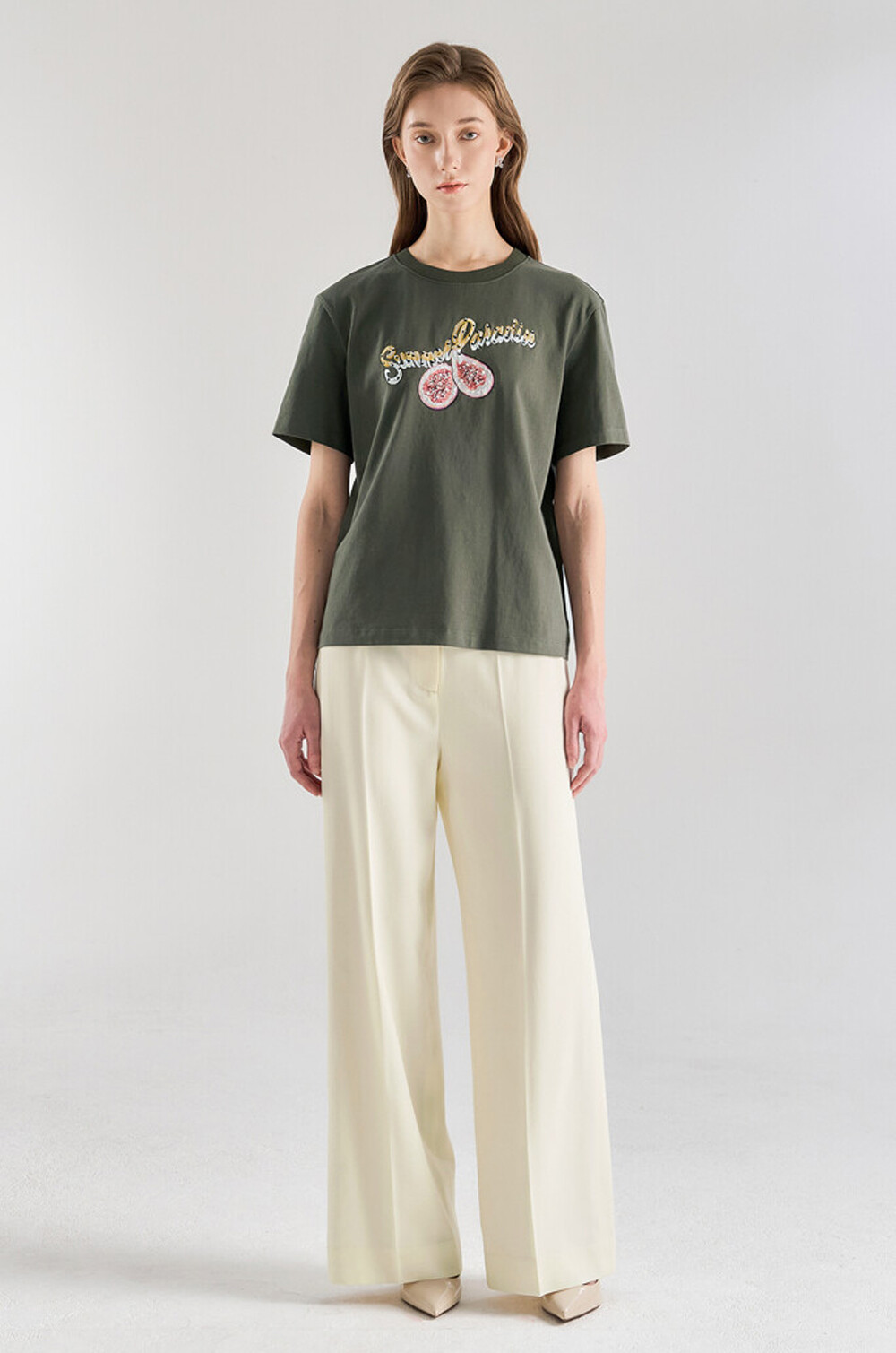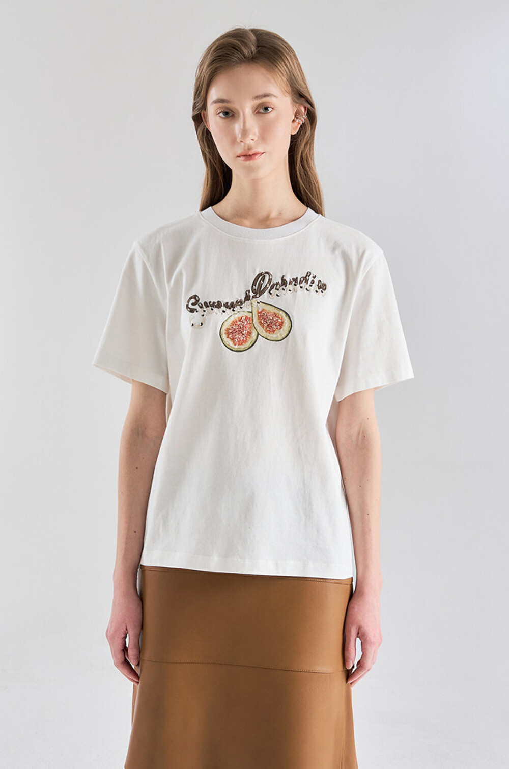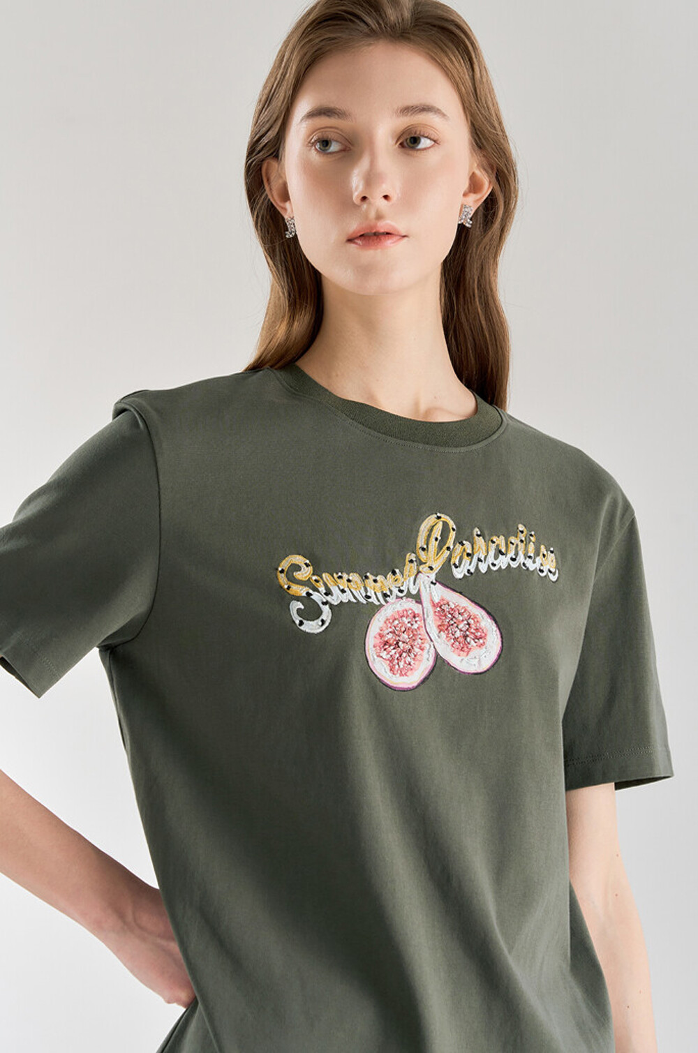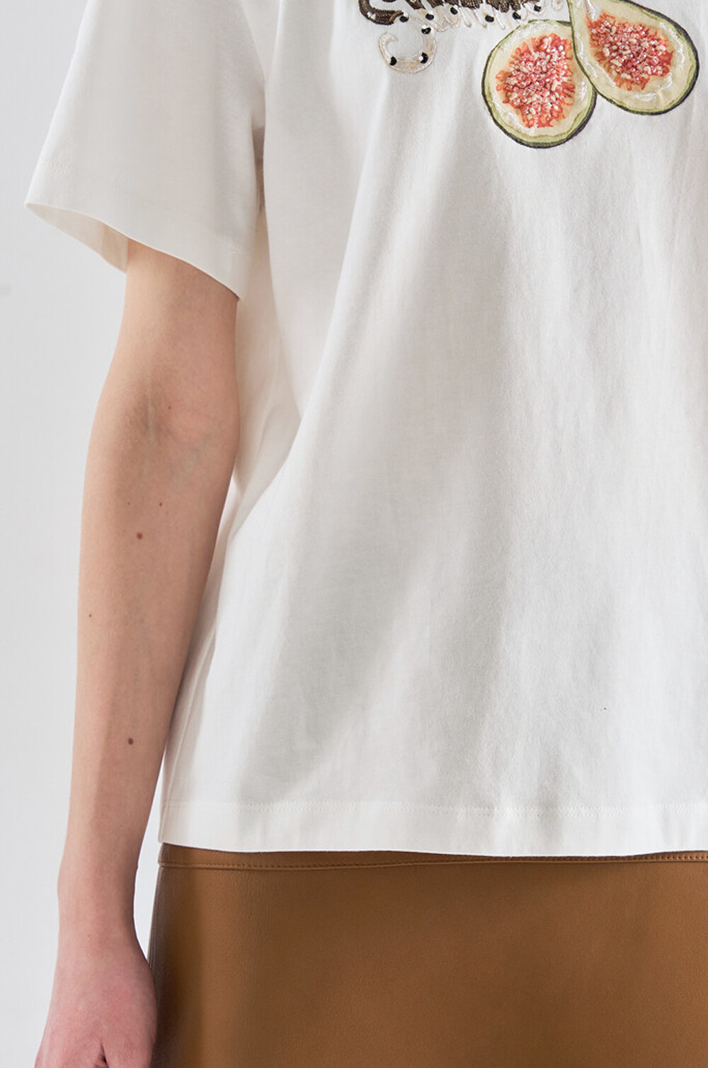 랑방컬렉션 자수 & 비딩 하프 슬리브 티셔츠