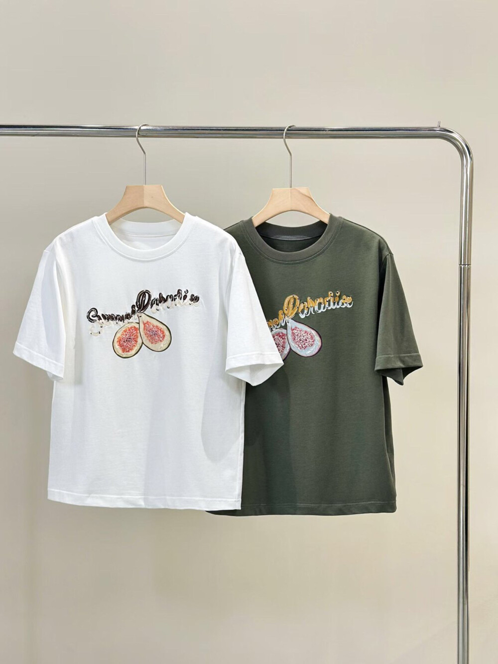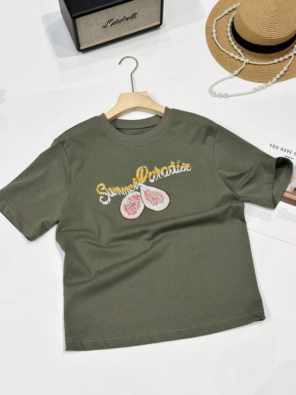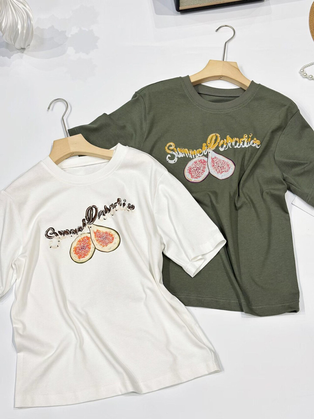 과일 모티브 프린팅이 돋보이며,