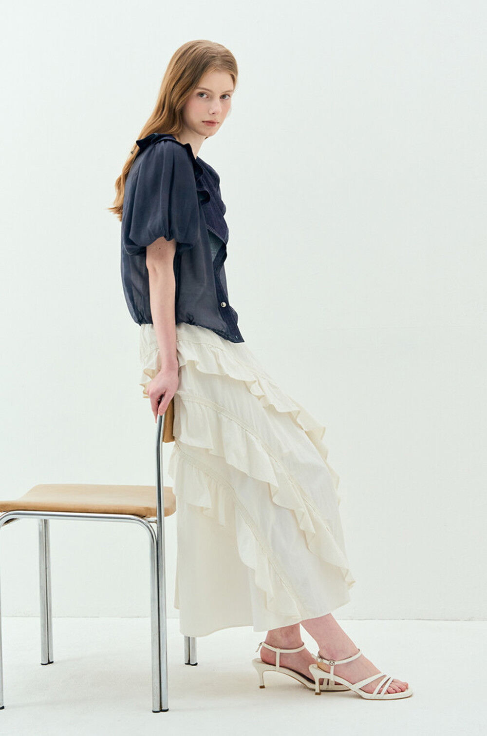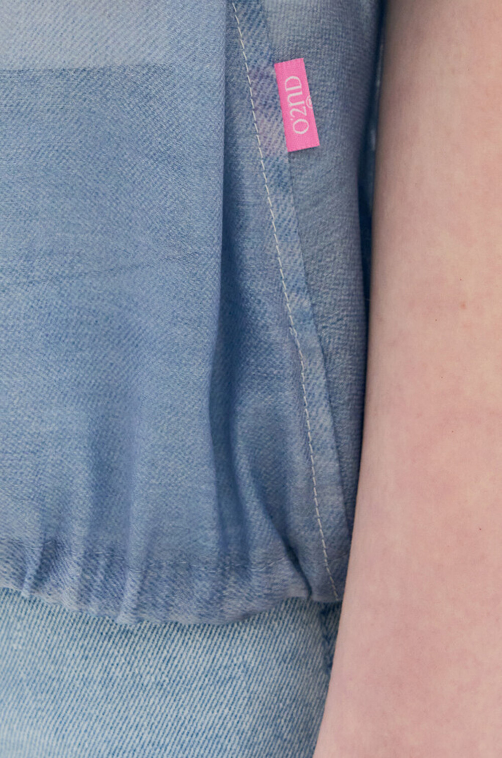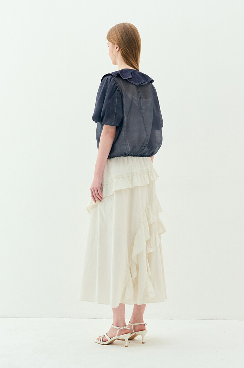 O'2nd. Denim Like Sheer Ruffle Blouse