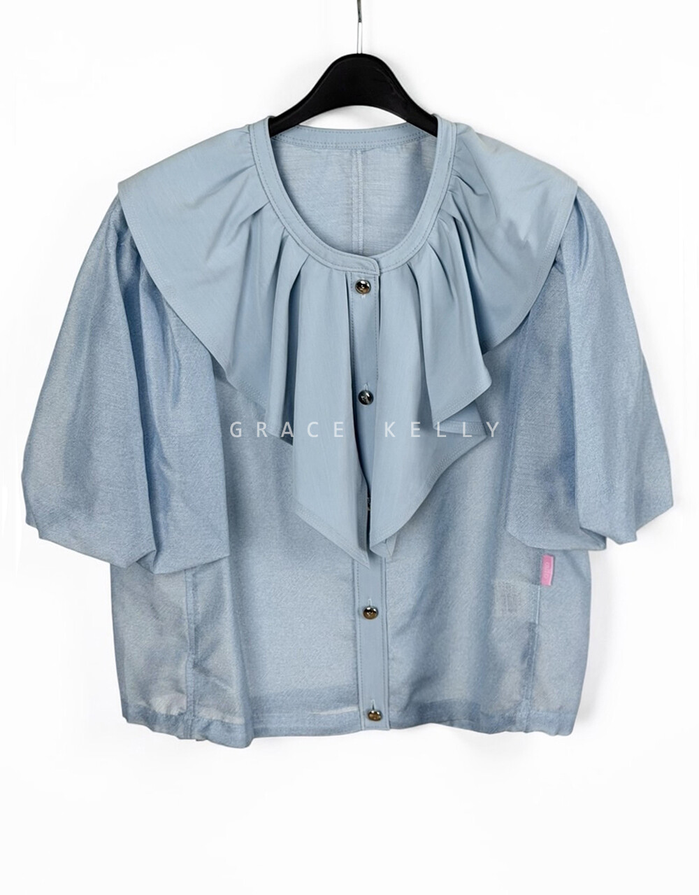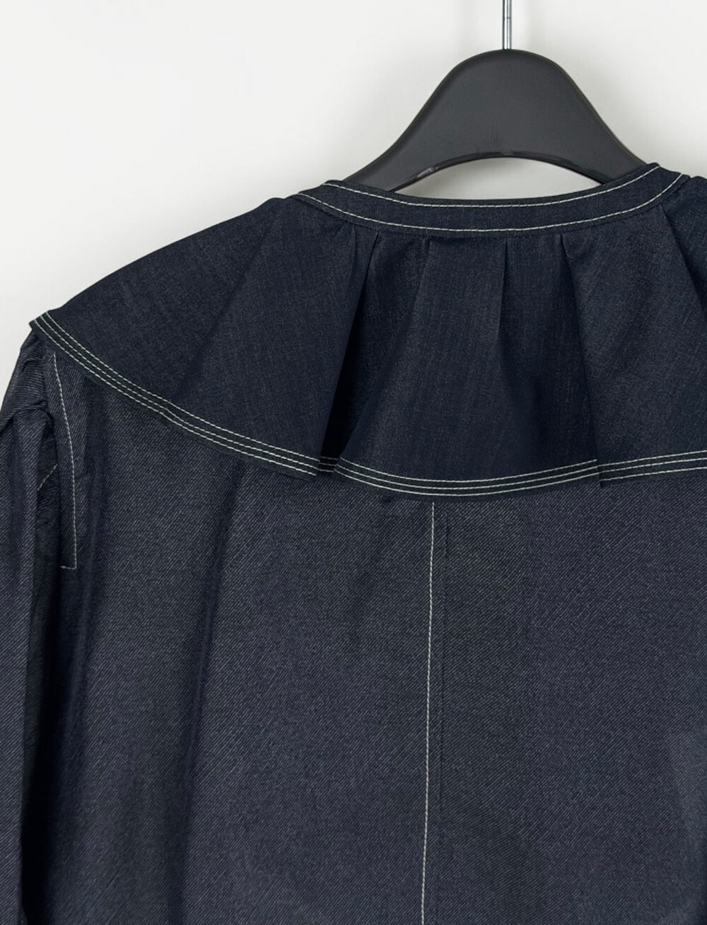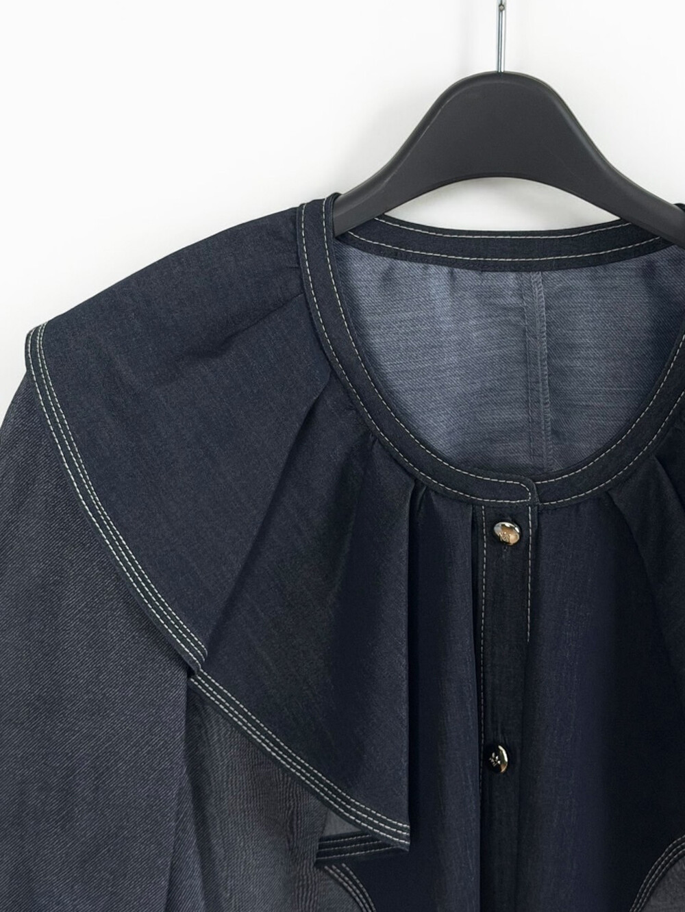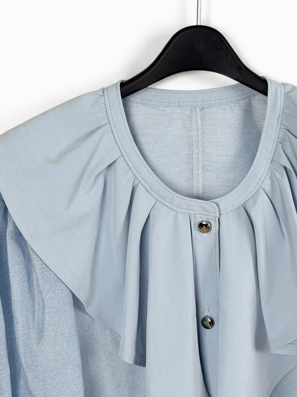 오즈세컨 데님 라이크 시어 러플 블라우스