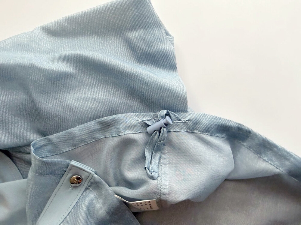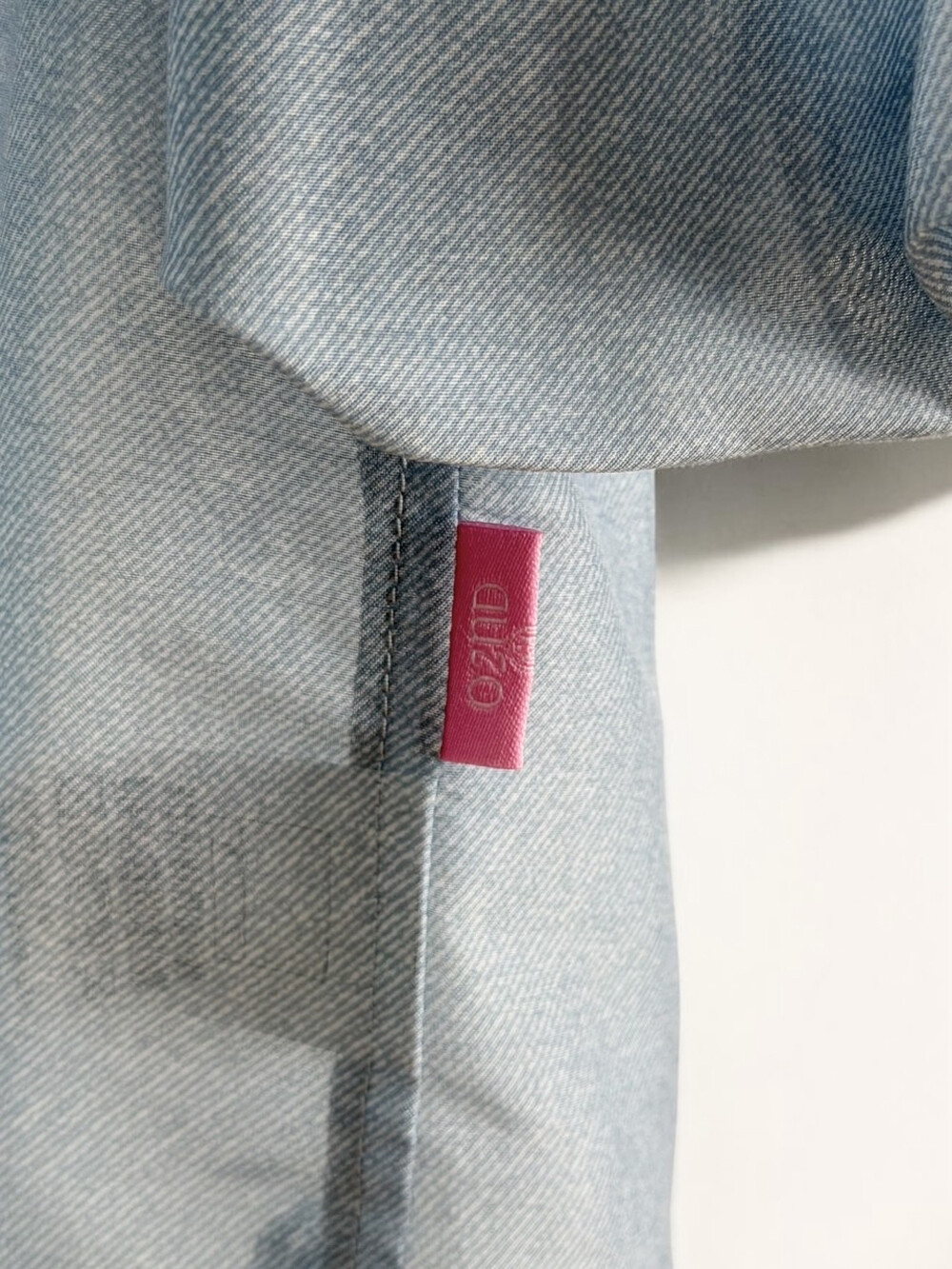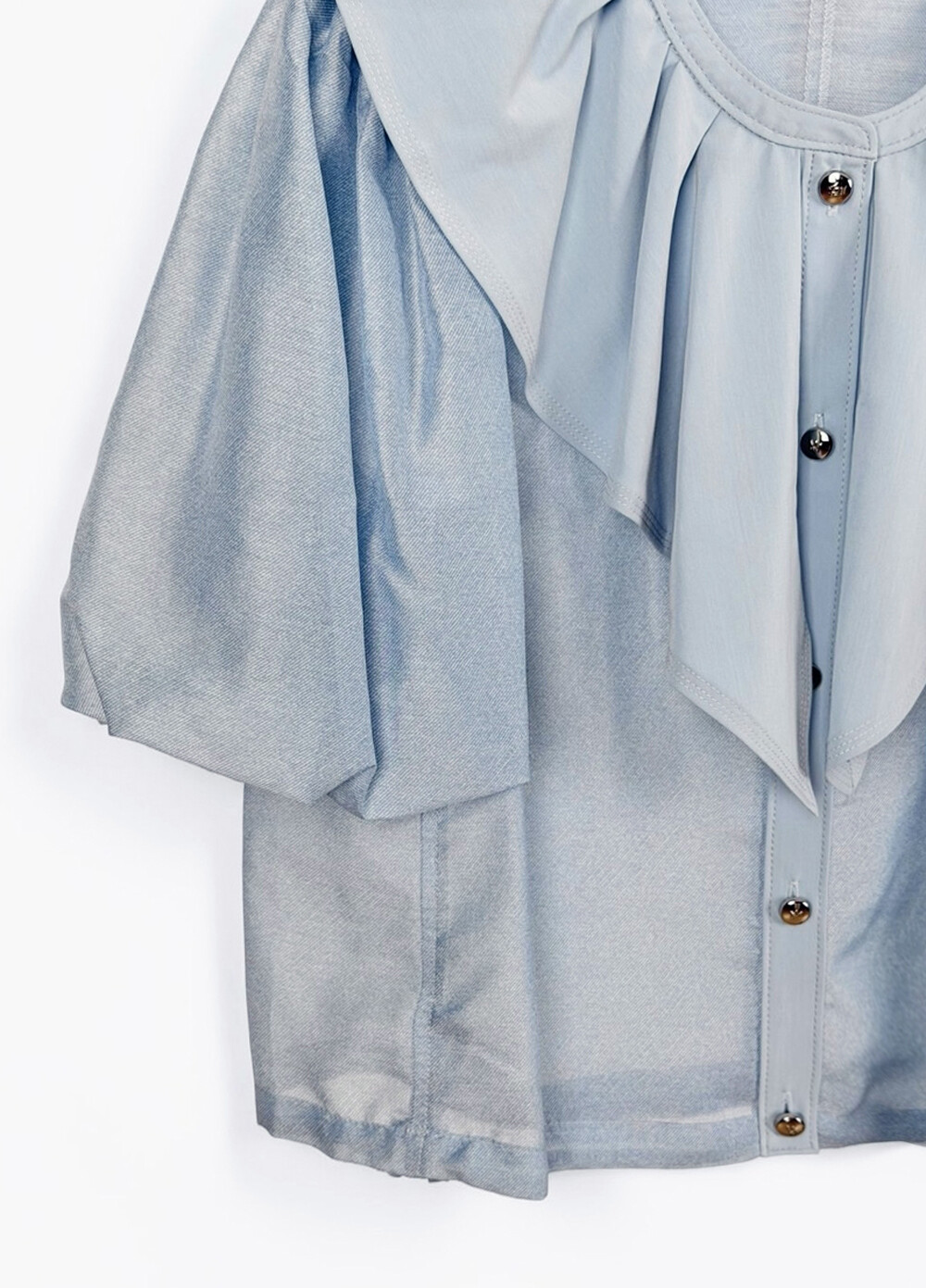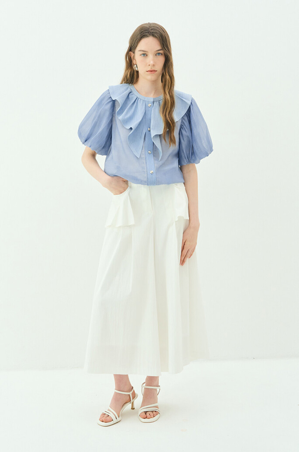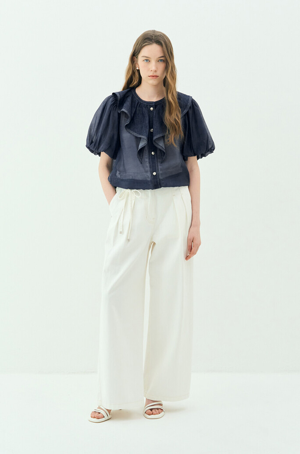 오즈세컨 데님 라이크 시어 러플 블라우스