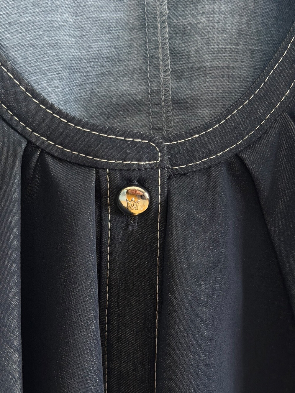 - 넥라인과 플래킷에 데님 텍스처 블록