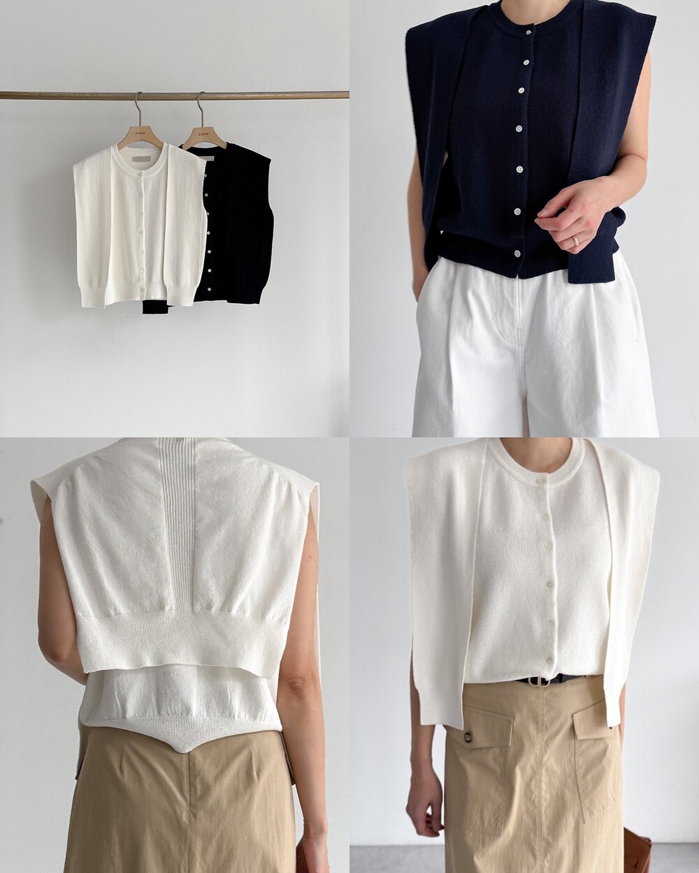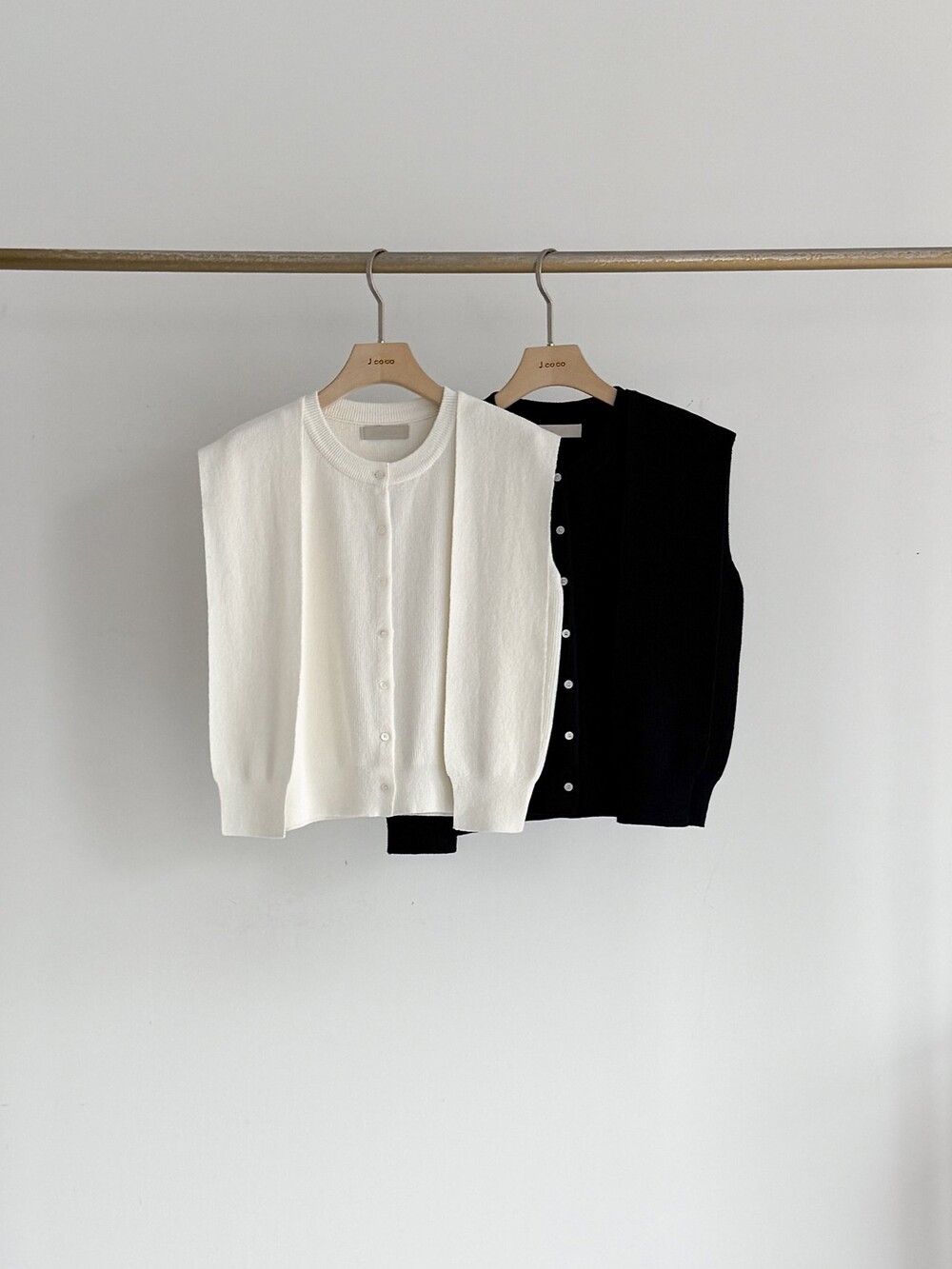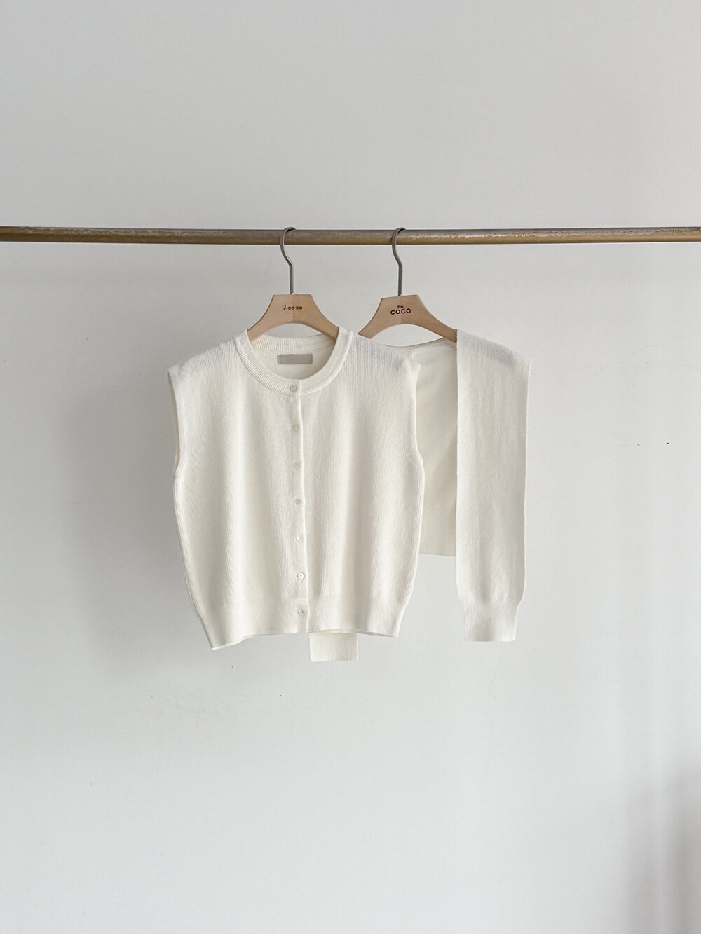 제이코코. 디테쳐블 머플러 슬리브리스 니트 탑
