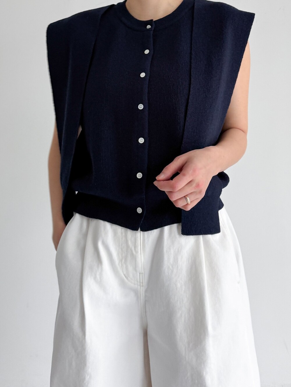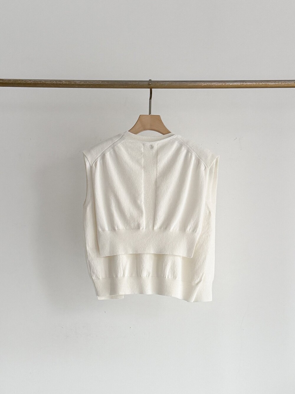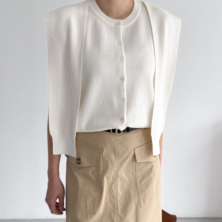 제이코코. 디테쳐블 머플러 슬리브리스 니트 탑