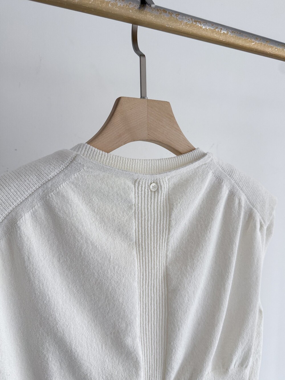 라운드넥 디자인과 앞면 버튼 클로징으로