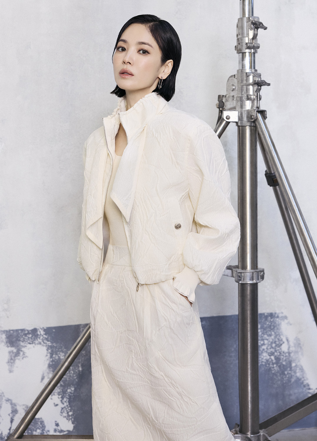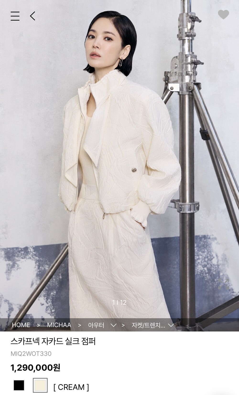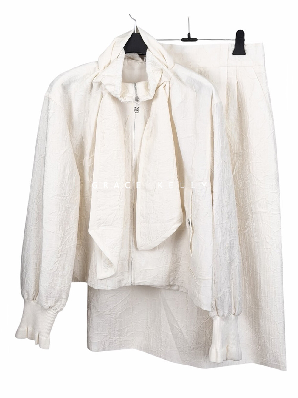 미샤 스카프넥 자카드 실크 점퍼 & 스커트