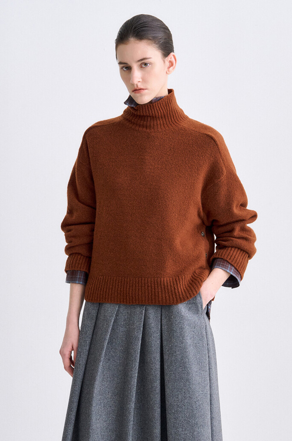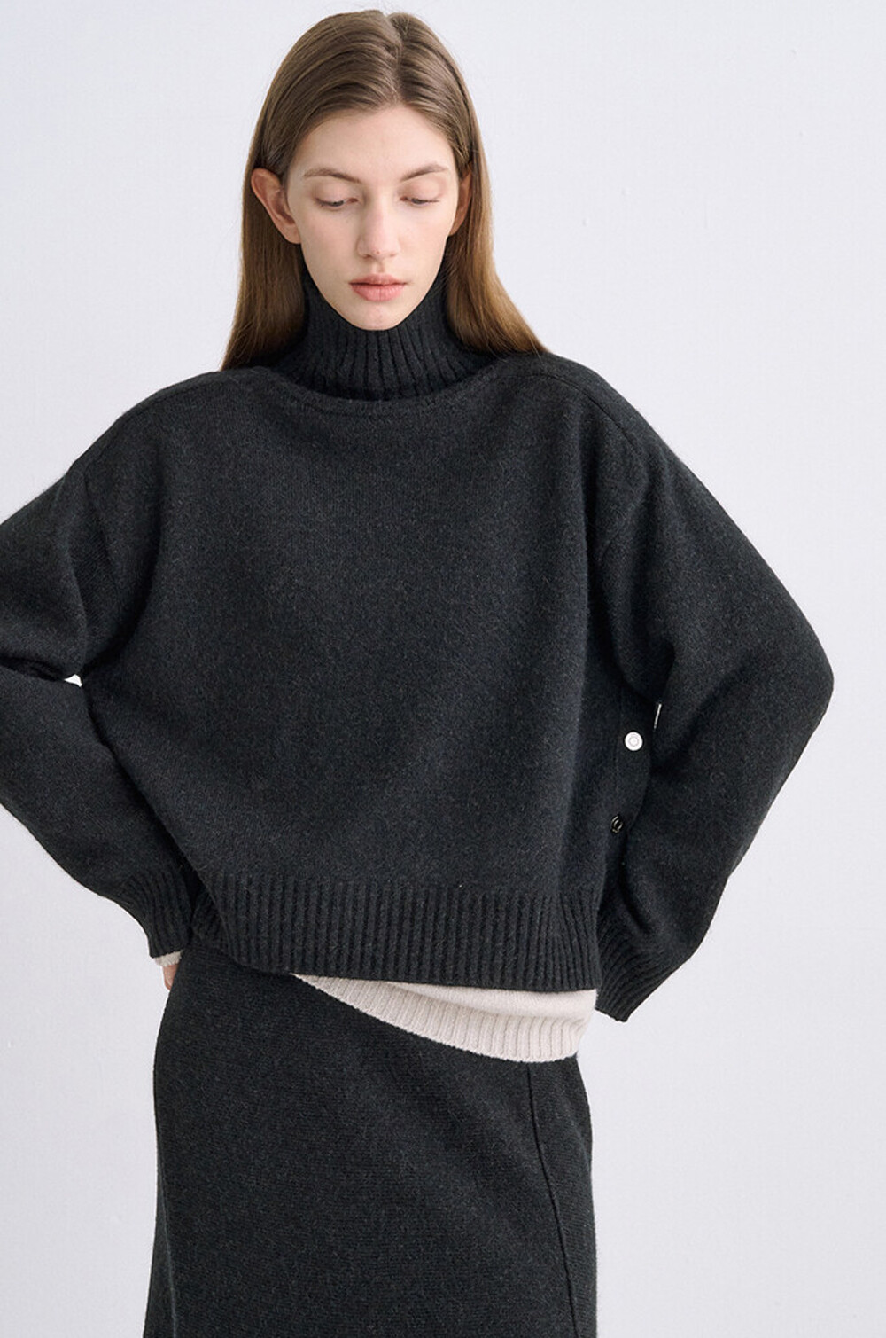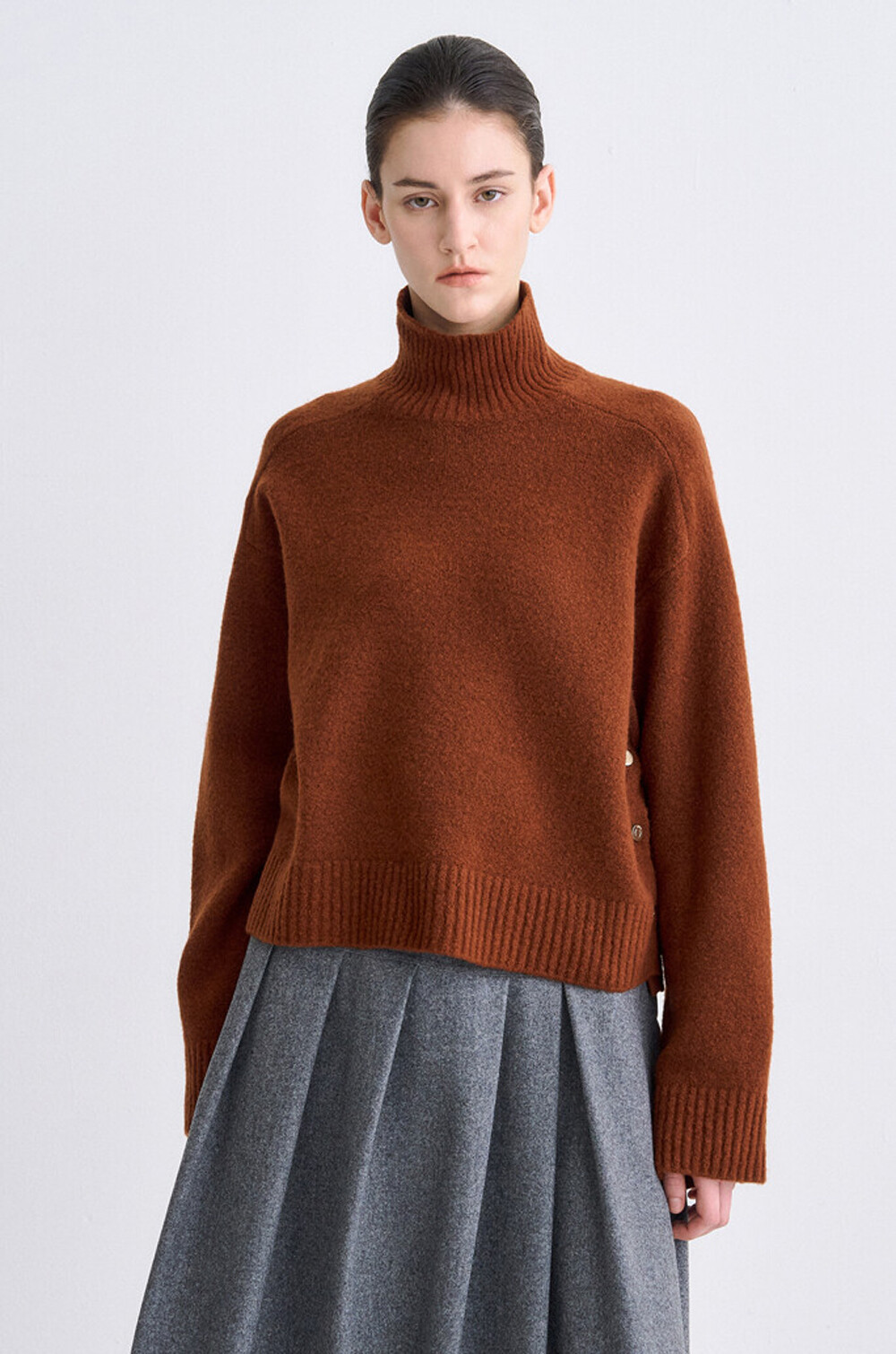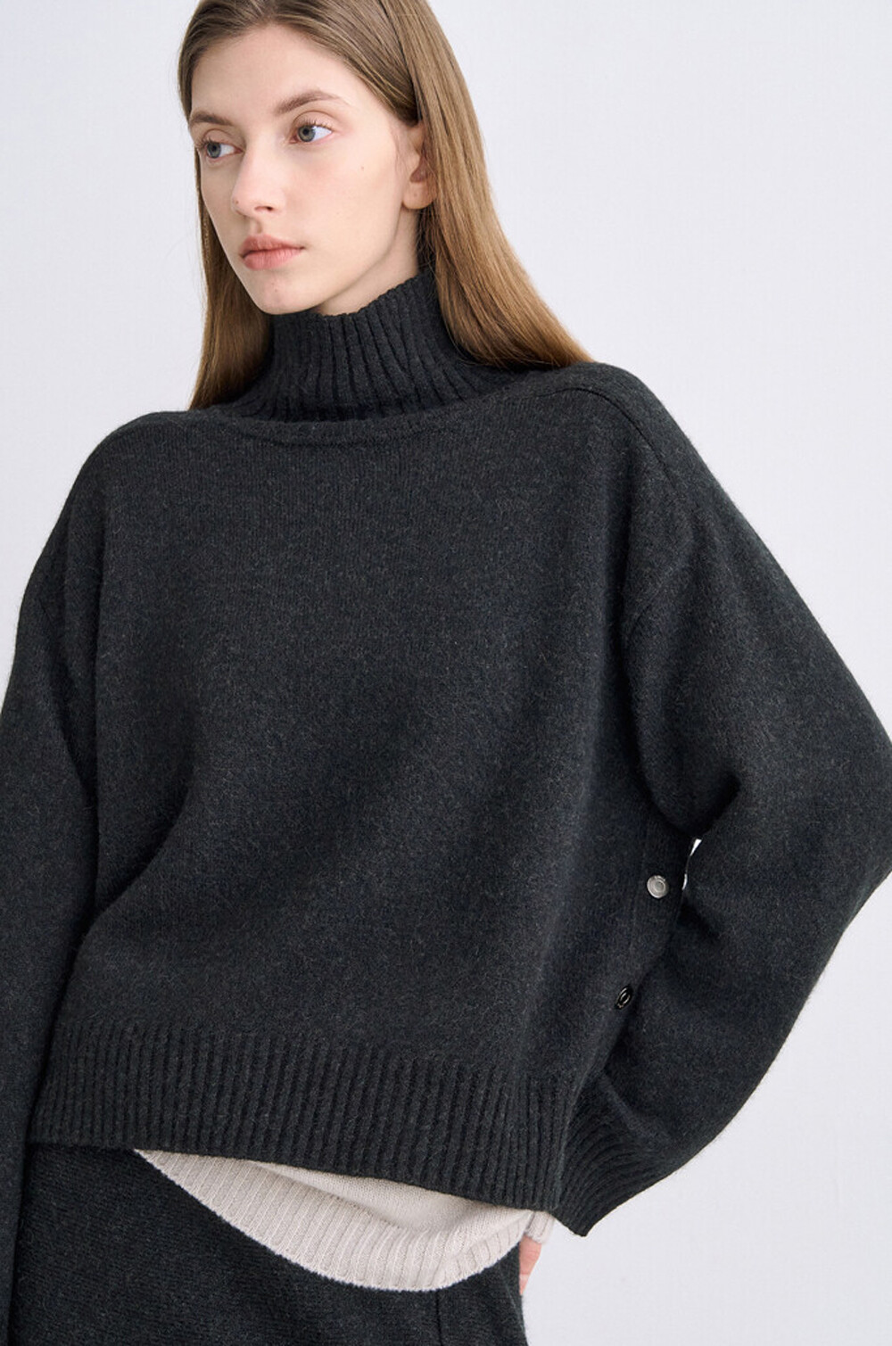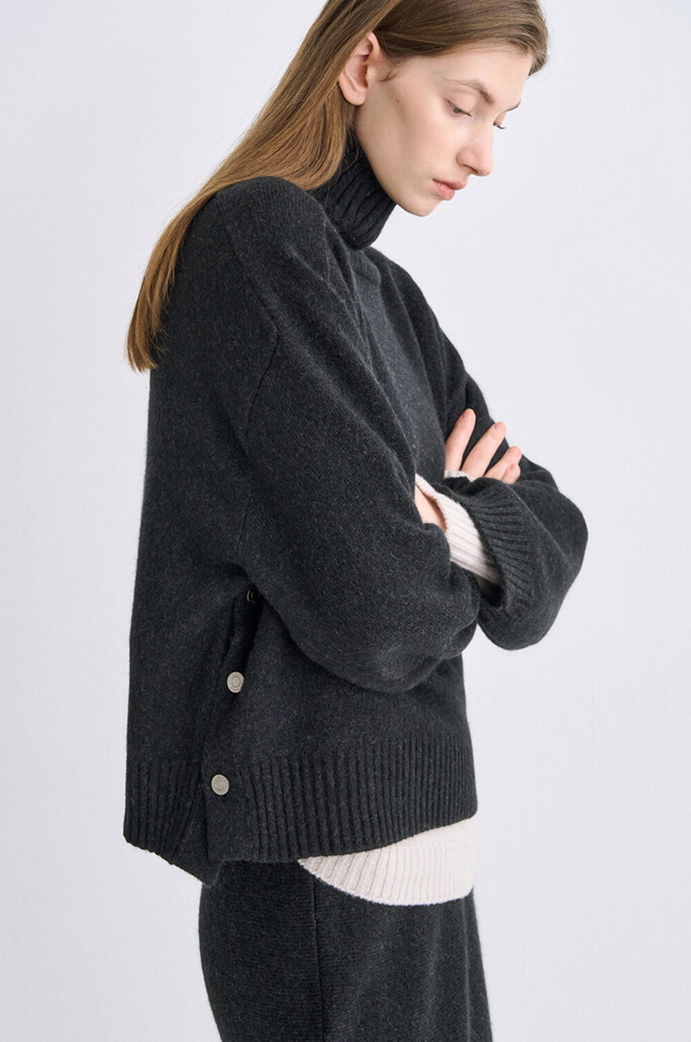타임 캐시미어 블렌드 사이드 버튼 하이넥 니트 탑