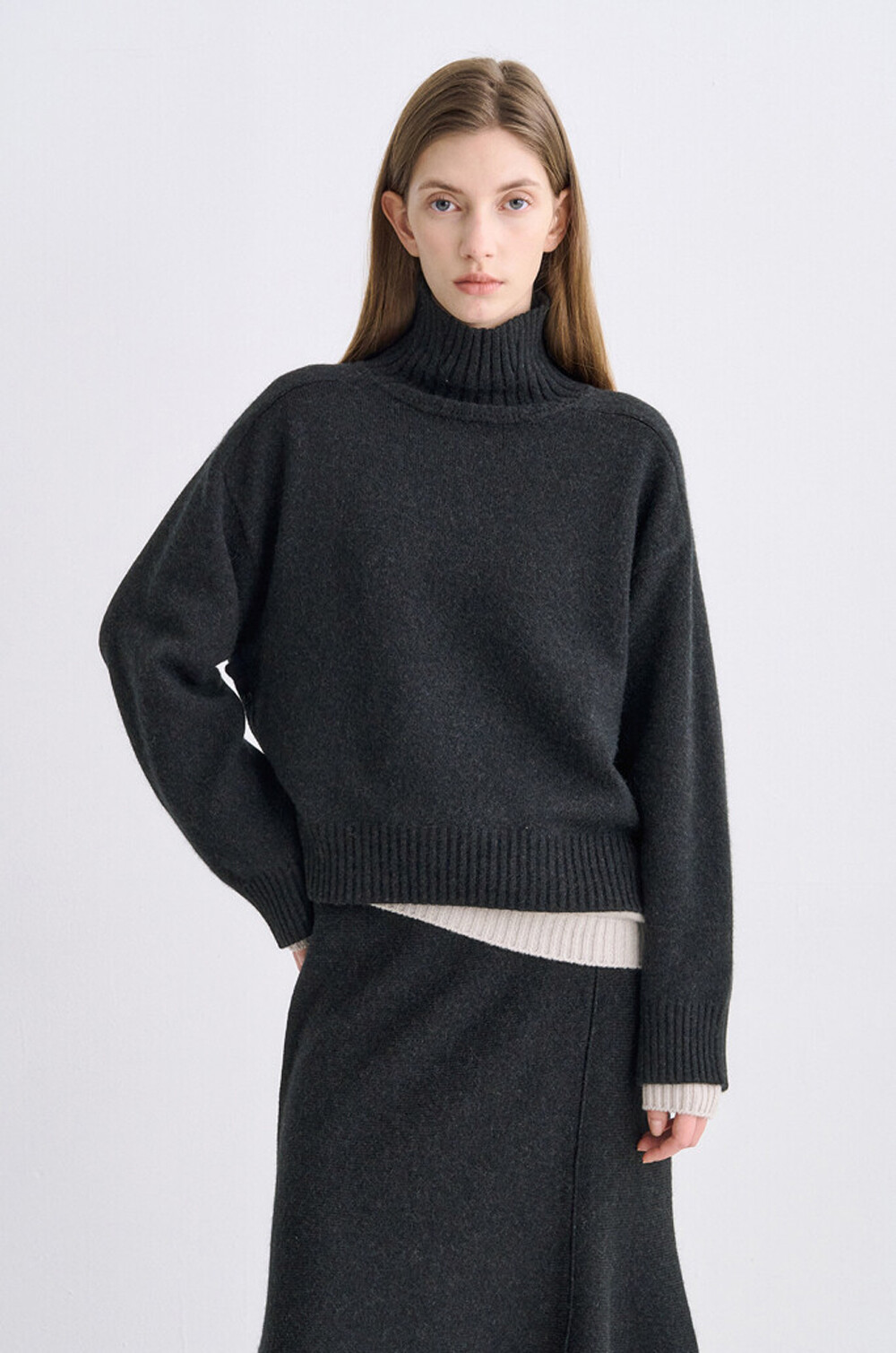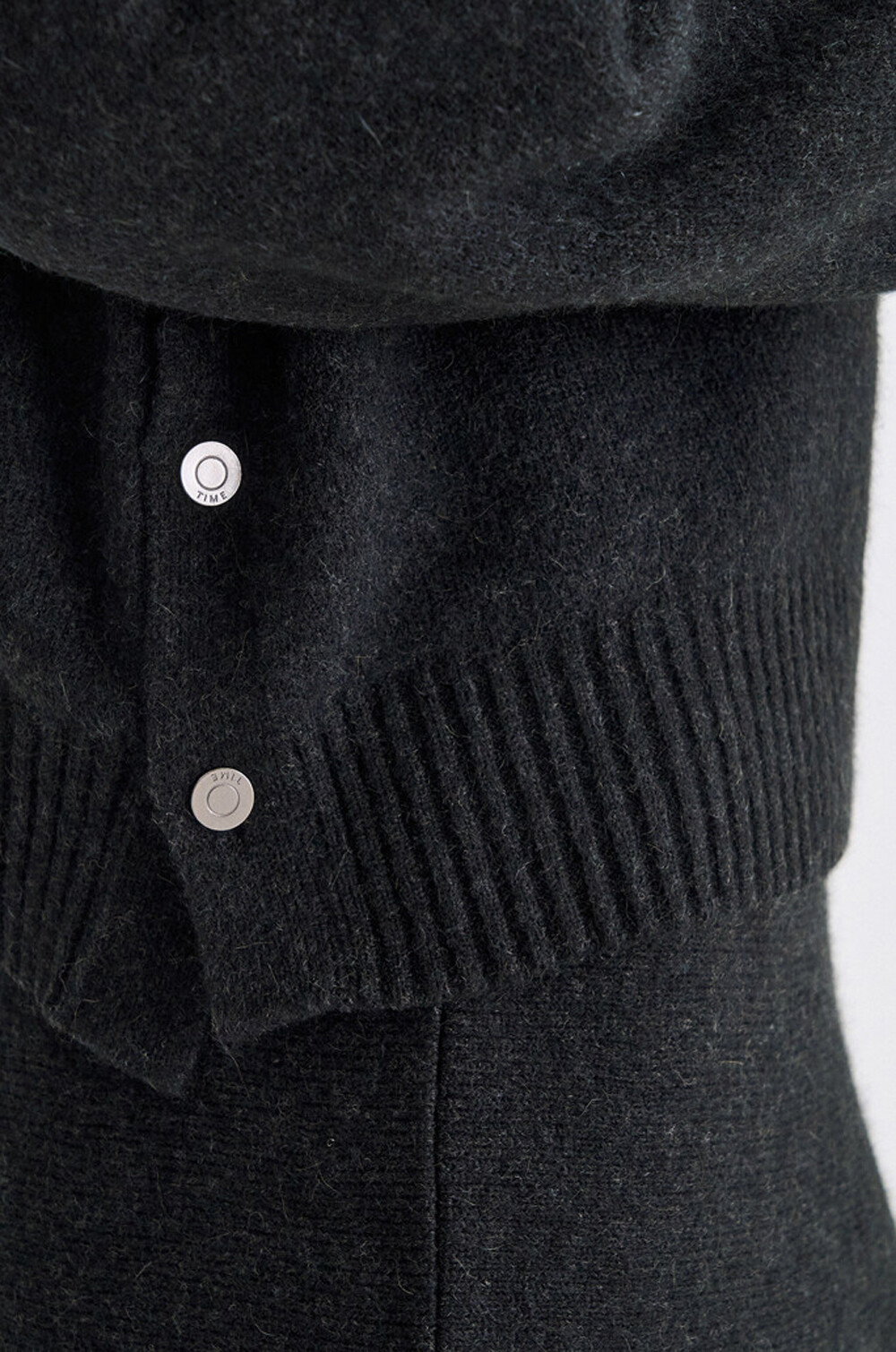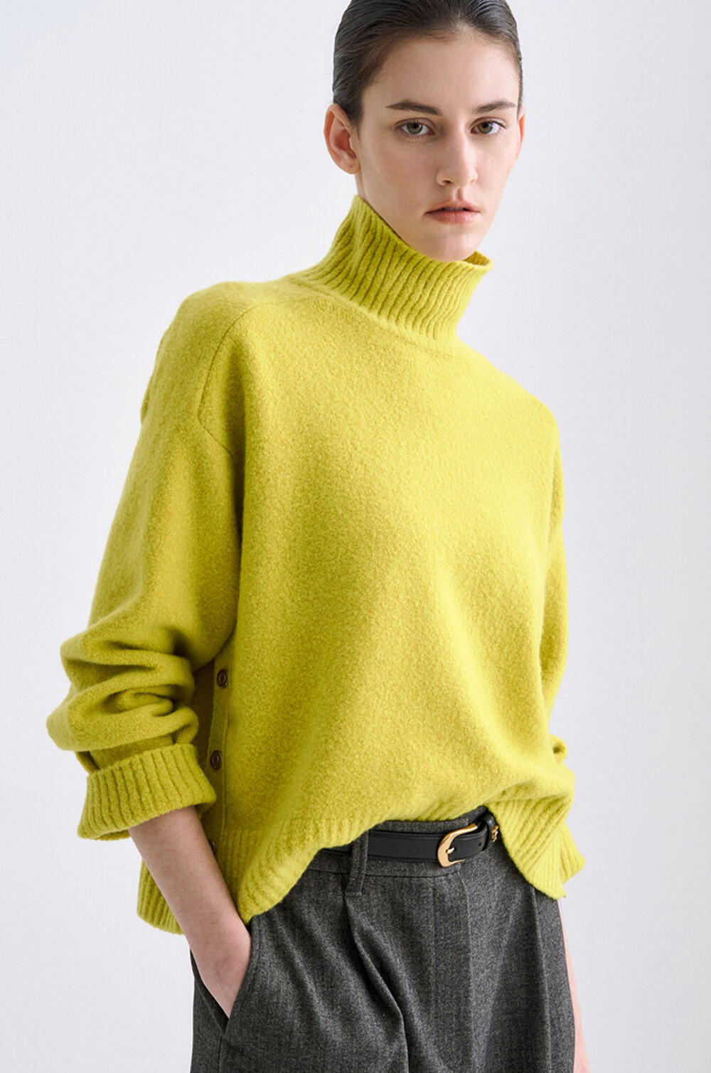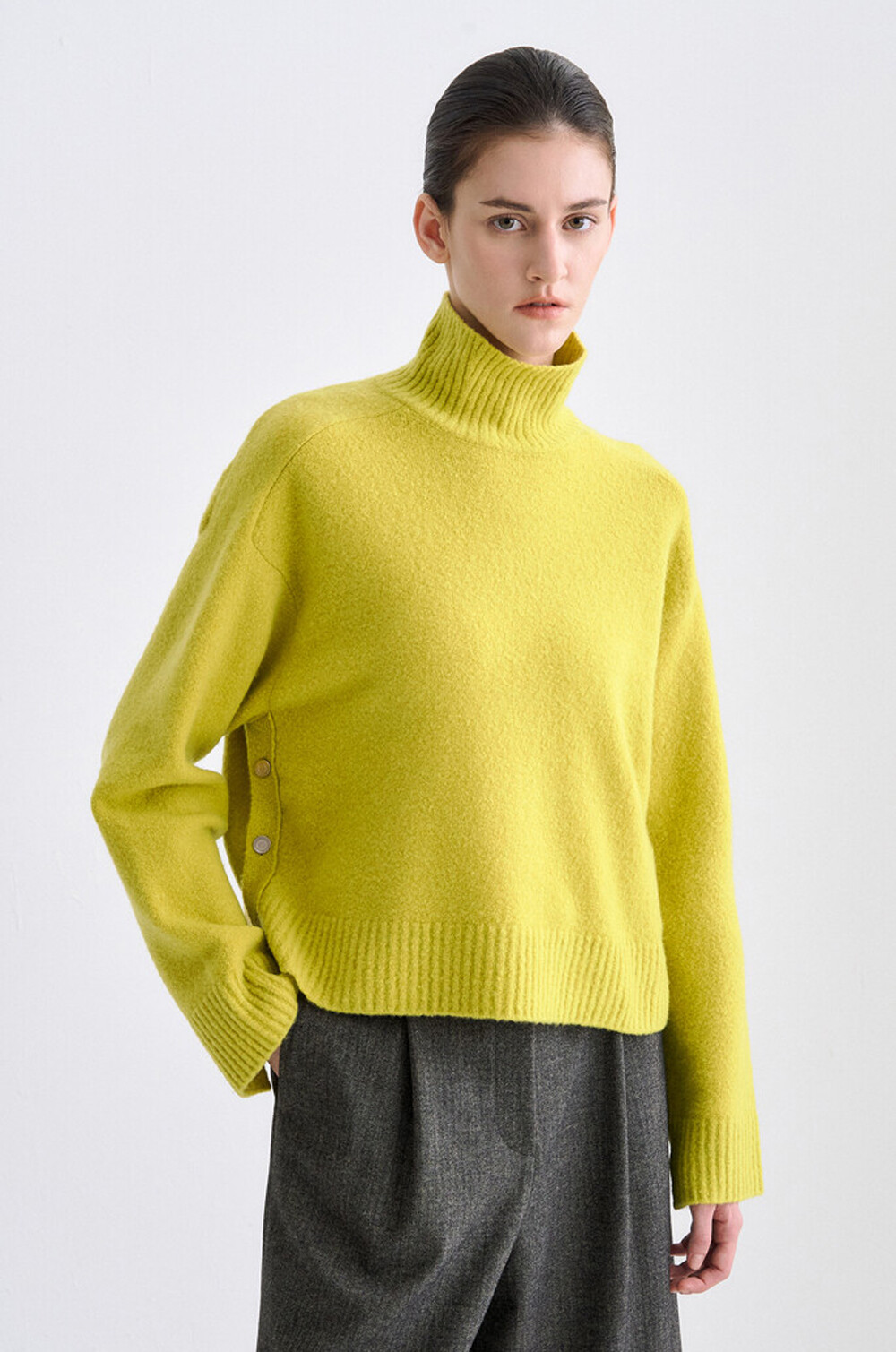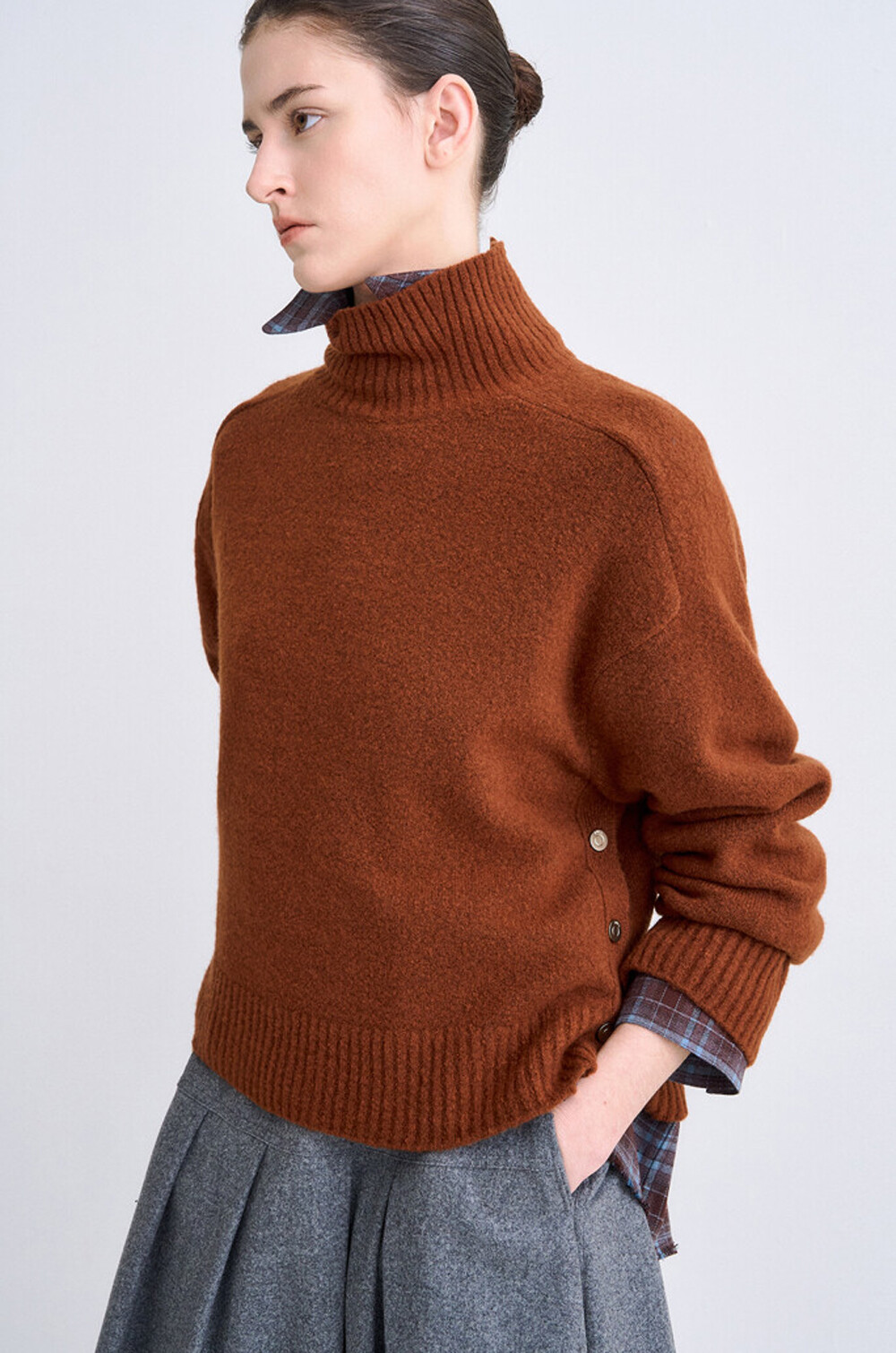 타임 캐시미어 블렌드 사이드 버튼 하이넥 니트 탑