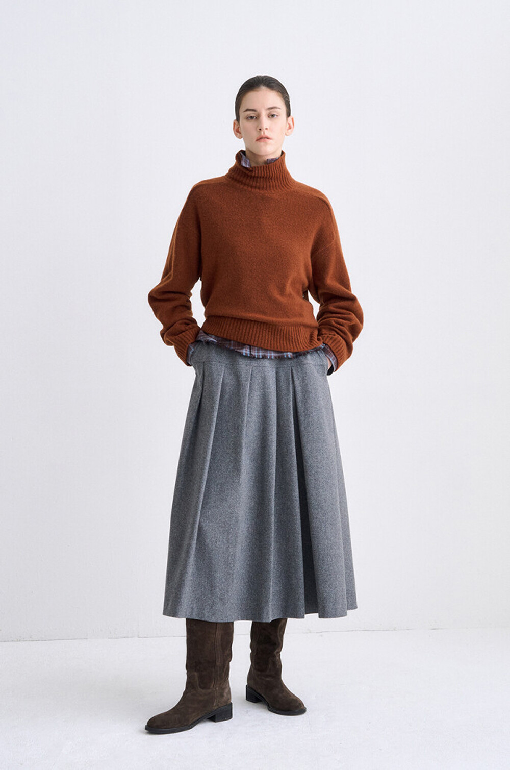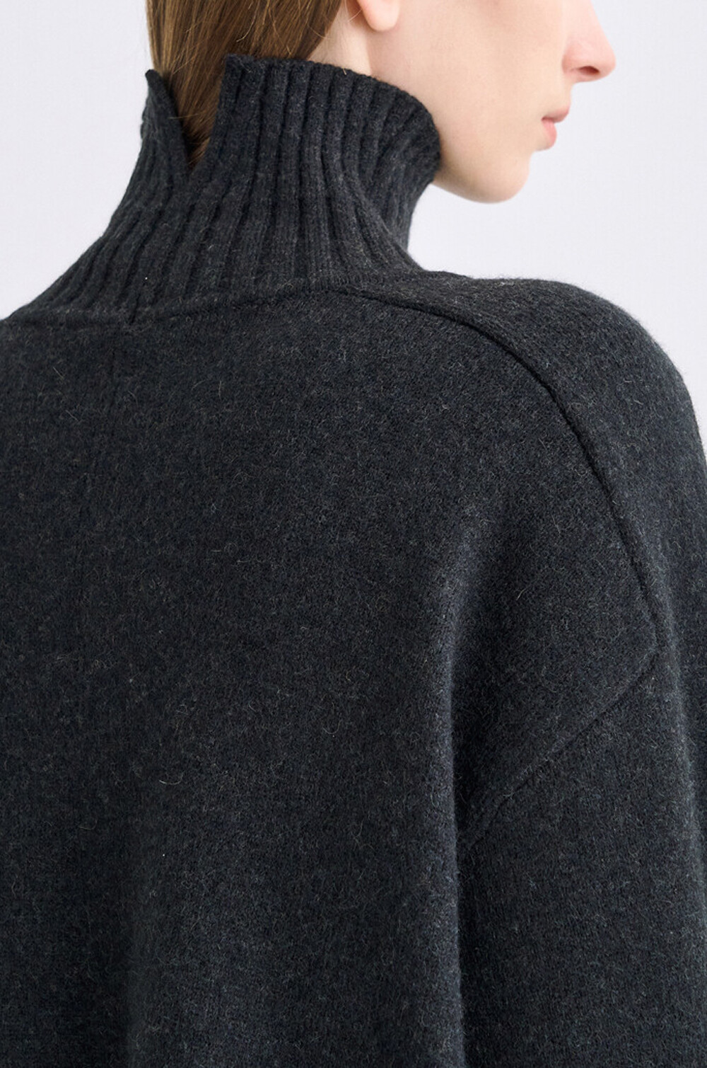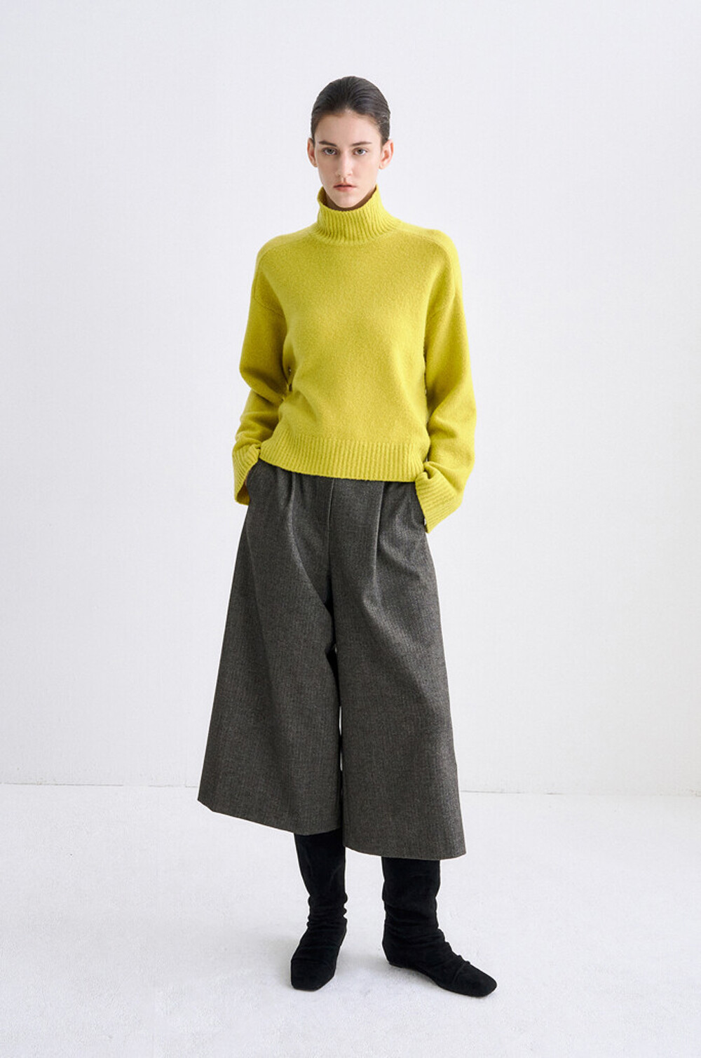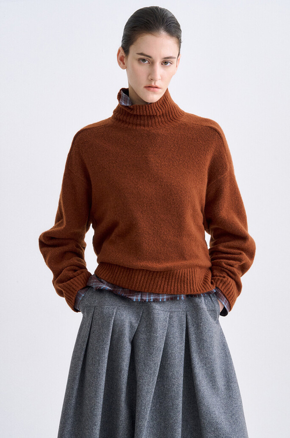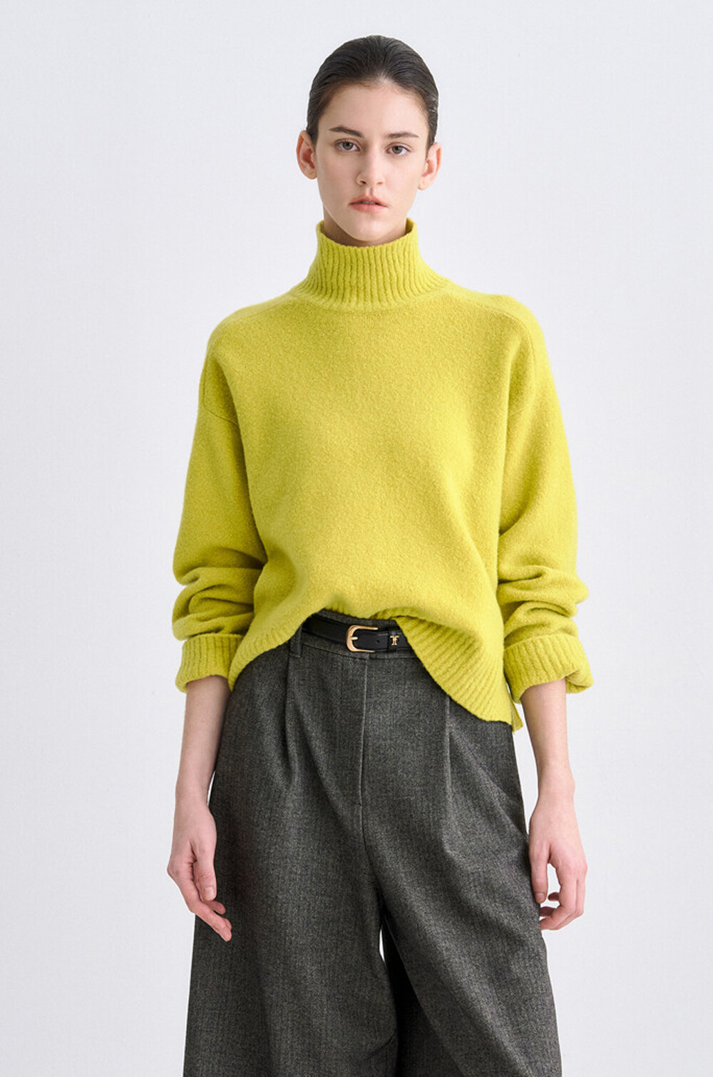 타임 캐시미어 블렌드 사이드 버튼 하이넥 니트 탑