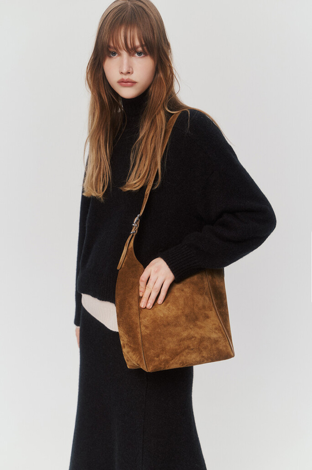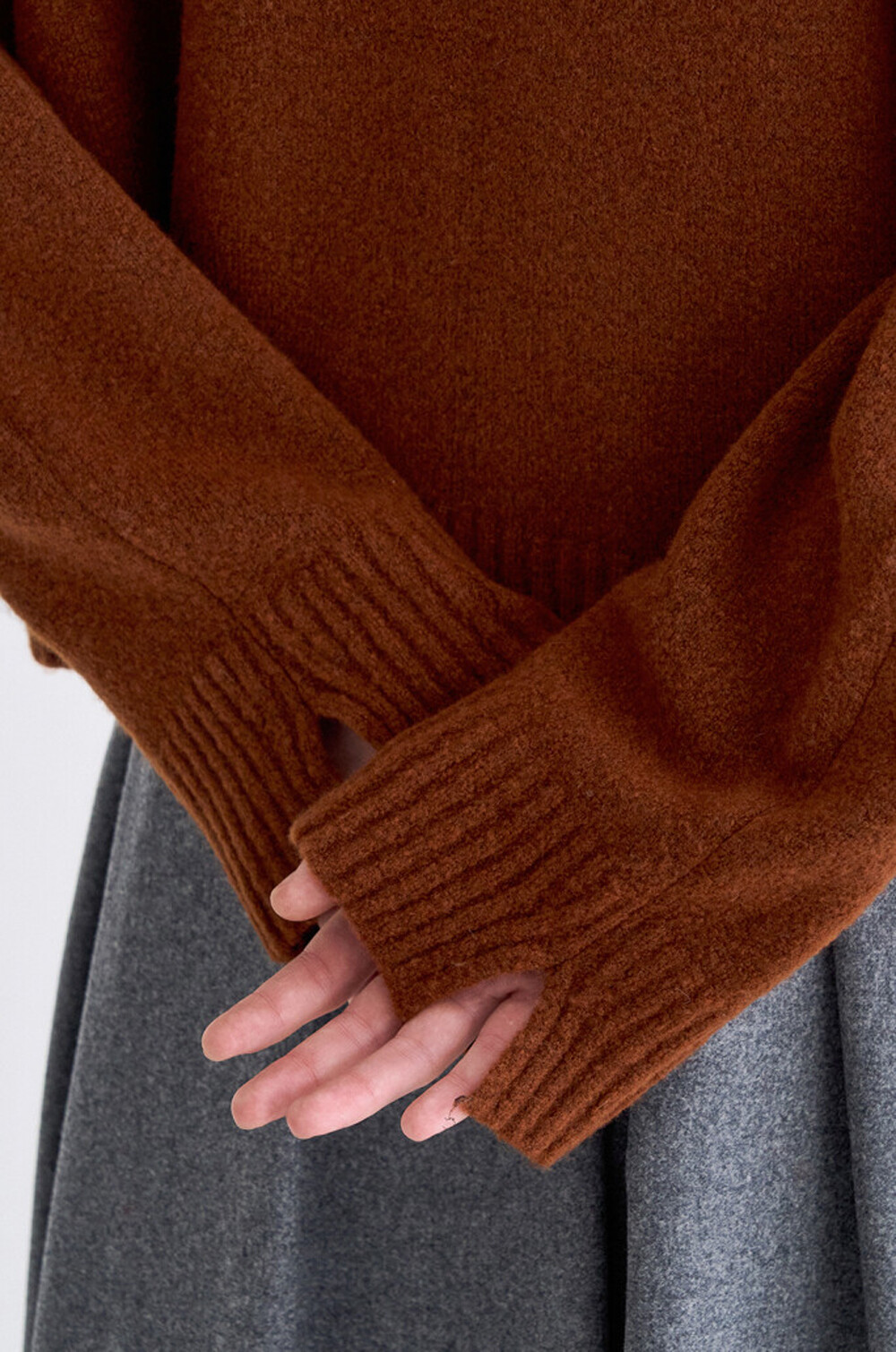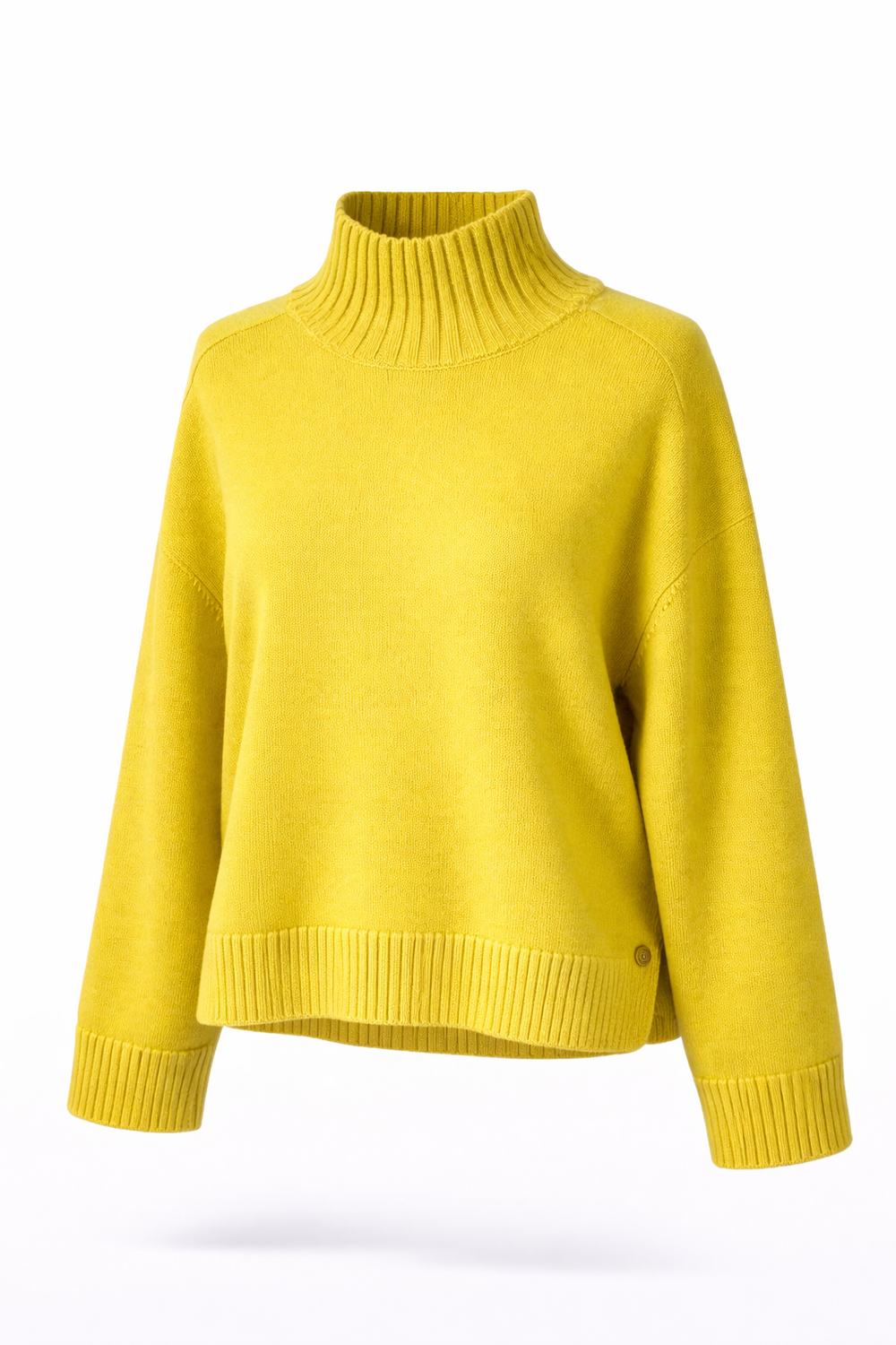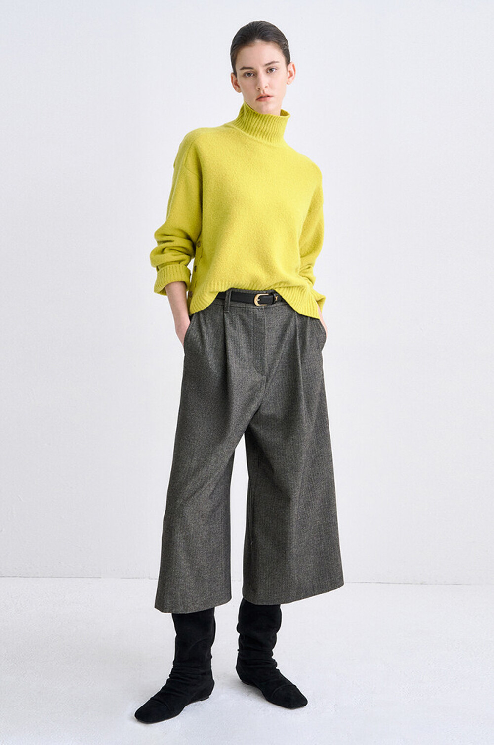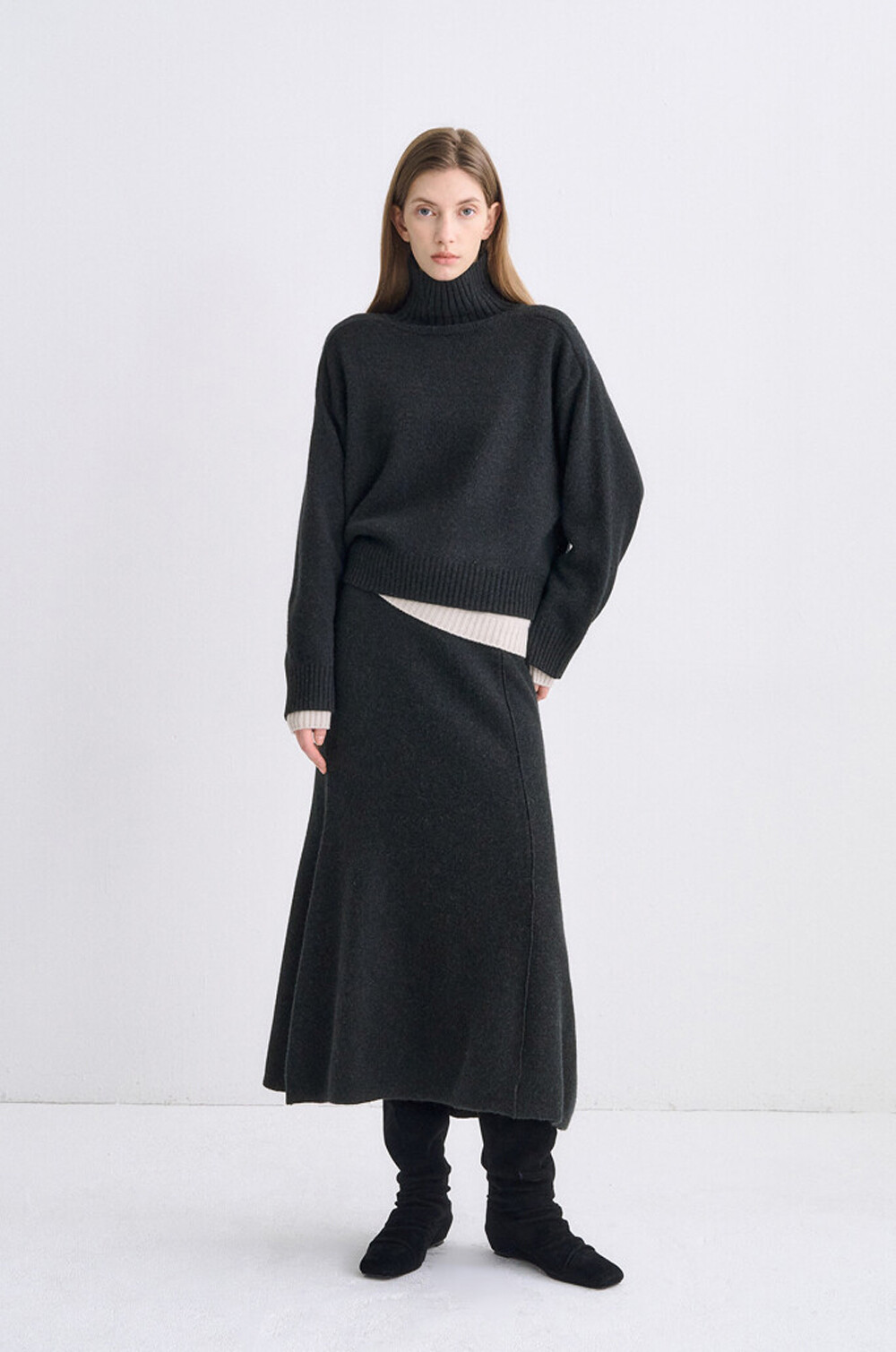 타임 캐시미어 블렌드 사이드 버튼 하이넥 니트 탑