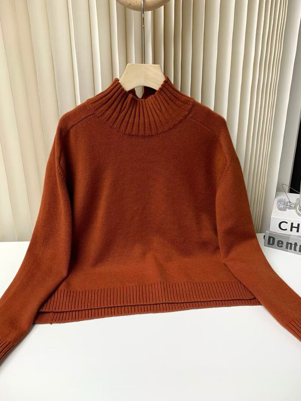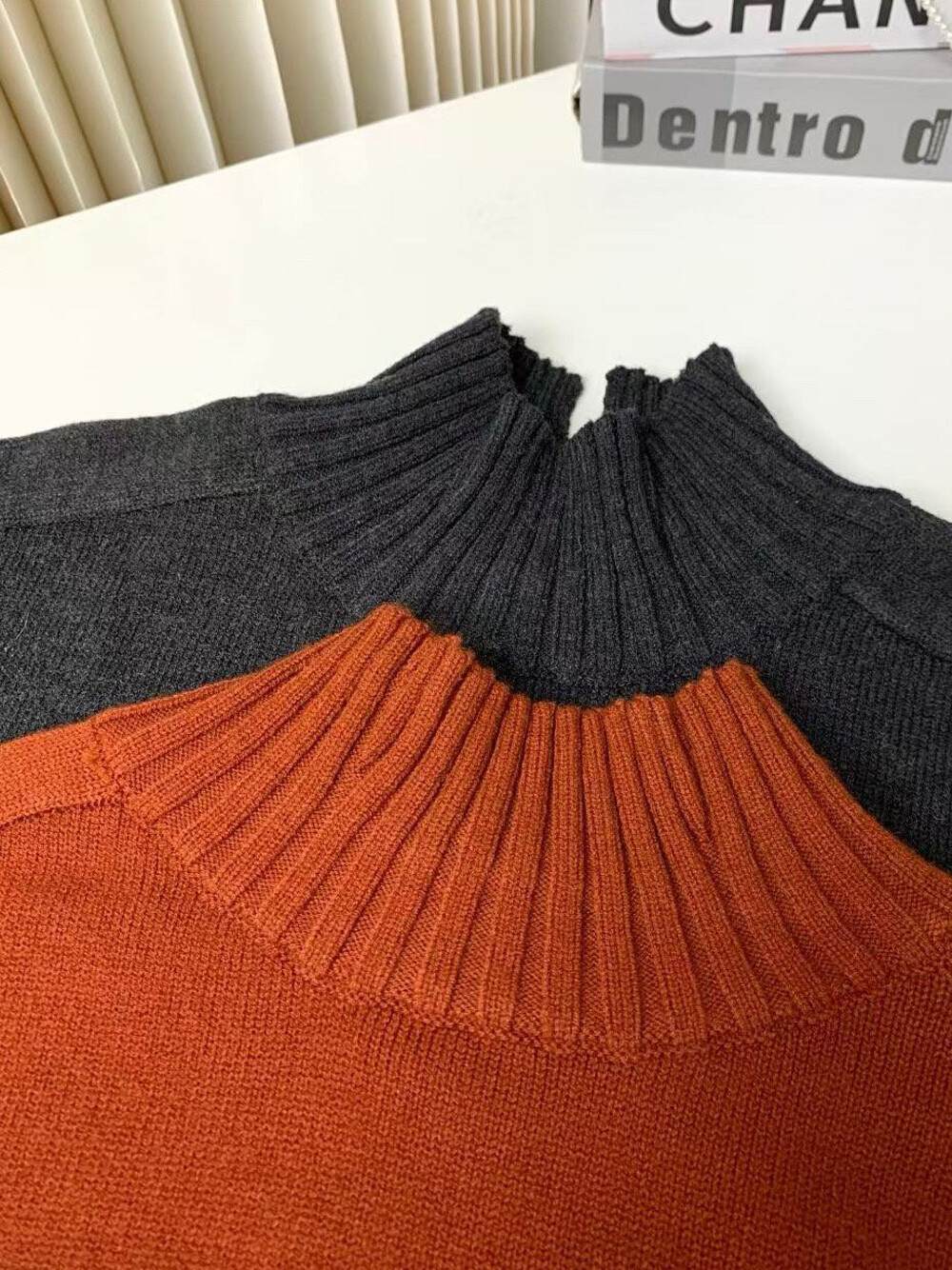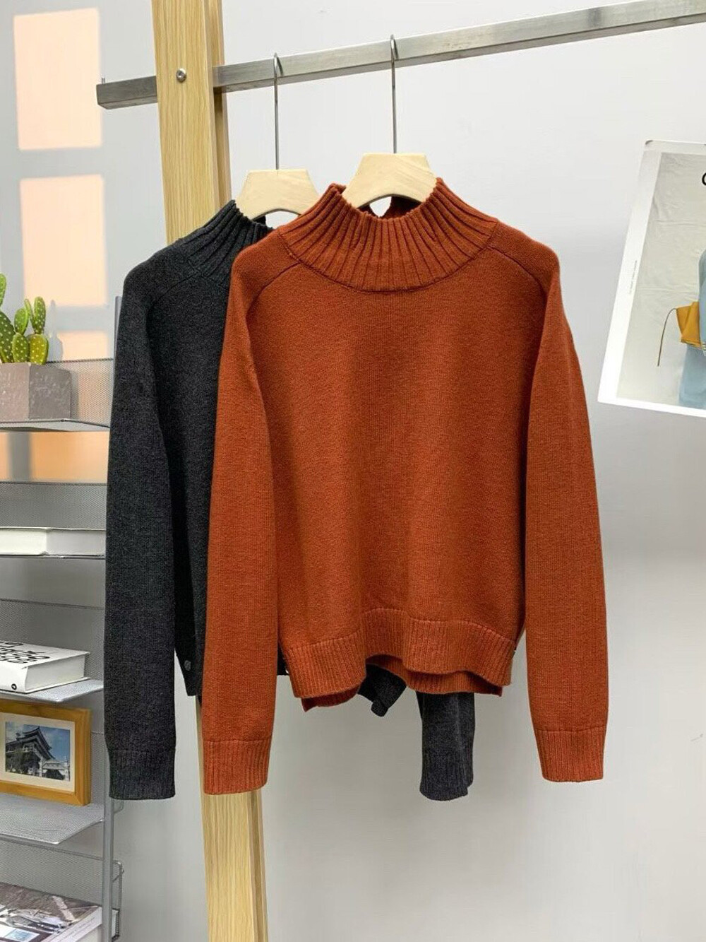TIME. Cashmere Blend Side Button High Neck Knit Top