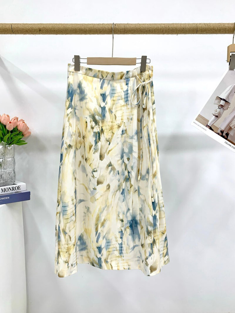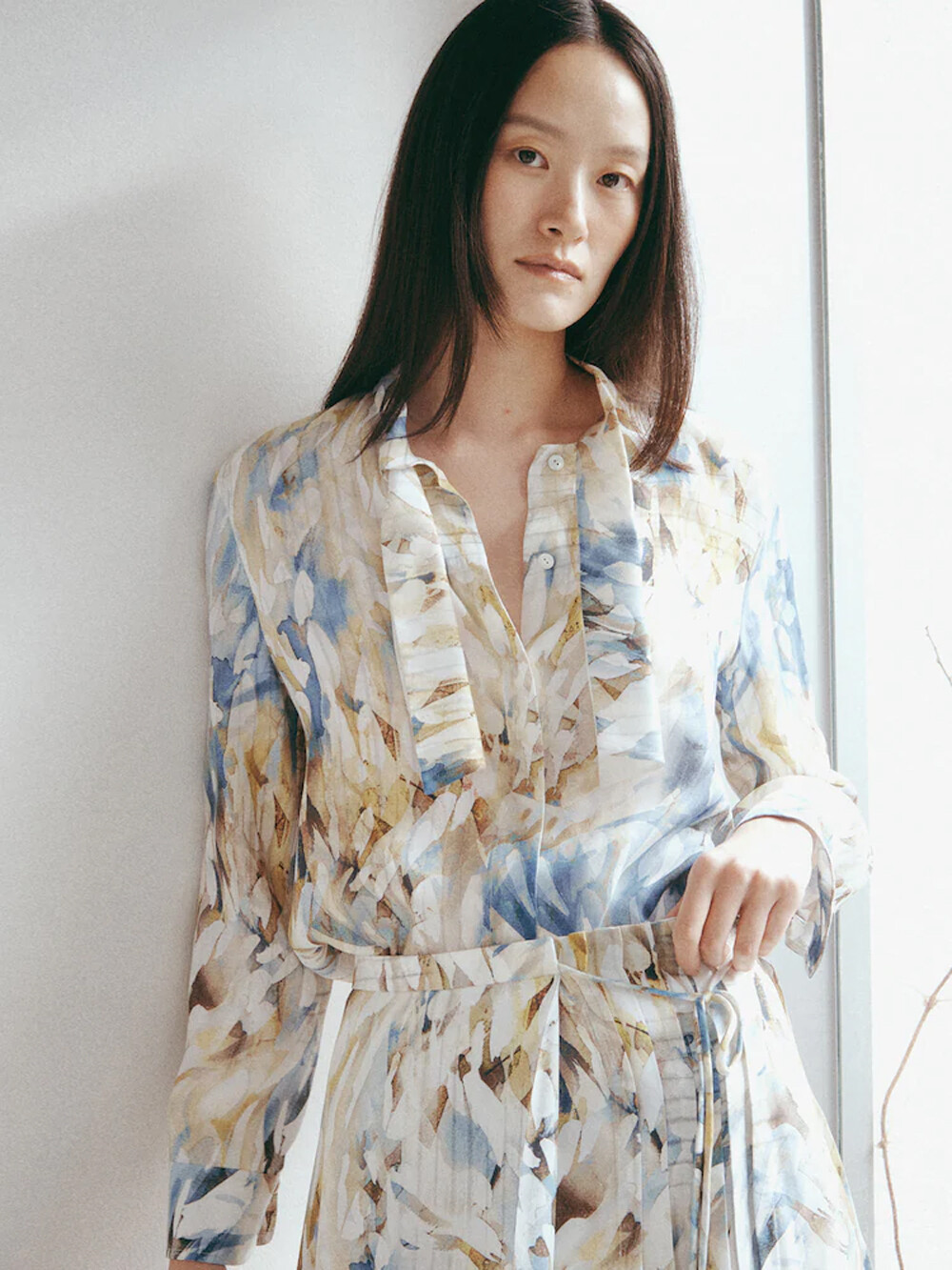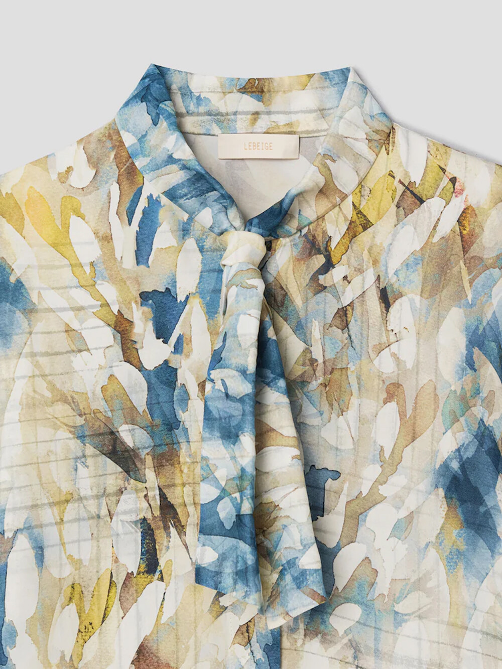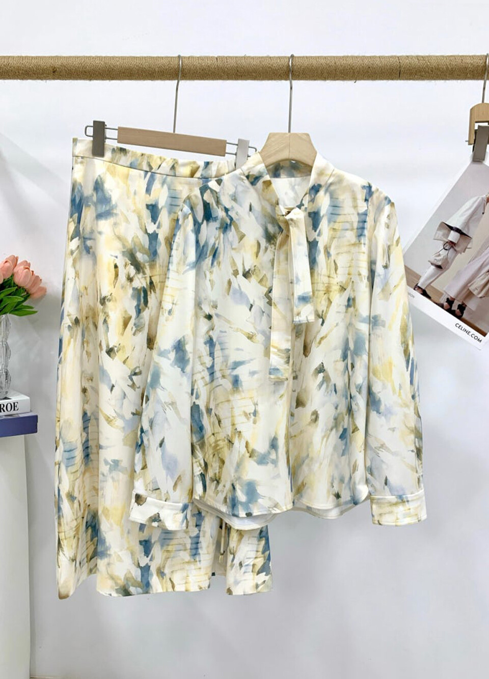 LEBEIGE. Print Neck Scarf Blouse & Skirt