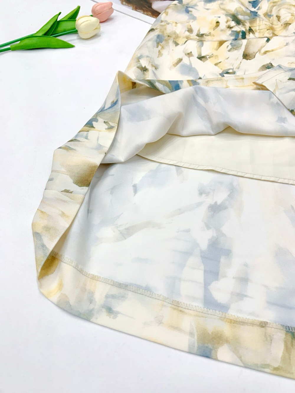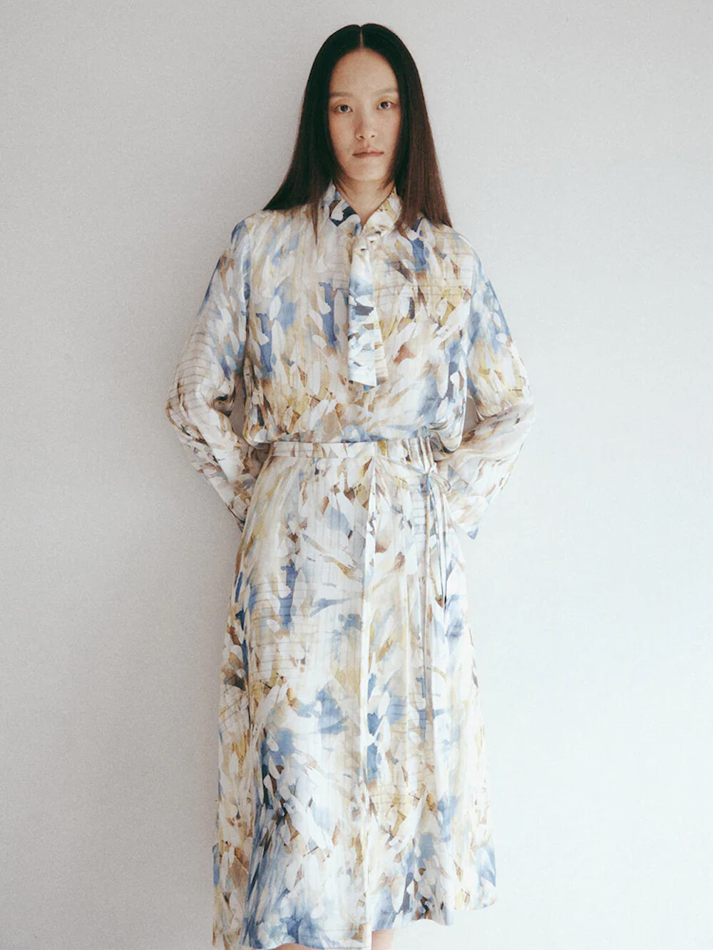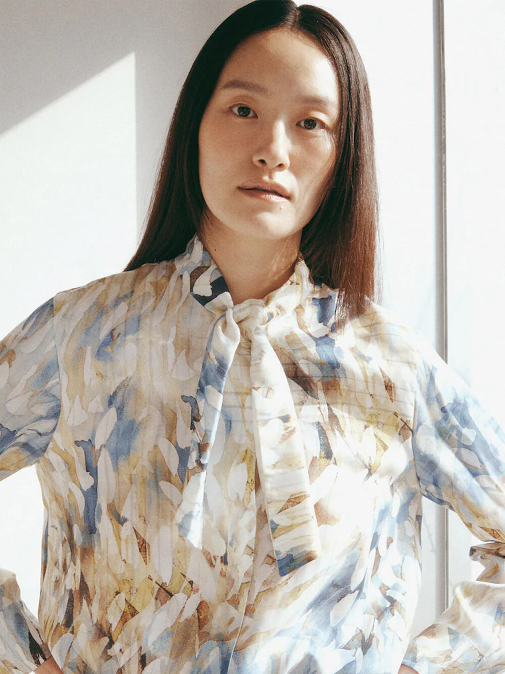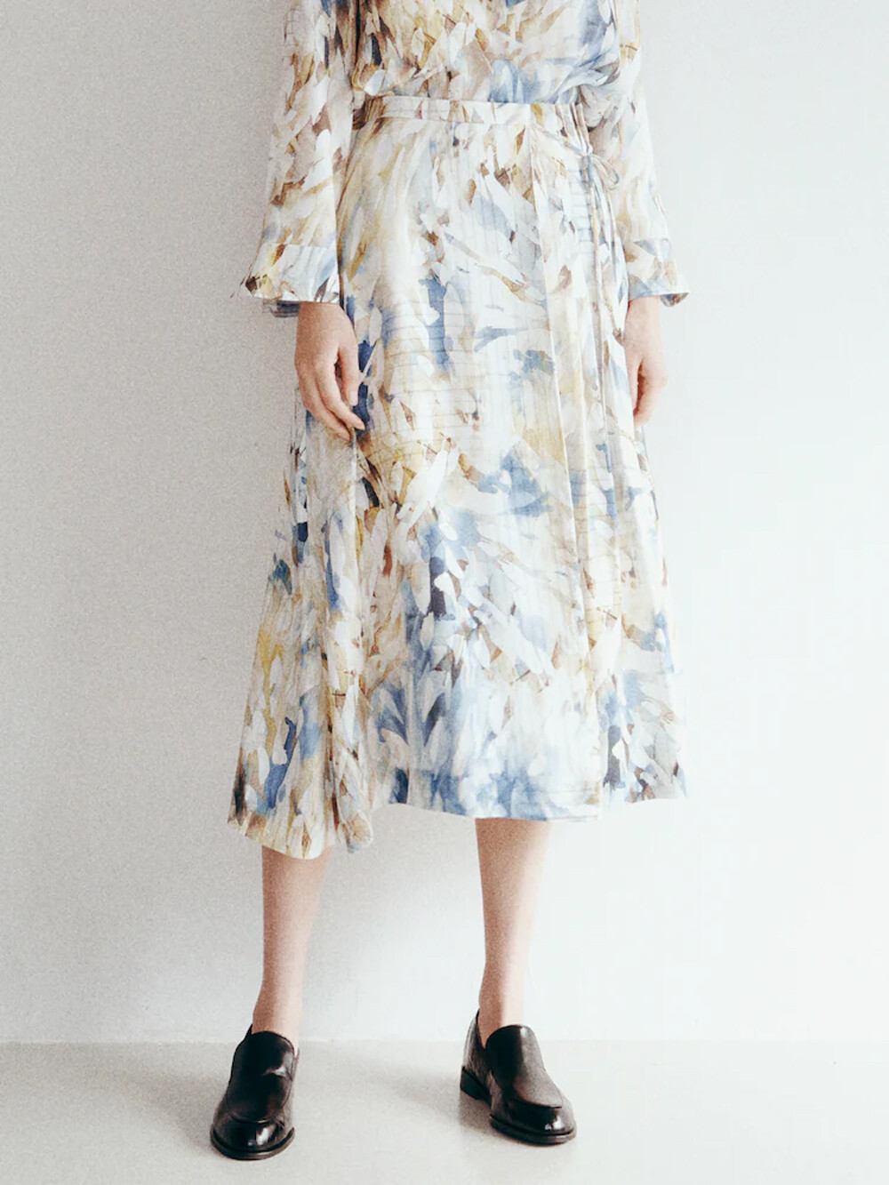 LEBEIGE. Print Neck Scarf Blouse & Skirt
