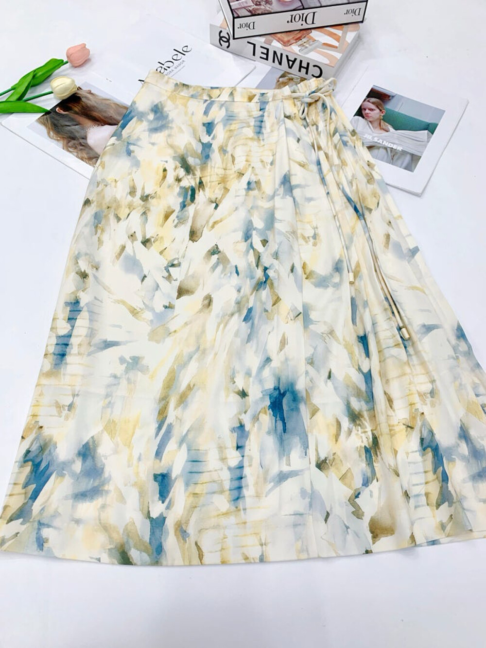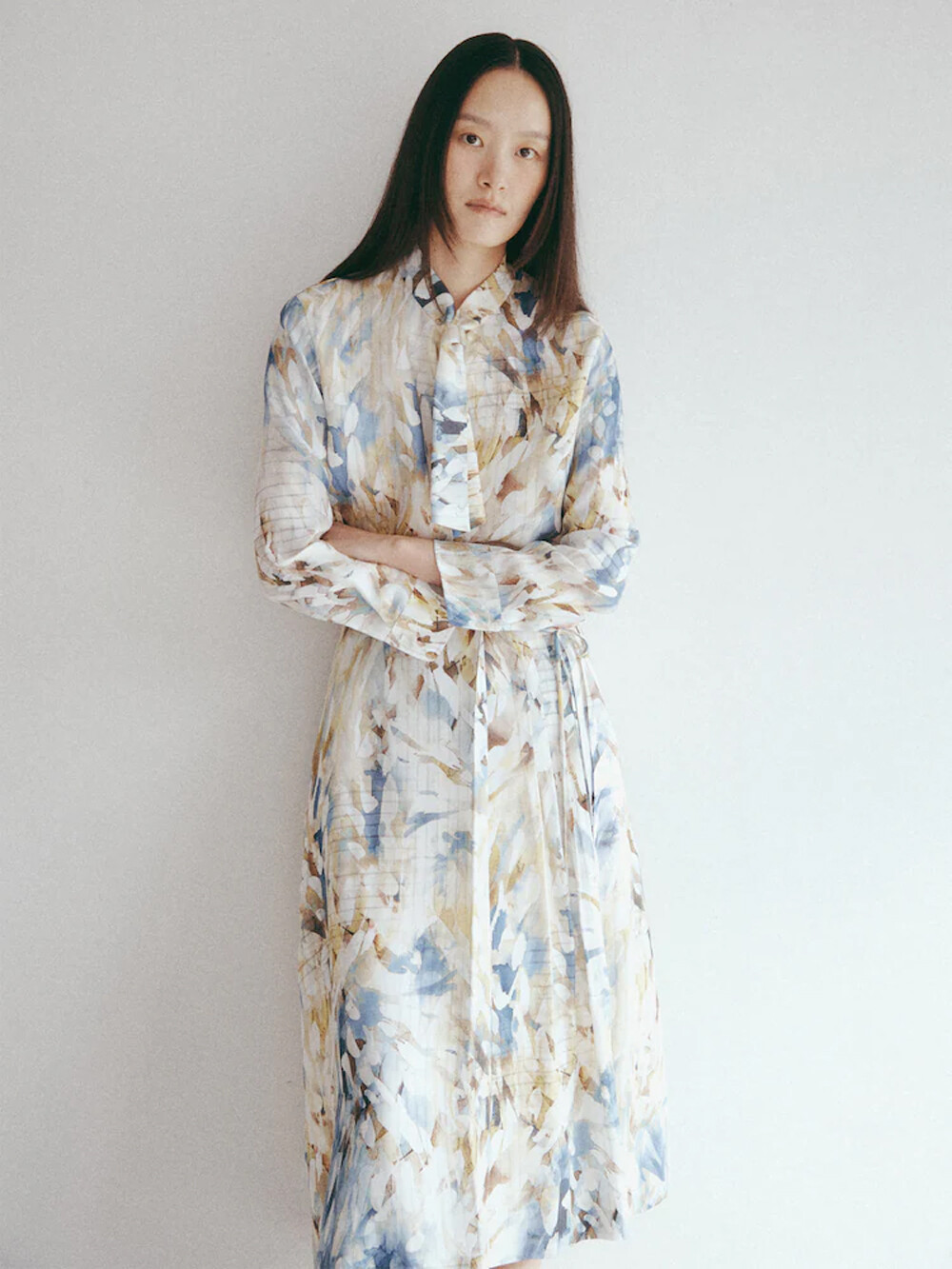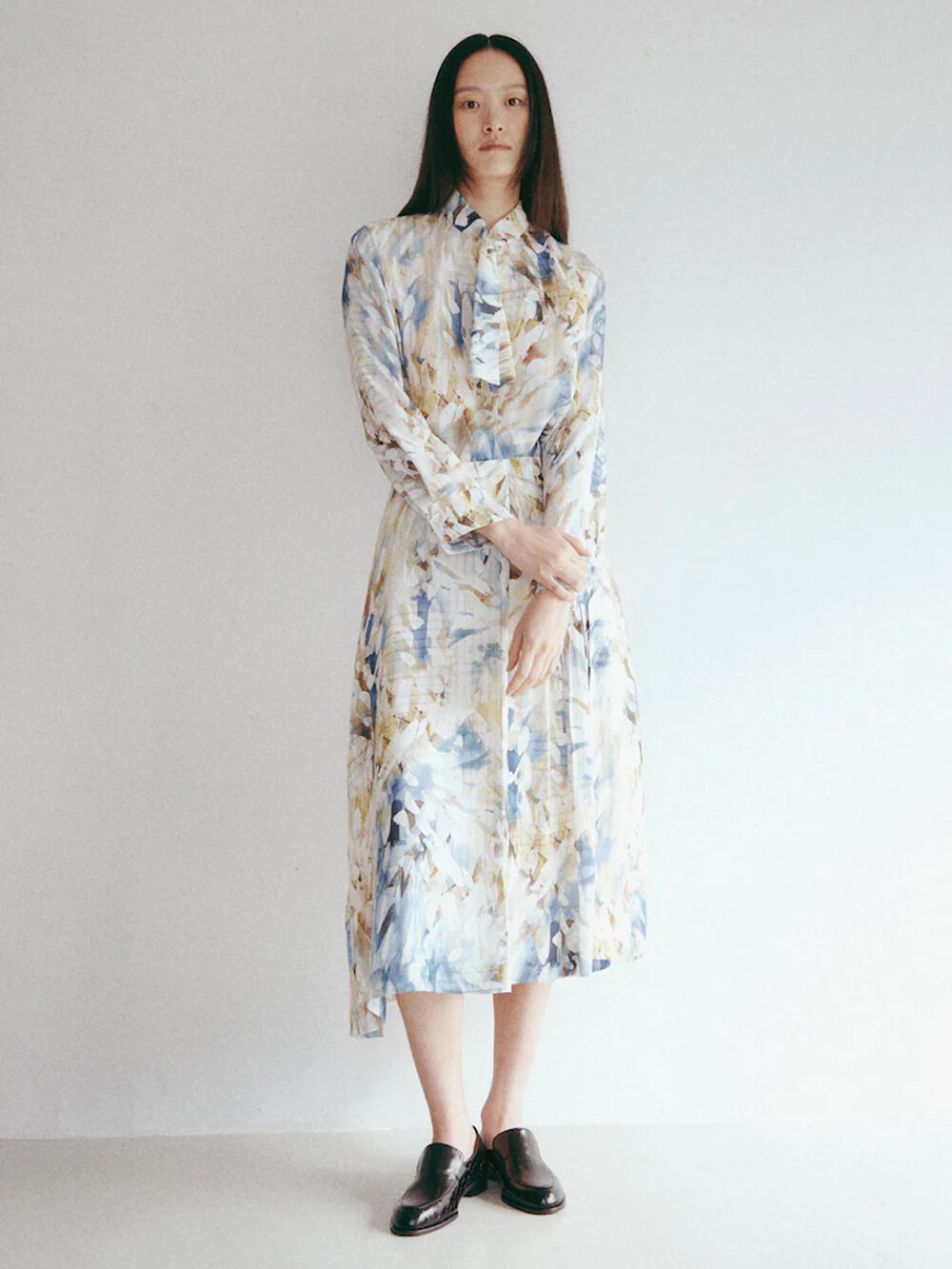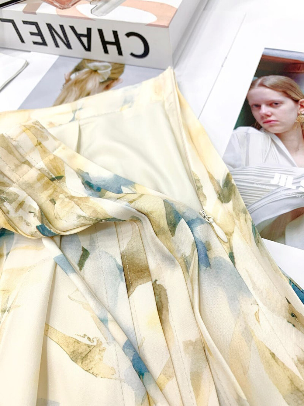 LEBEIGE. Print Neck Scarf Blouse & Skirt