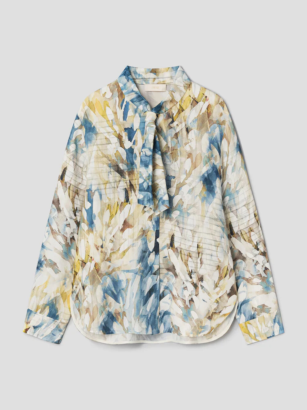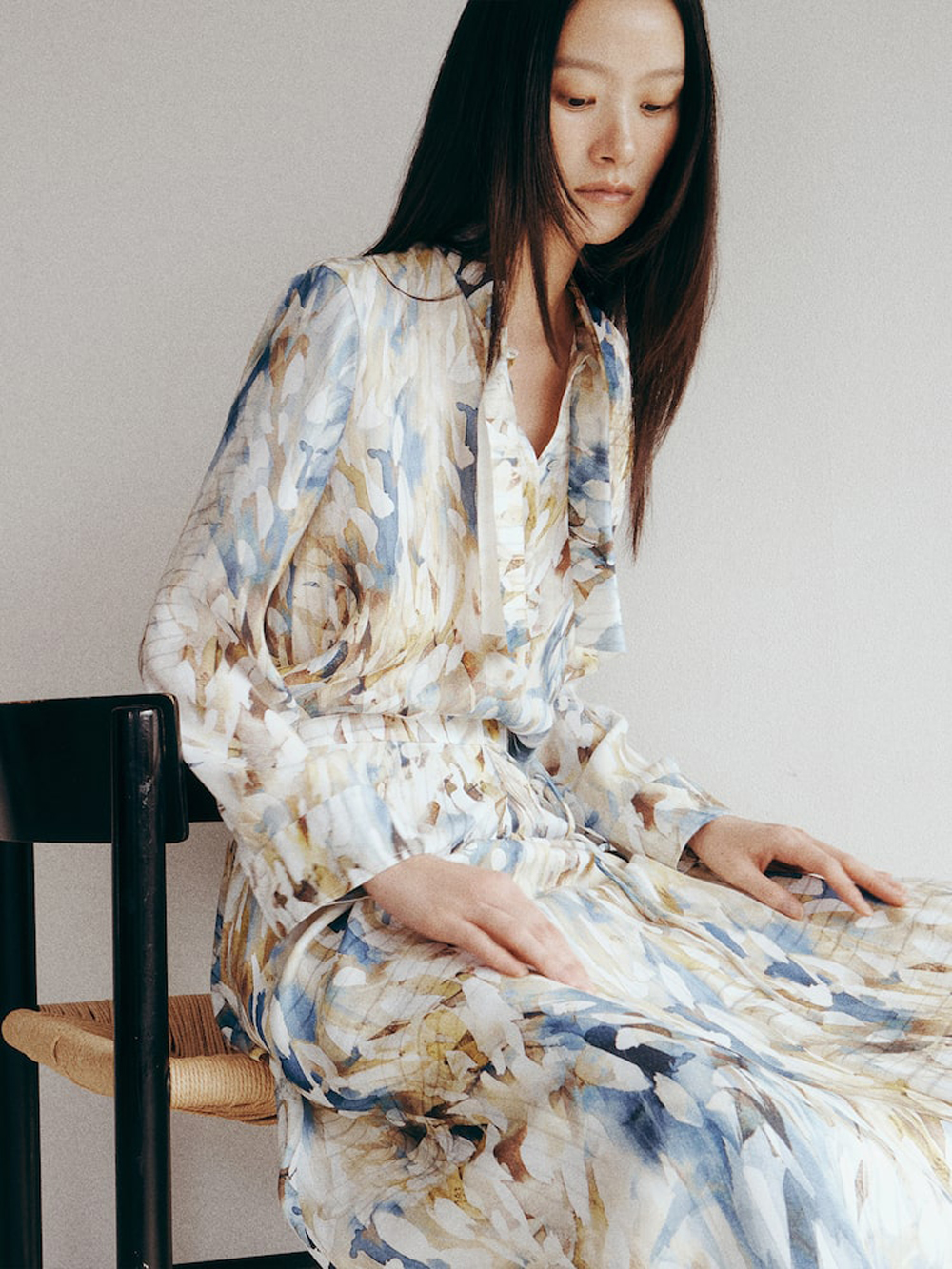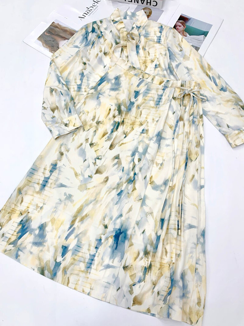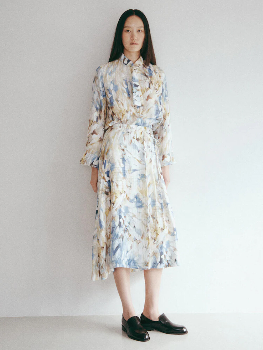 LEBEIGE. Print Neck Scarf Blouse & Skirt