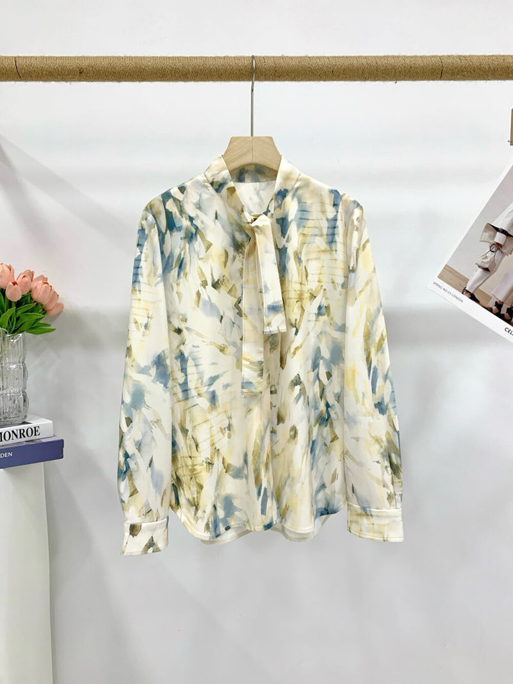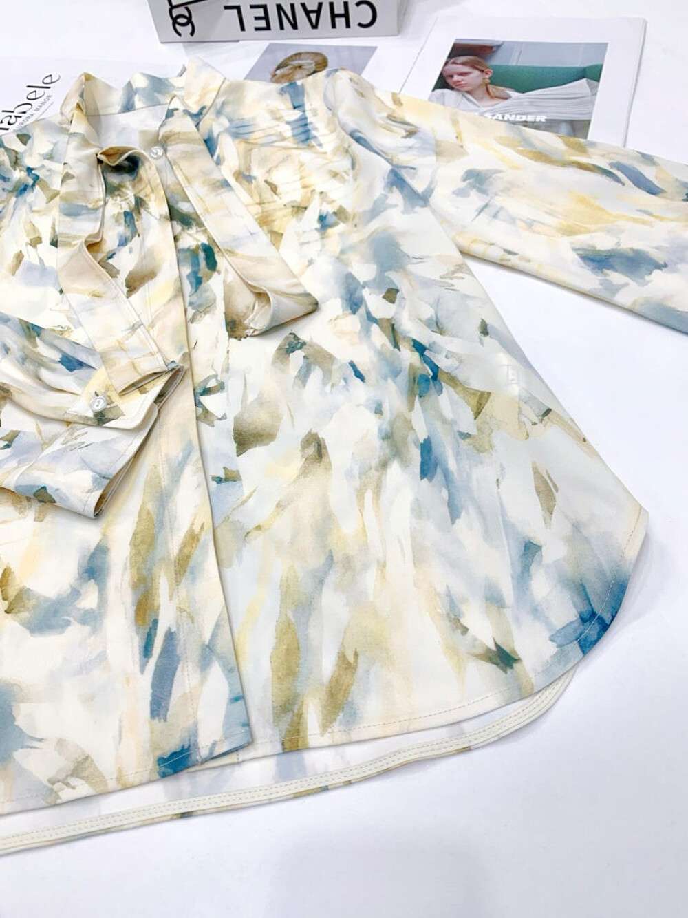 르베이지 프린트 넥 스카프 블라우스 & 스커트