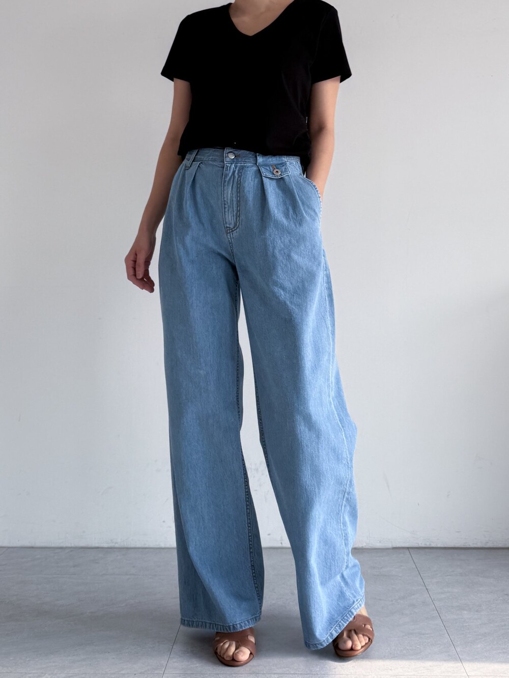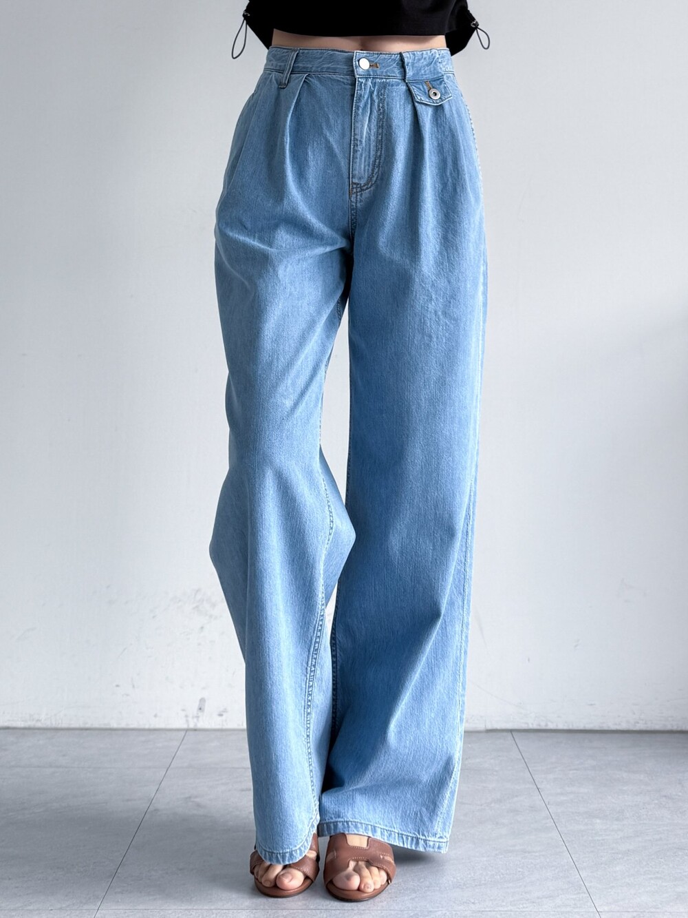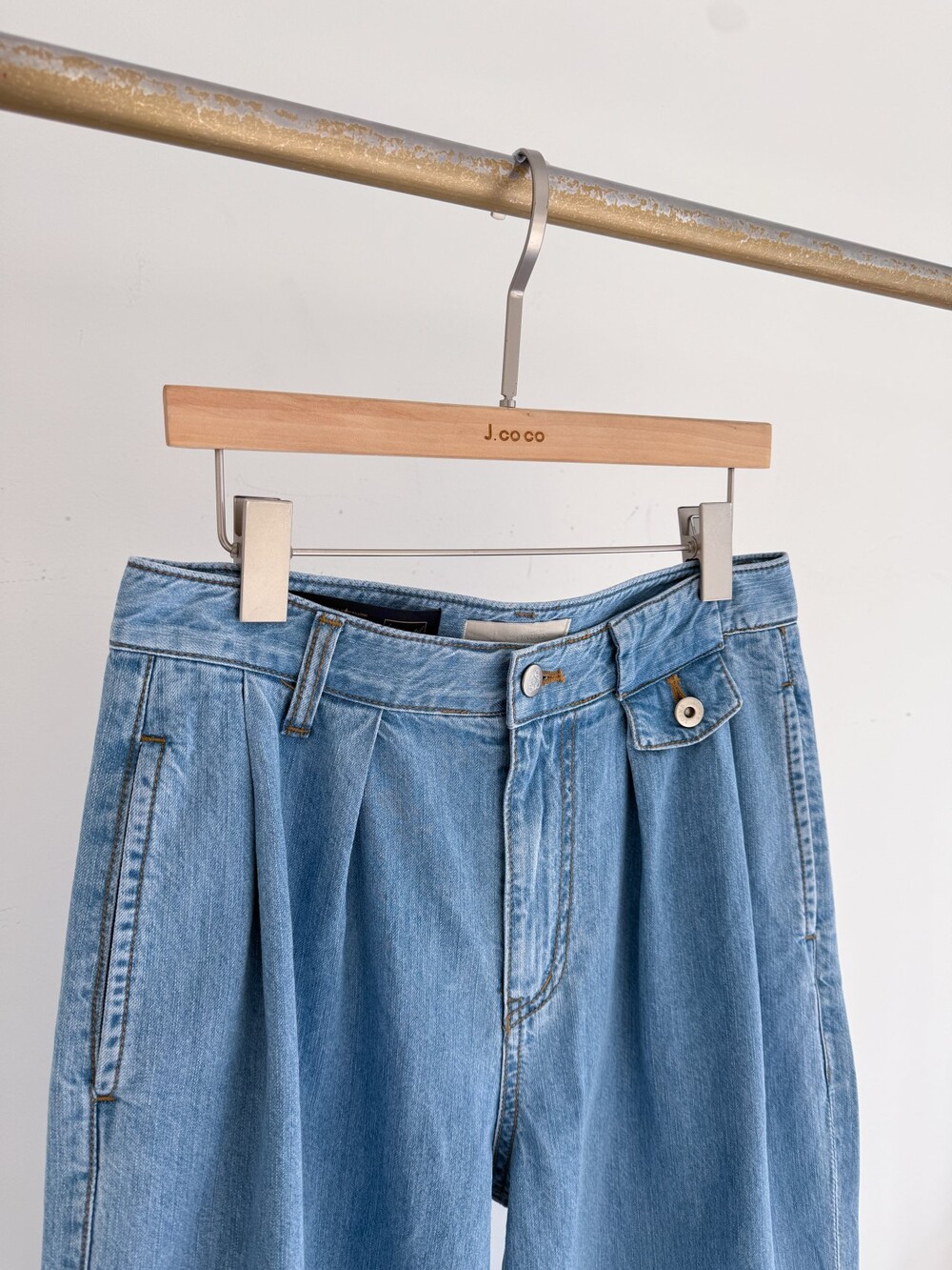 제이코코. 플랩 포켓 디테일 핀턱 와이드 데님 팬츠