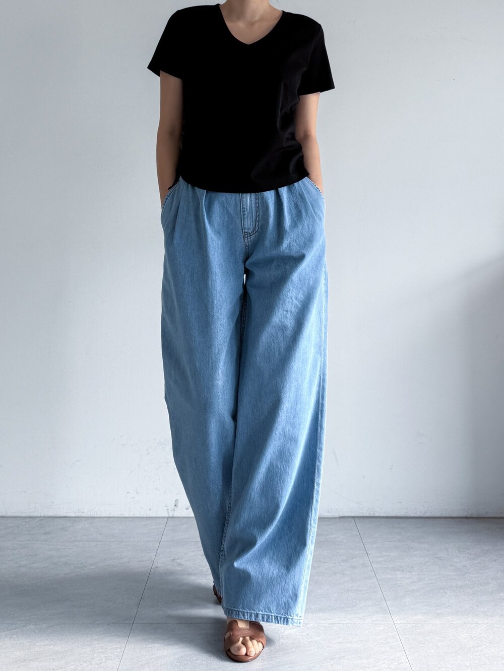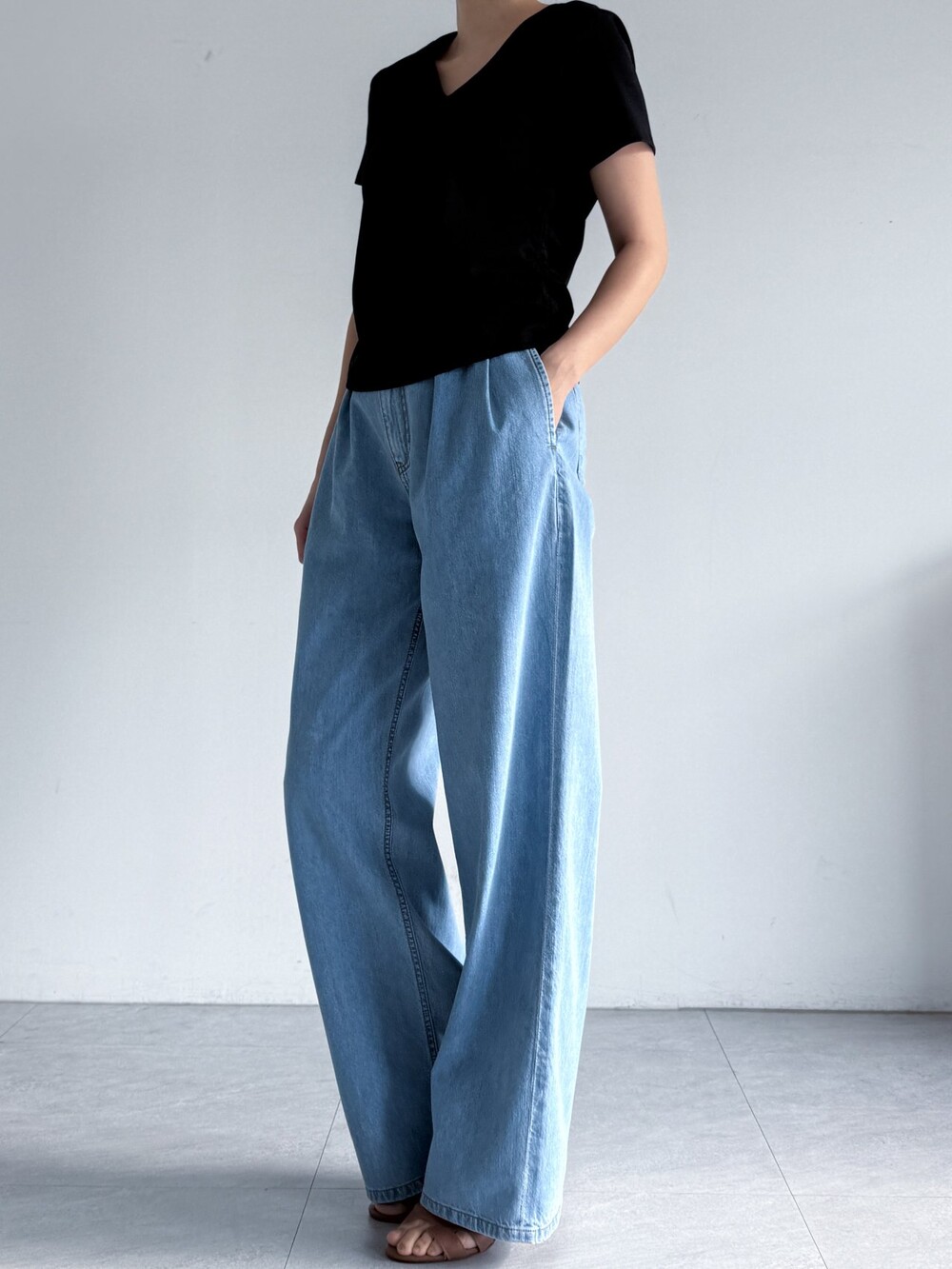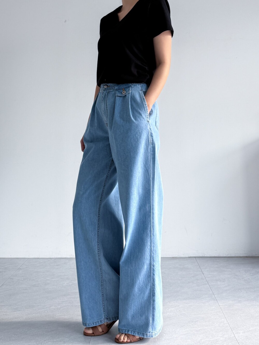 제이코코. 플랩 포켓 디테일 핀턱 와이드 데님 팬츠