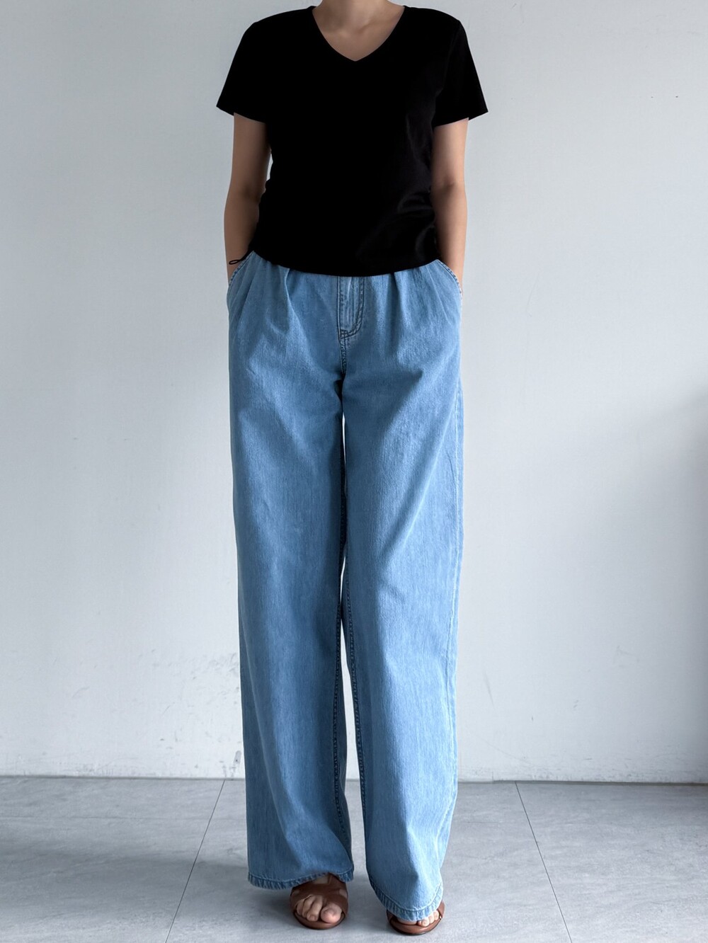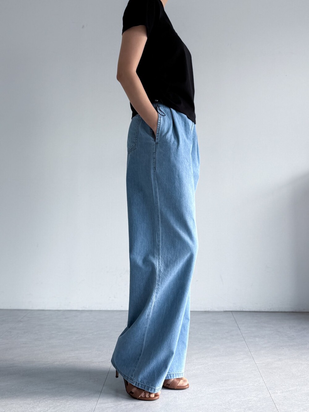 100% 면 데님 소재의 와이드 팬츠로,