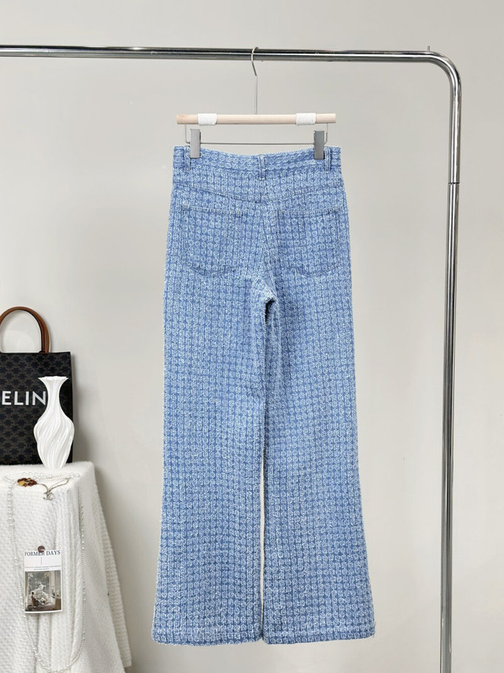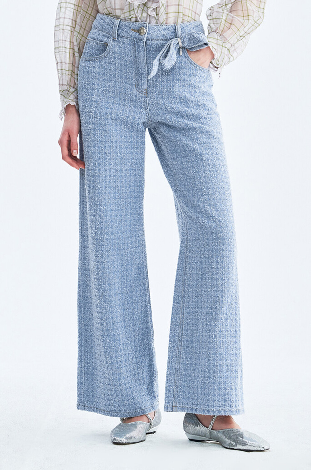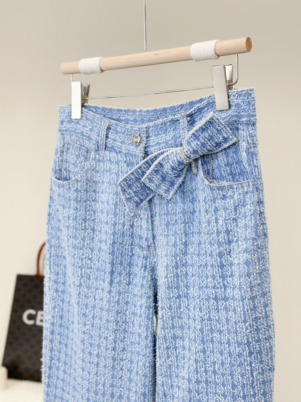 오브제 디스트로이드 와이드 데님 팬츠 & 리본 브로치