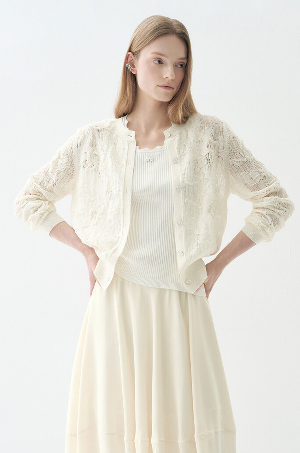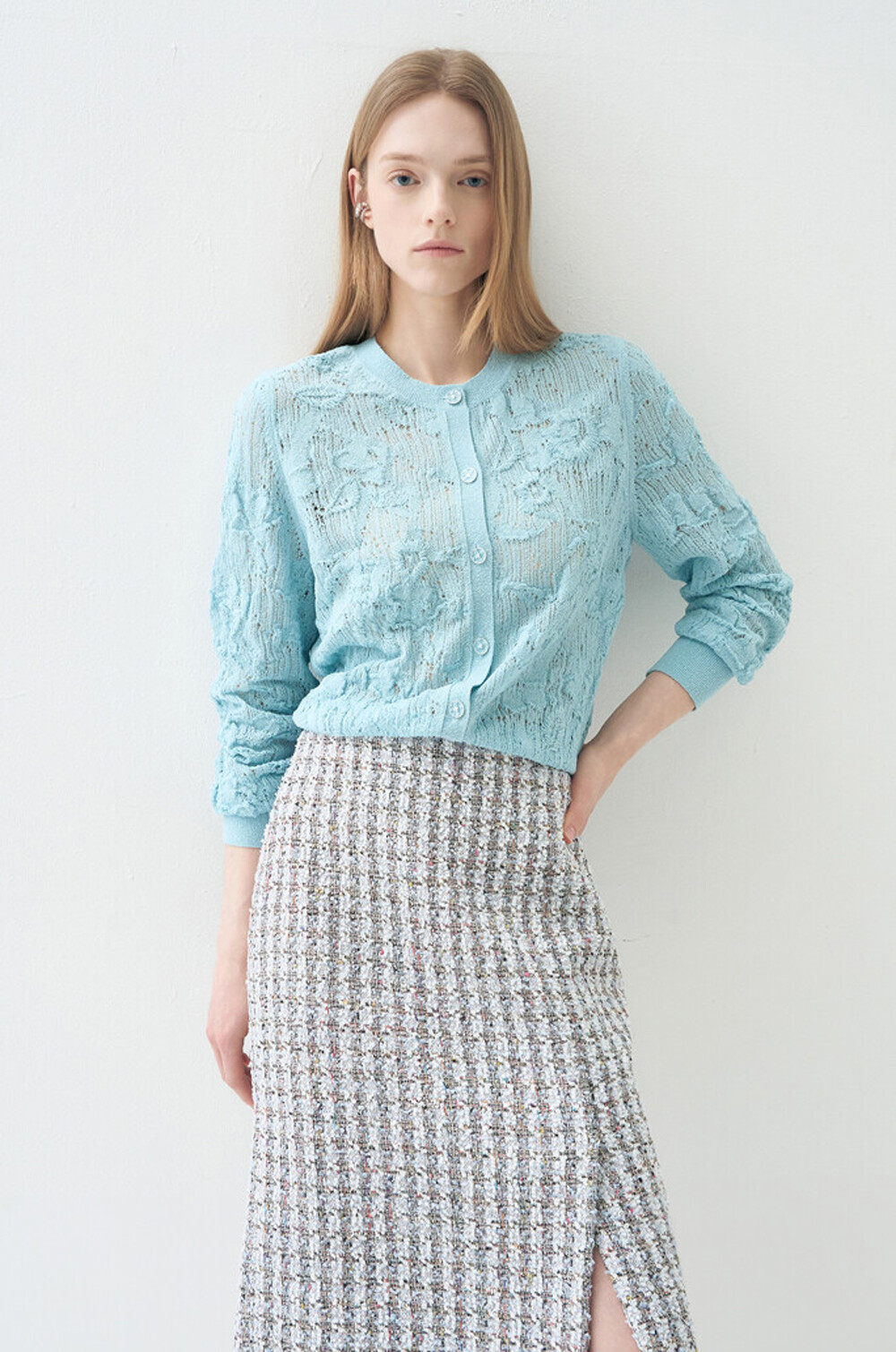 랑방컬렉션 플로럴 패턴 니트 가디건