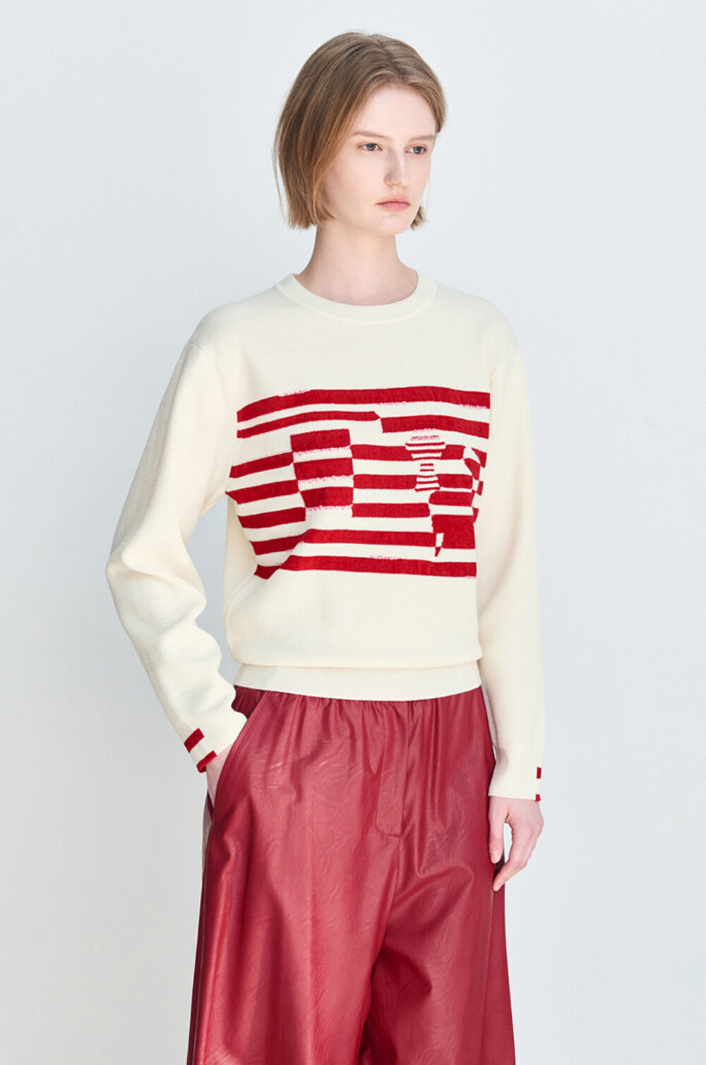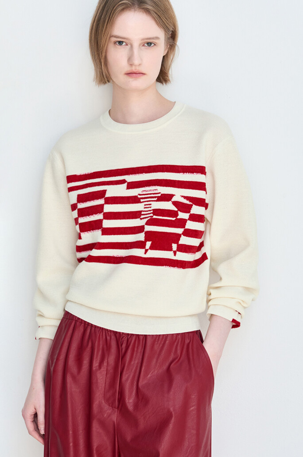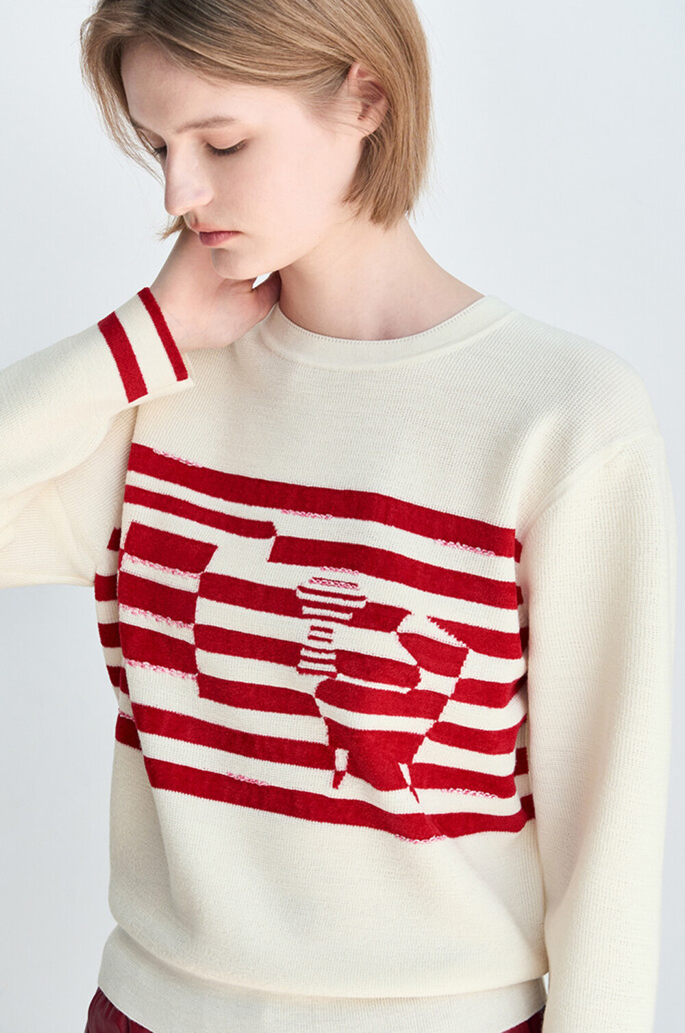 래트 울 인타르시아 니트 탑