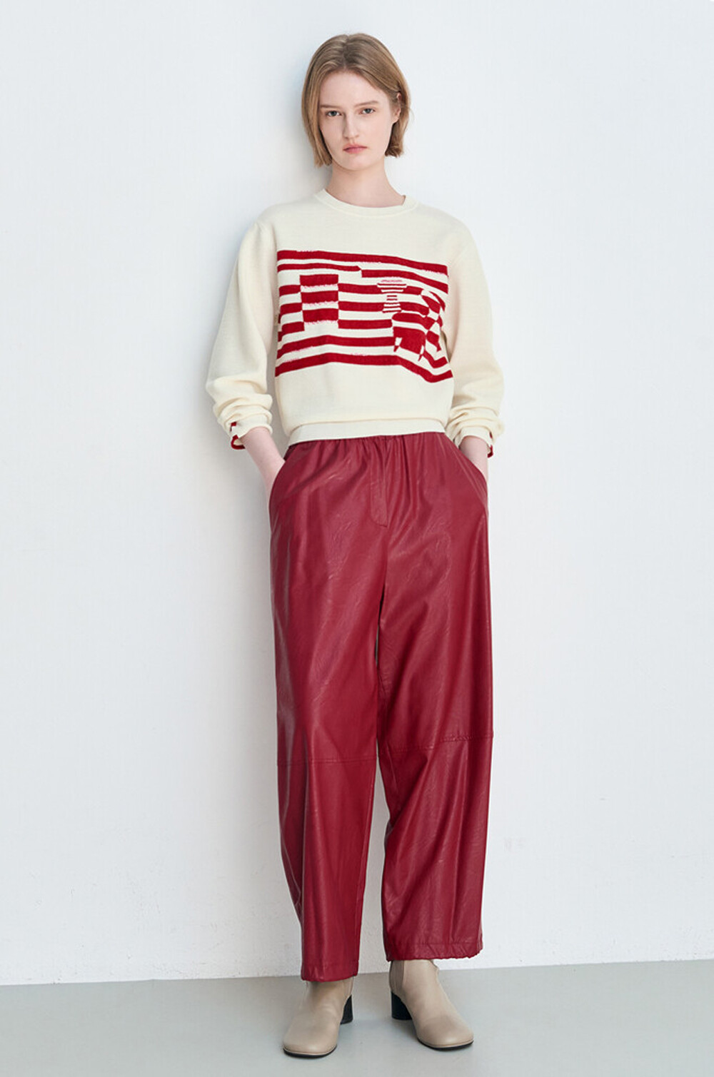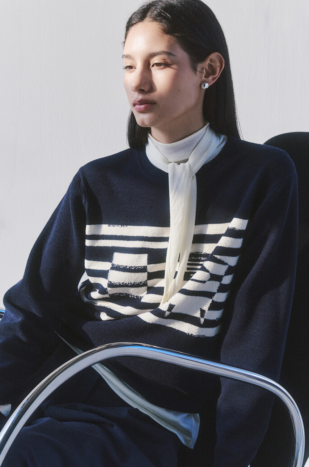 전체 룩에 경쾌한 리듬을 더합니다.