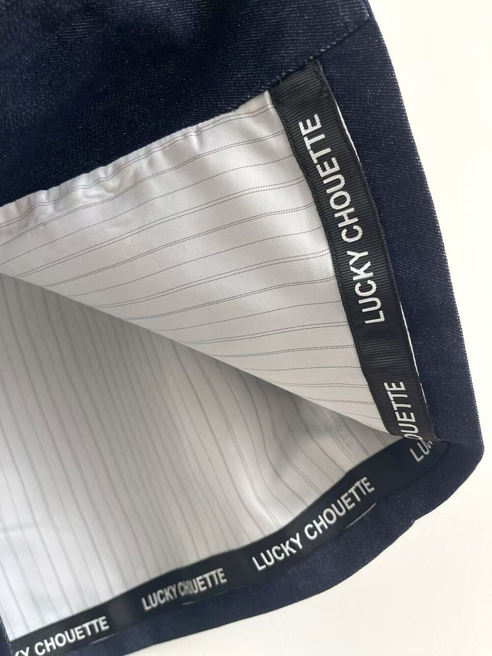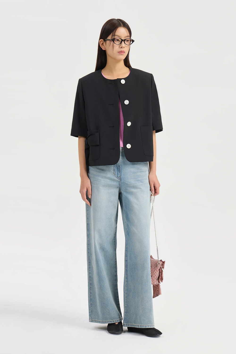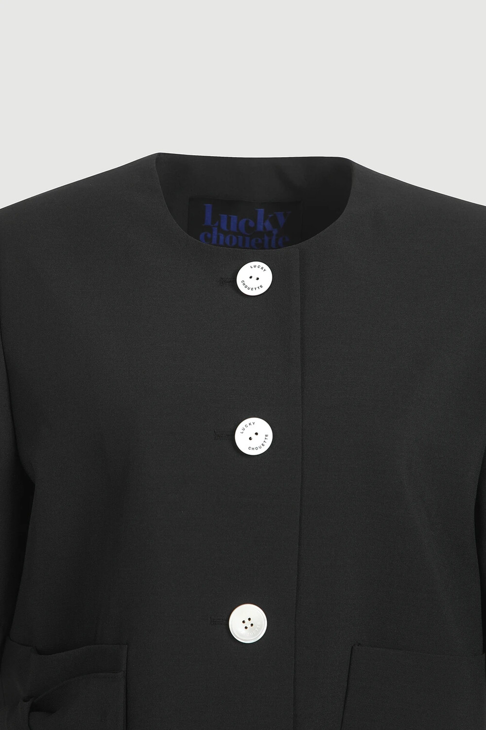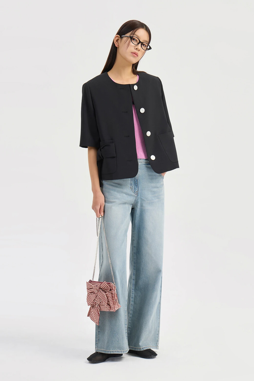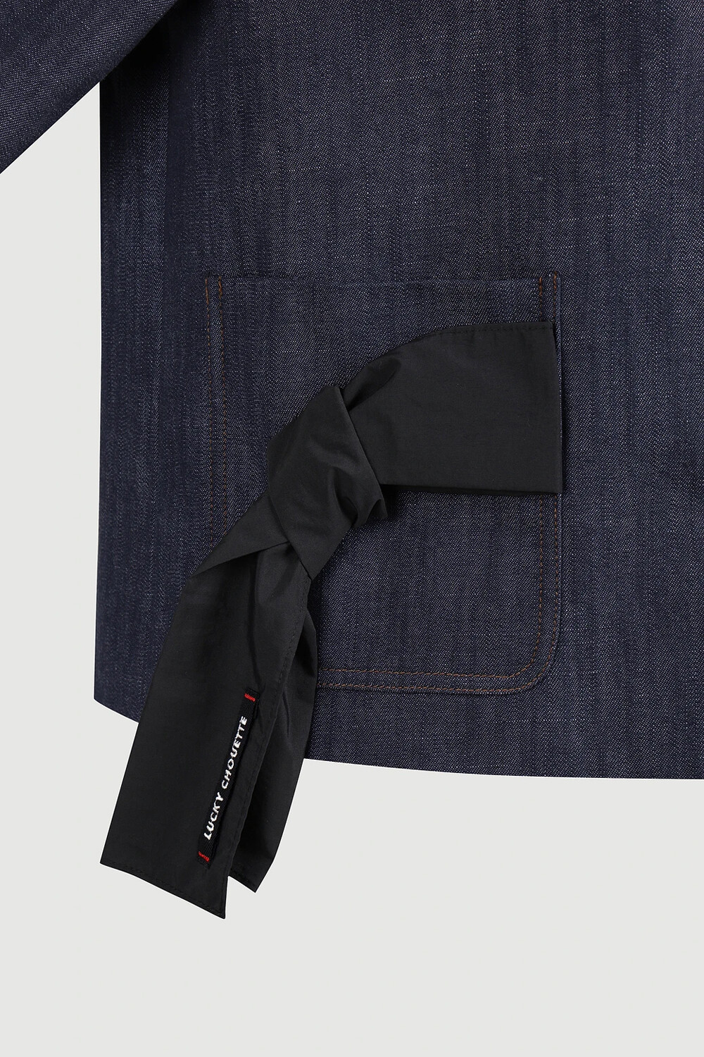 럭키슈에뜨 라운드 넥 리본 포인트 반팔 재킷