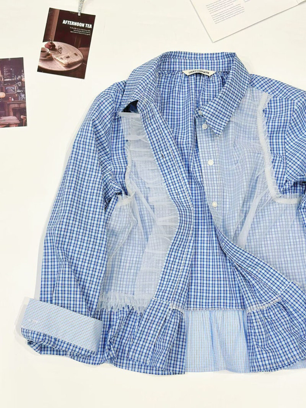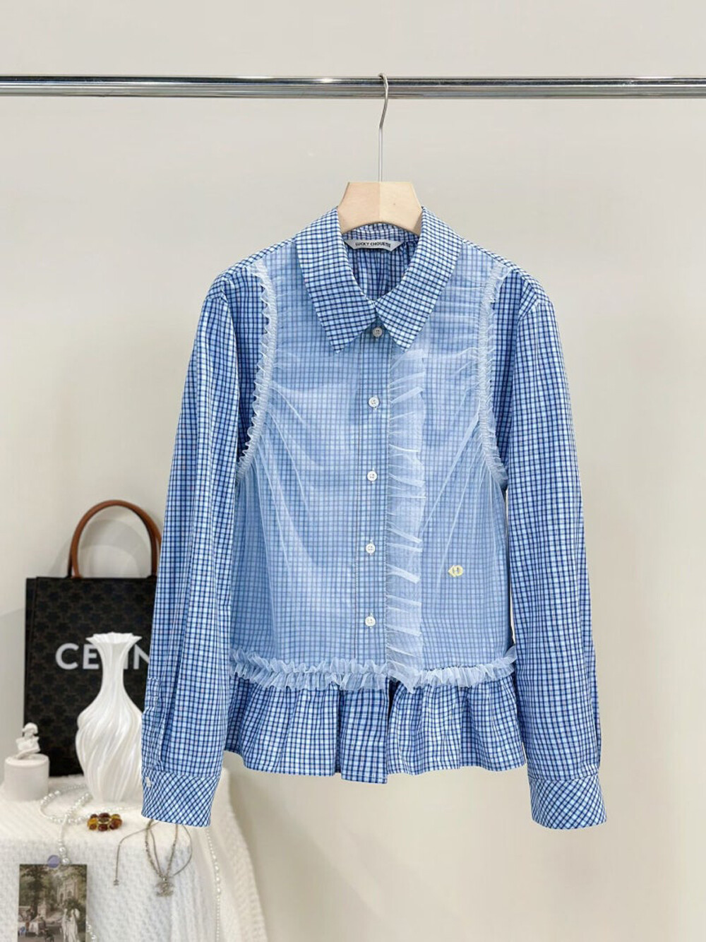 럭키슈에뜨 체크 믹스 셔츠 블라우스